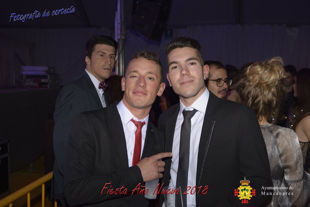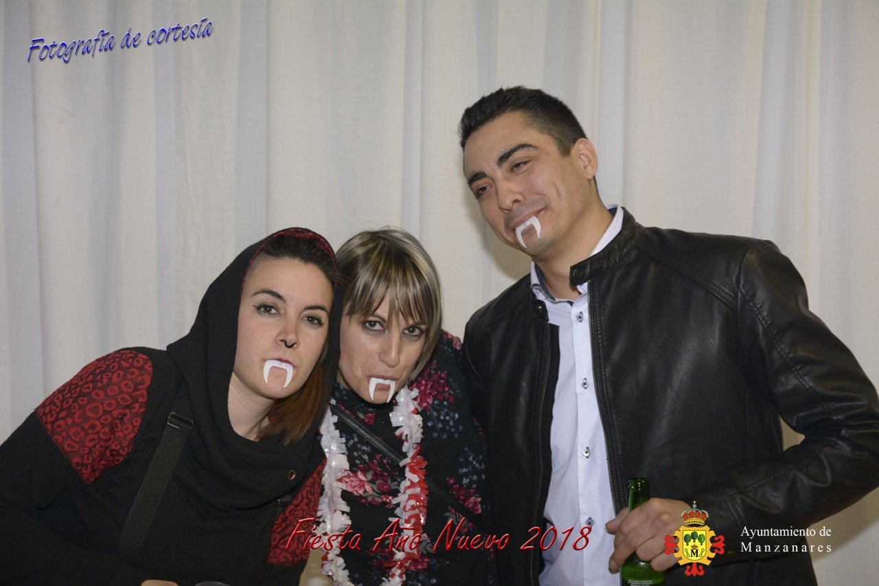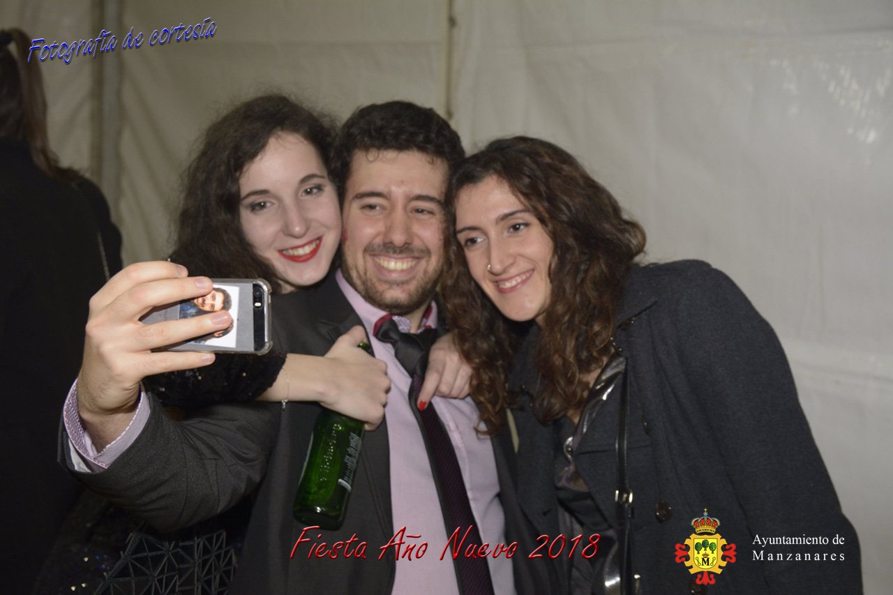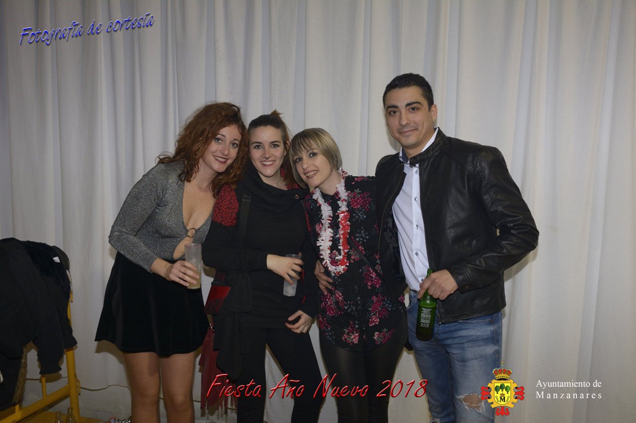 Fotografías durante la fiesta cotillón realizada al inaugurar el nuevo año 2018 bailando a ritmo de discomovil con CON DJ DART Y DJ JUANMA SOUND, en la Pérgola durante la madrugada del 1 de Enero, con motivo de las fiestas Navideñas 2017 de la localidad de Manzanares, Ciudad Real.