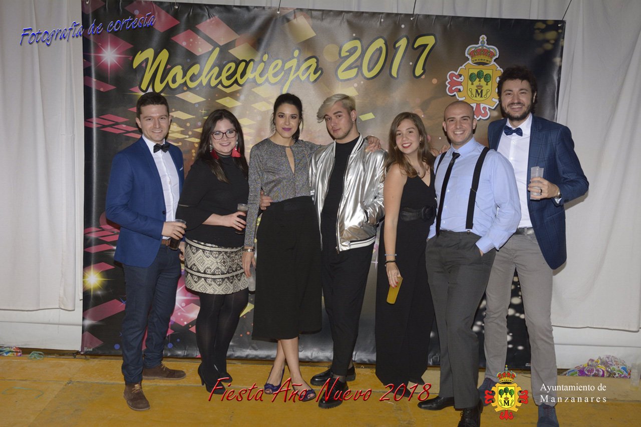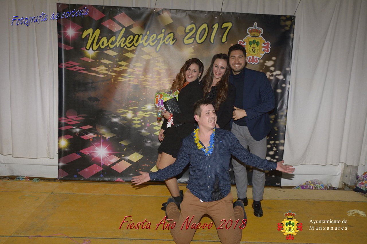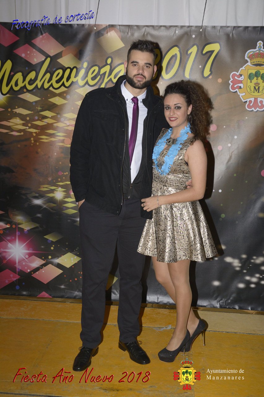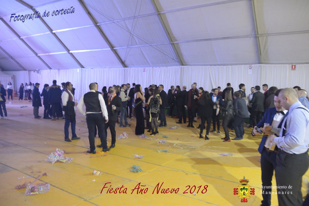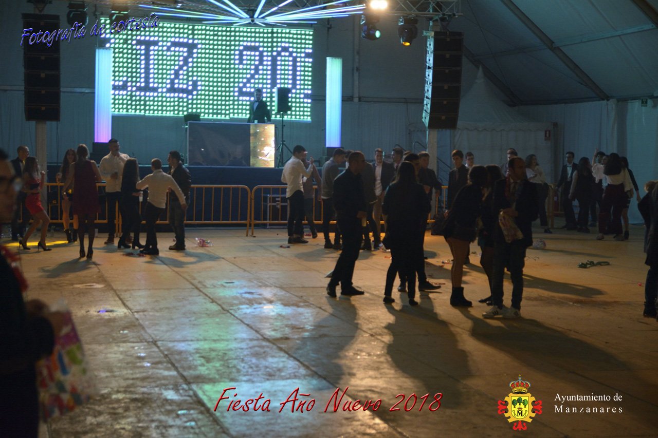 Fotografías durante la fiesta cotillón realizada al inaugurar el nuevo año 2018 bailando a ritmo de discomovil con CON DJ DART Y DJ JUANMA SOUND, en la Pérgola durante la madrugada del 1 de Enero, con motivo de las fiestas Navideñas 2017 de la localidad de Manzanares, Ciudad Real.