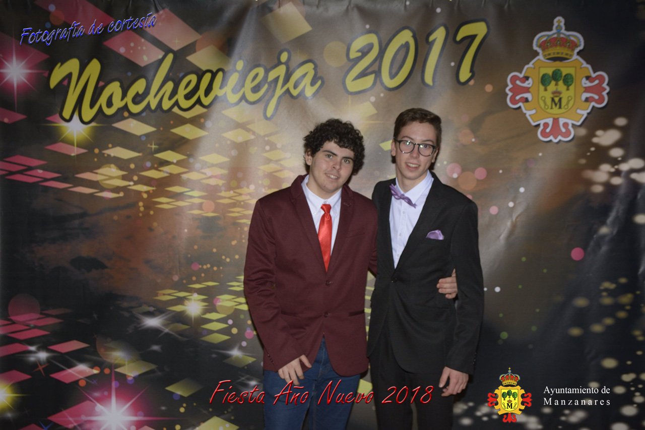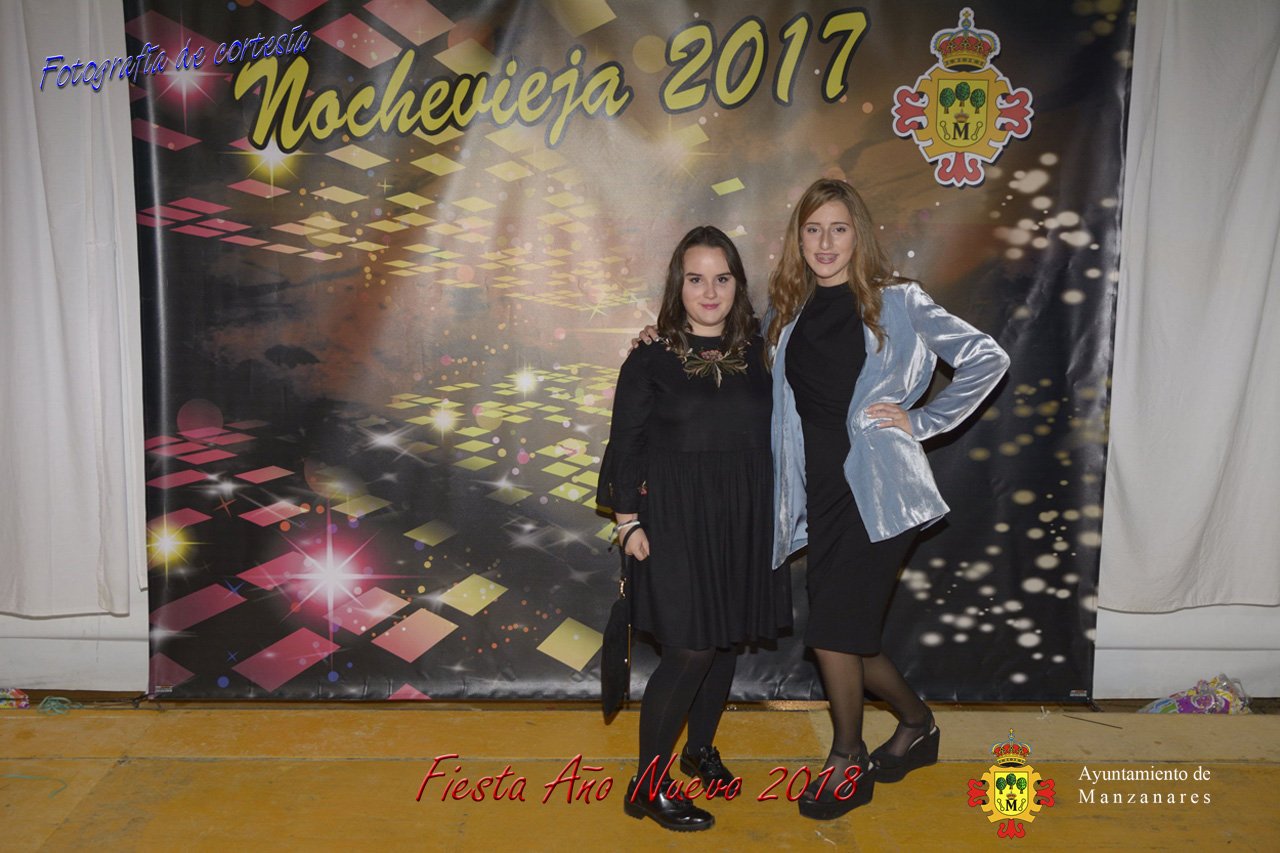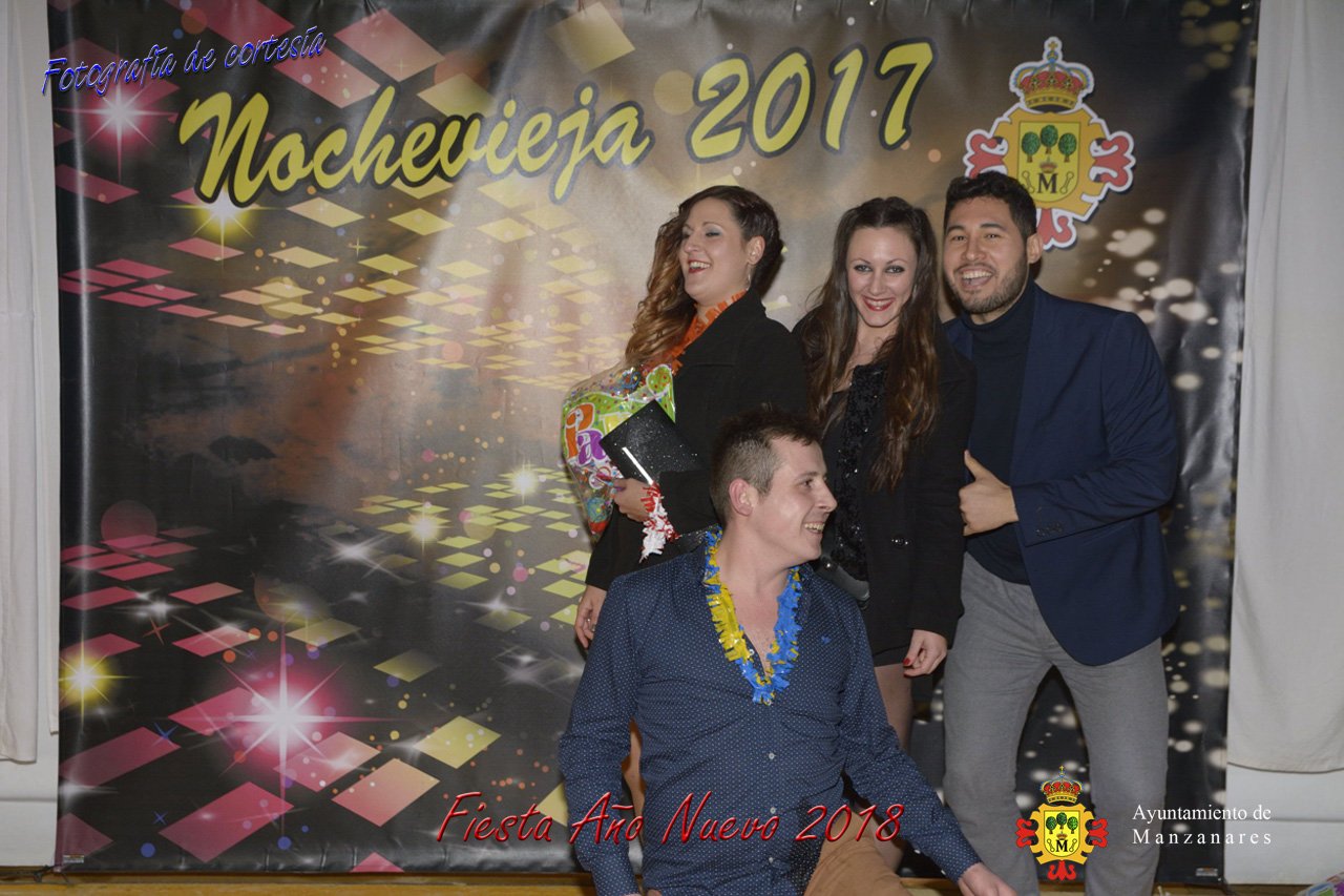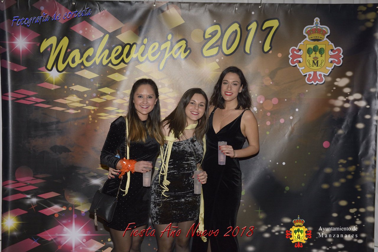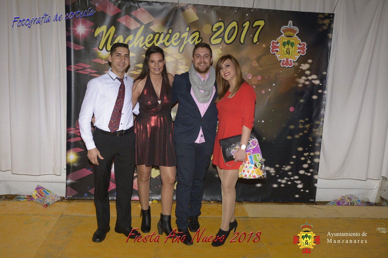 Fotografías durante la fiesta cotillón realizada al inaugurar el nuevo año 2018 bailando a ritmo de discomovil con CON DJ DART Y DJ JUANMA SOUND, en la Pérgola durante la madrugada del 1 de Enero, con motivo de las fiestas Navideñas 2017 de la localidad de Manzanares, Ciudad Real.