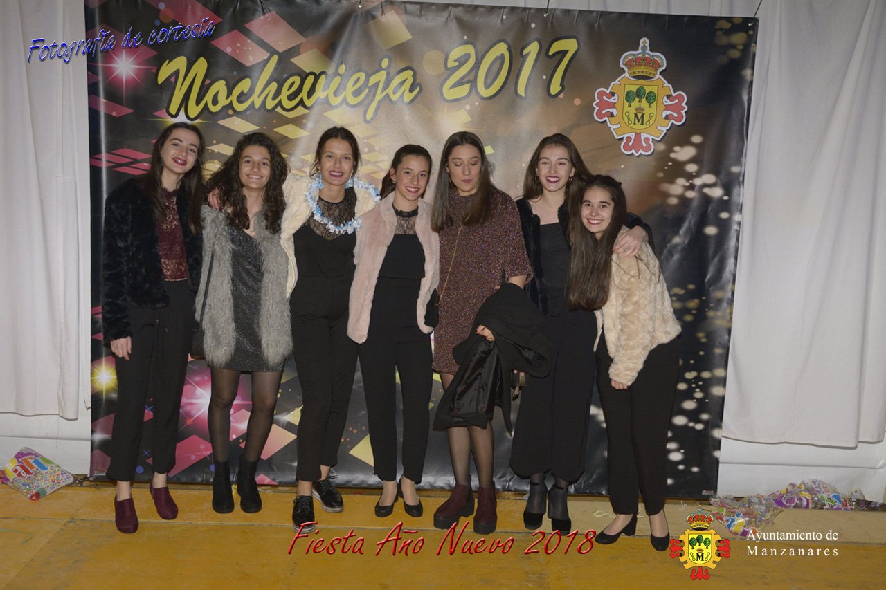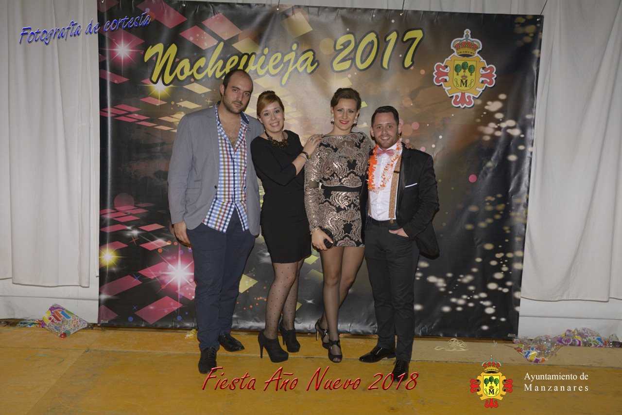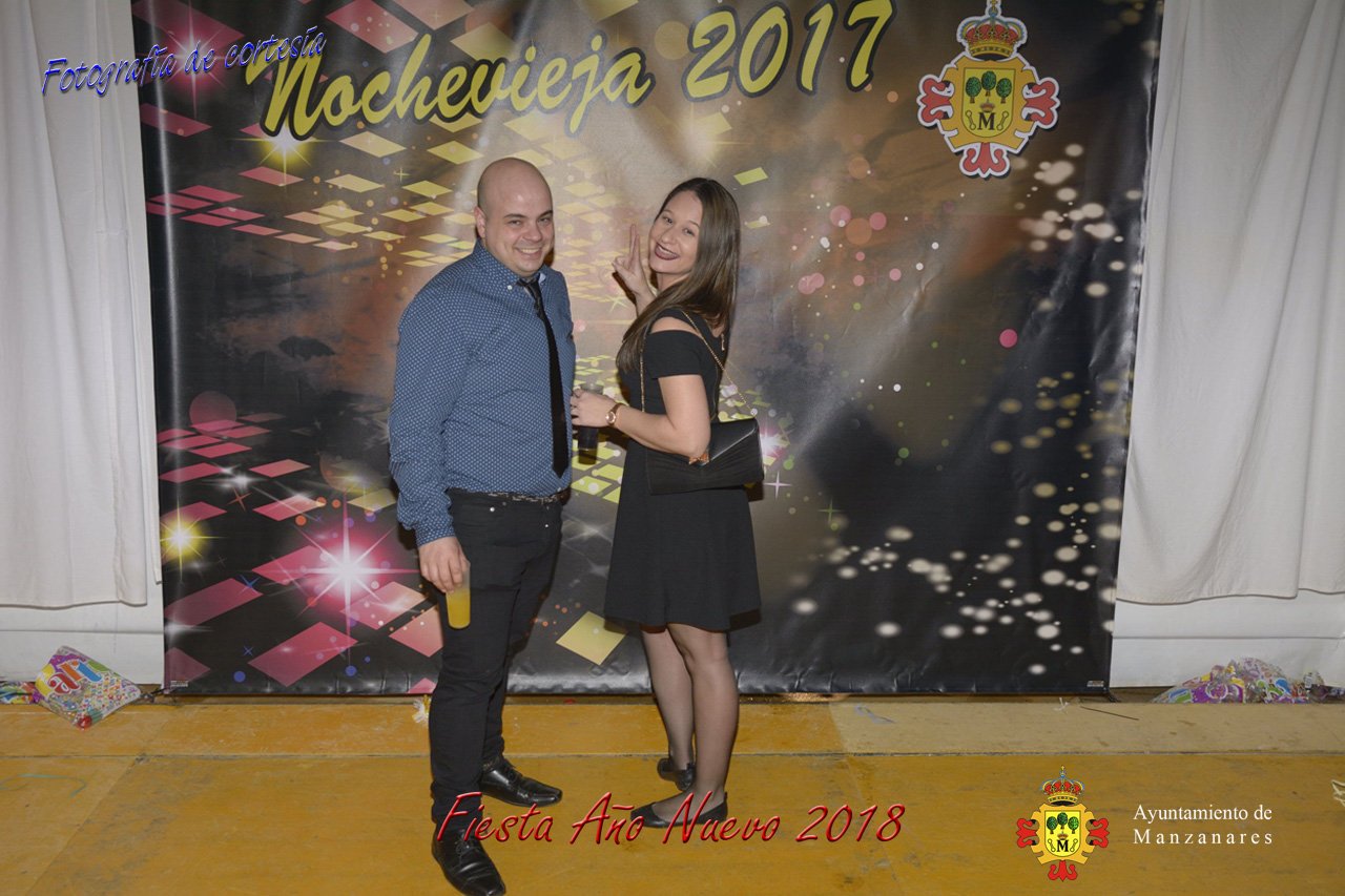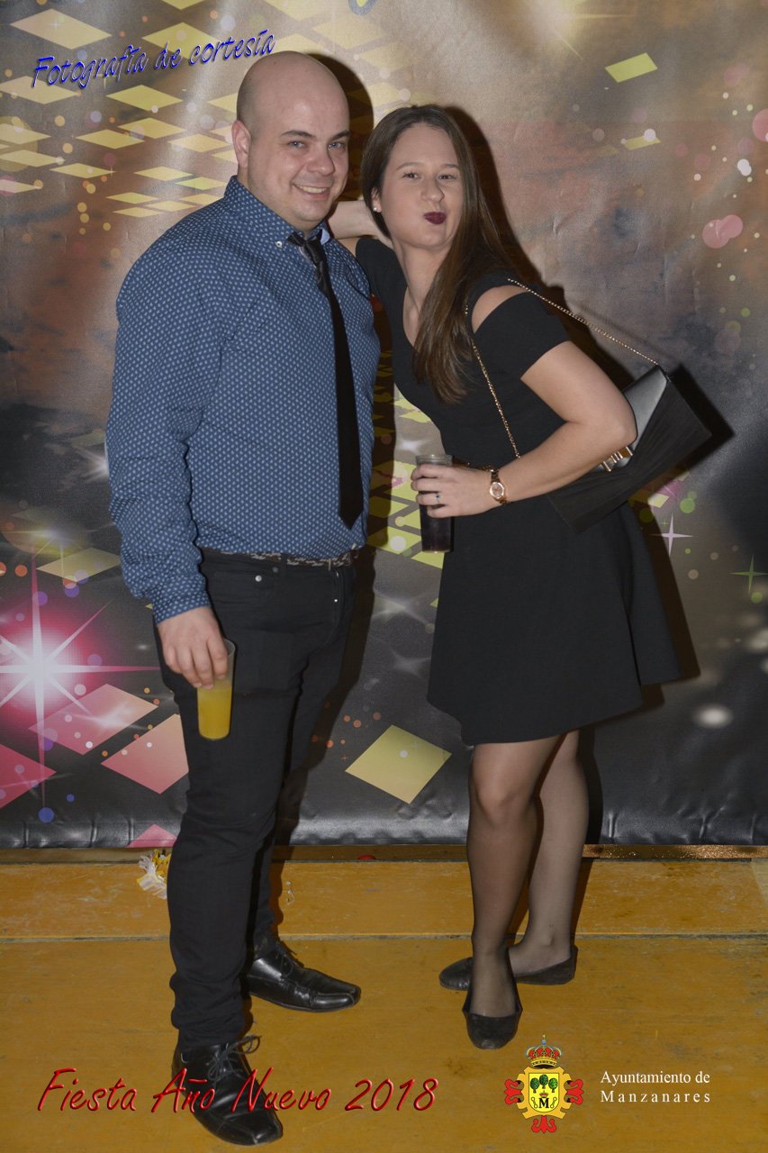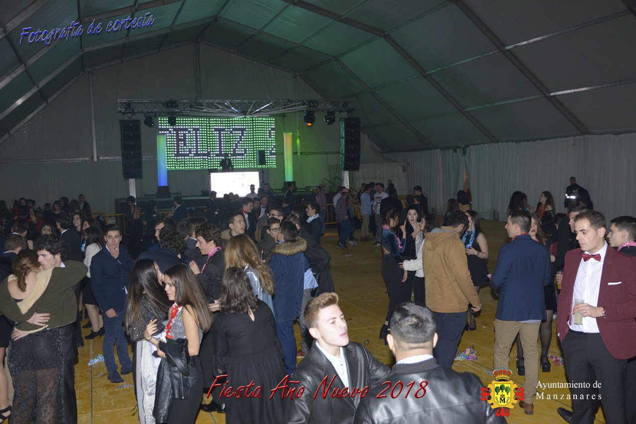 Fotografías durante la fiesta cotillón realizada al inaugurar el nuevo año 2018 bailando a ritmo de discomovil con CON DJ DART Y DJ JUANMA SOUND, en la Pérgola durante la madrugada del 1 de Enero, con motivo de las fiestas Navideñas 2017 de la localidad de Manzanares, Ciudad Real.