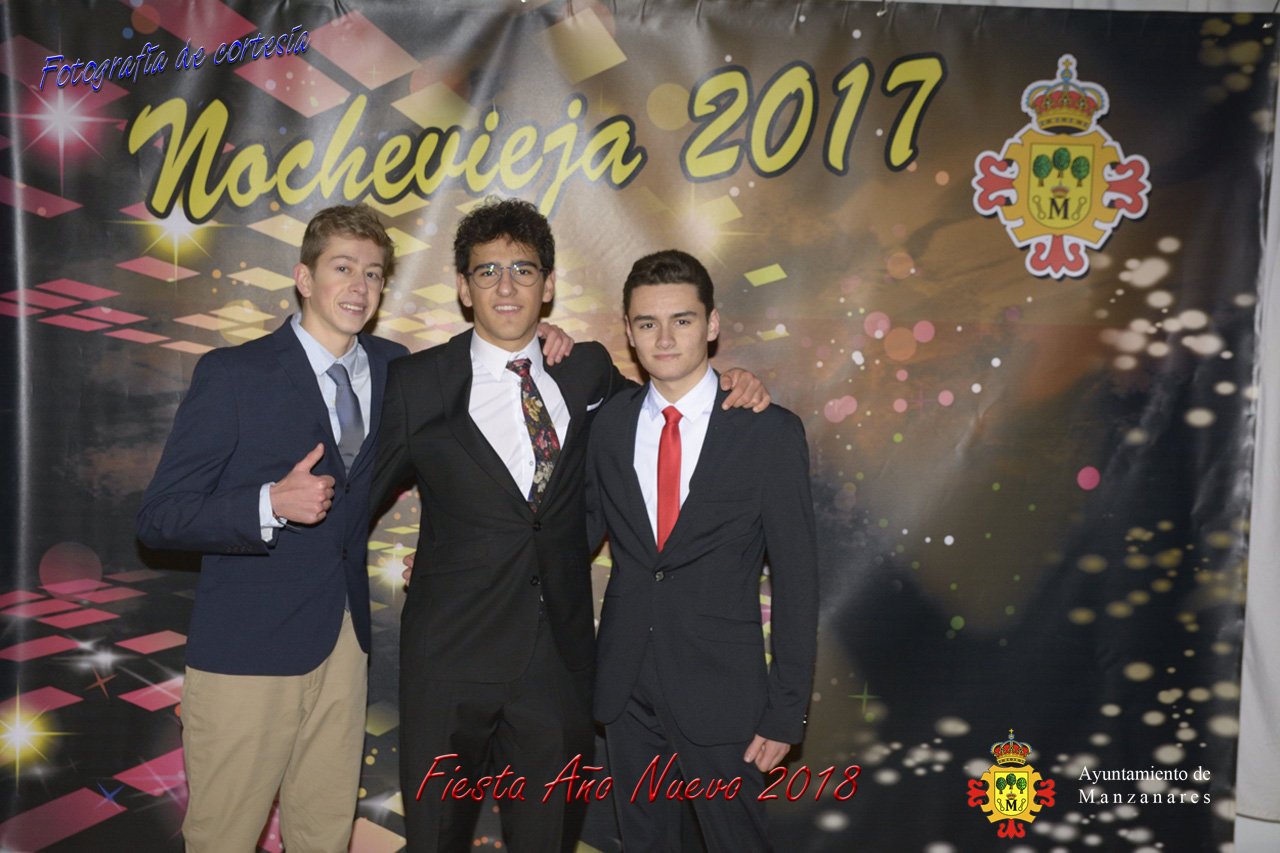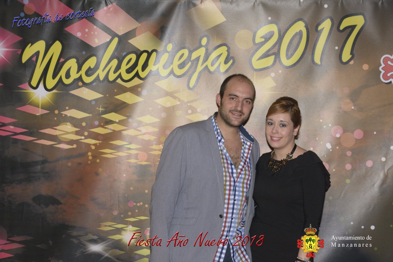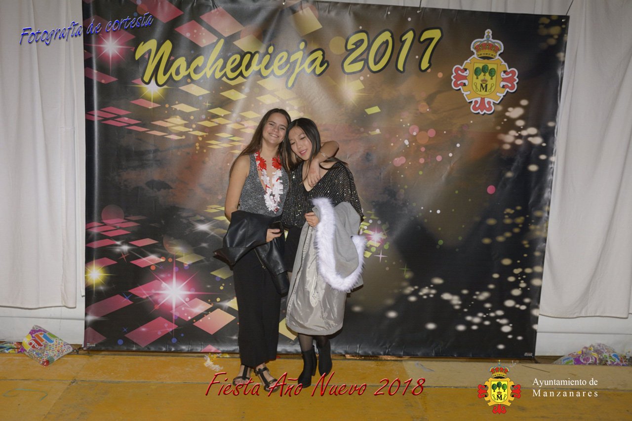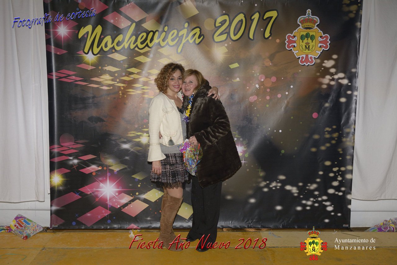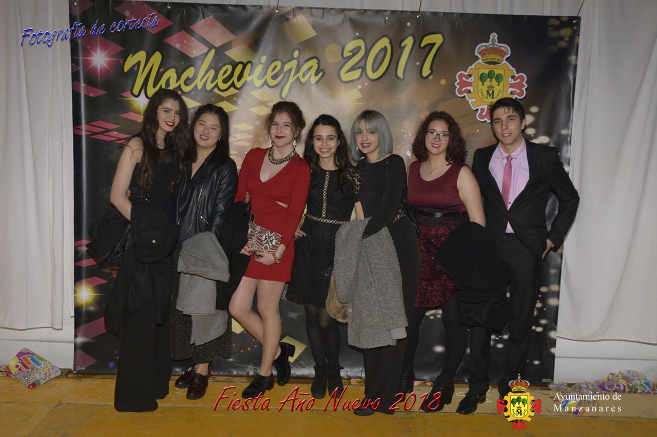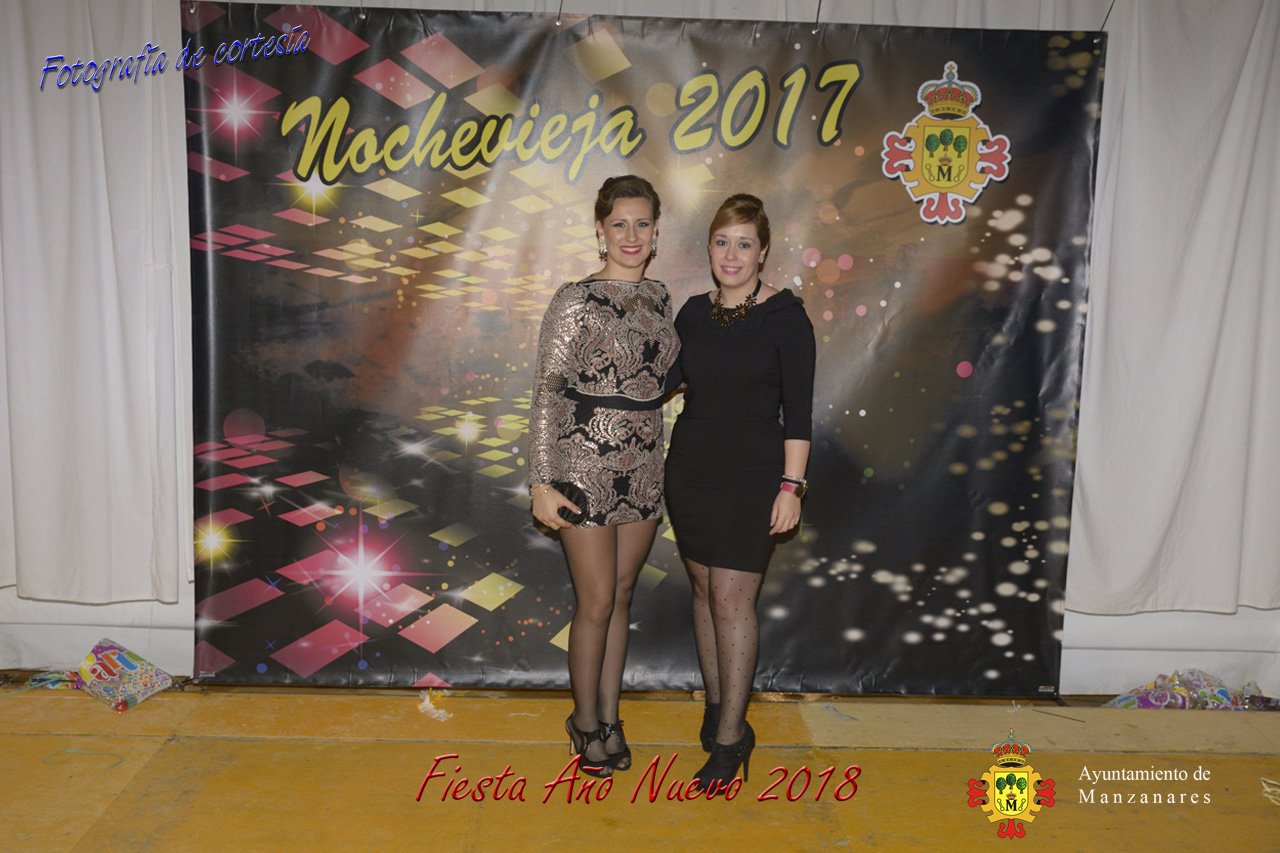 Fotografías durante la fiesta cotillón realizada al inaugurar el nuevo año 2018 bailando a ritmo de discomovil con CON DJ DART Y DJ JUANMA SOUND, en la Pérgola durante la madrugada del 1 de Enero, con motivo de las fiestas Navideñas 2017 de la localidad de Manzanares, Ciudad Real.