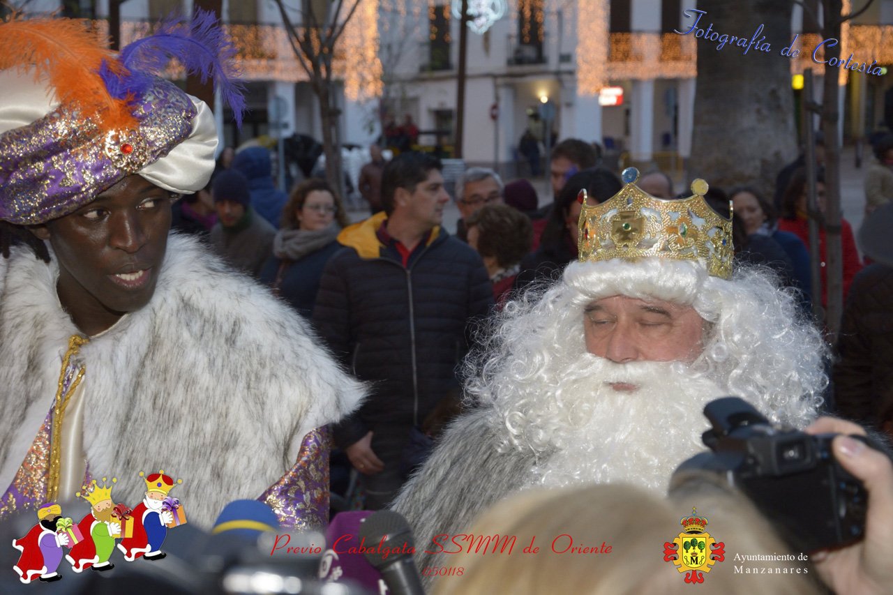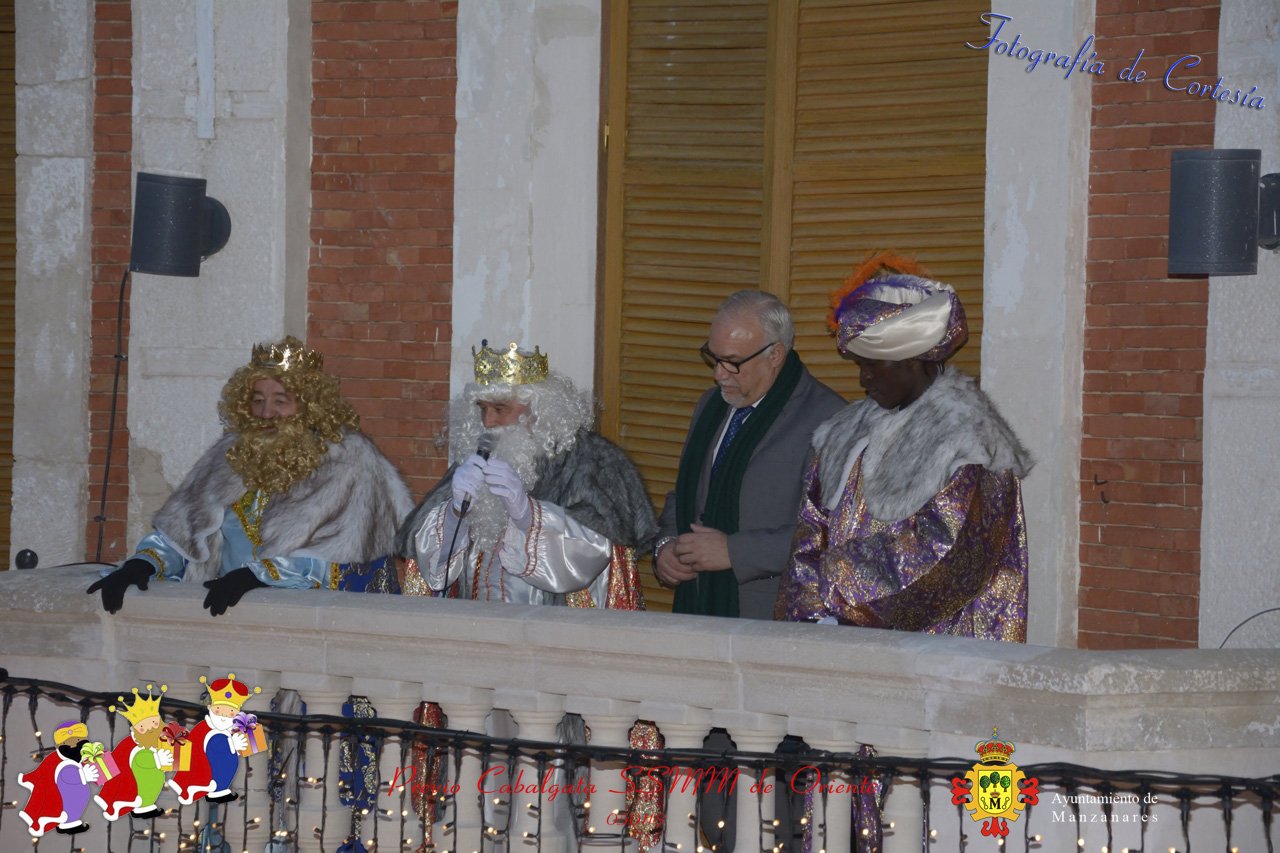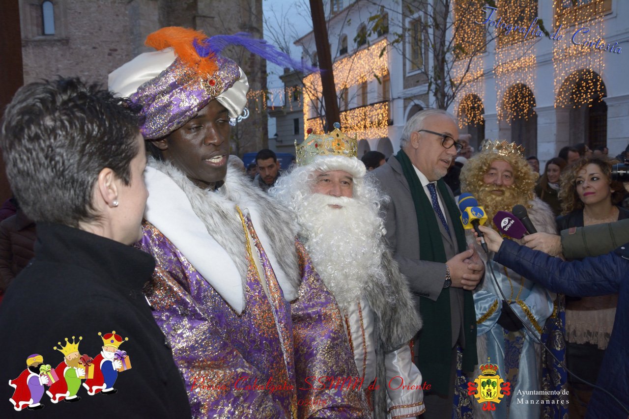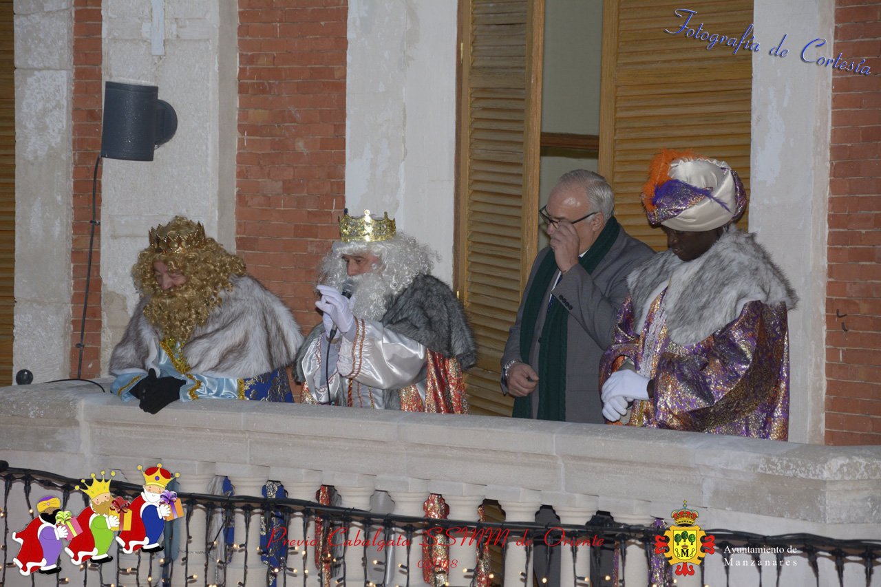 Fotografías realizadas durante la recepción de SSMM de Oriente Melchor , Gaspar y Baltasar a las puertas del Ayuntamiento , saludando a todas los niños y mayores que habia en ese momento, repartiendo caramelos, chuches variadas e incluso balones de goma. El evento tenía lugar el dia 050118 previo a la Cabalgata de Reyes.. Estos actos han sido realizados con motivo de las Fiestas Navideñas 2017 en la localidad de Manzanares, Ciudad Real.