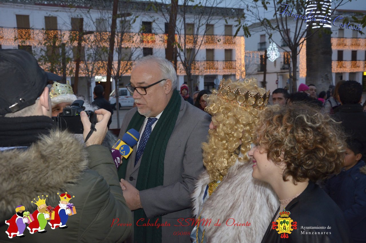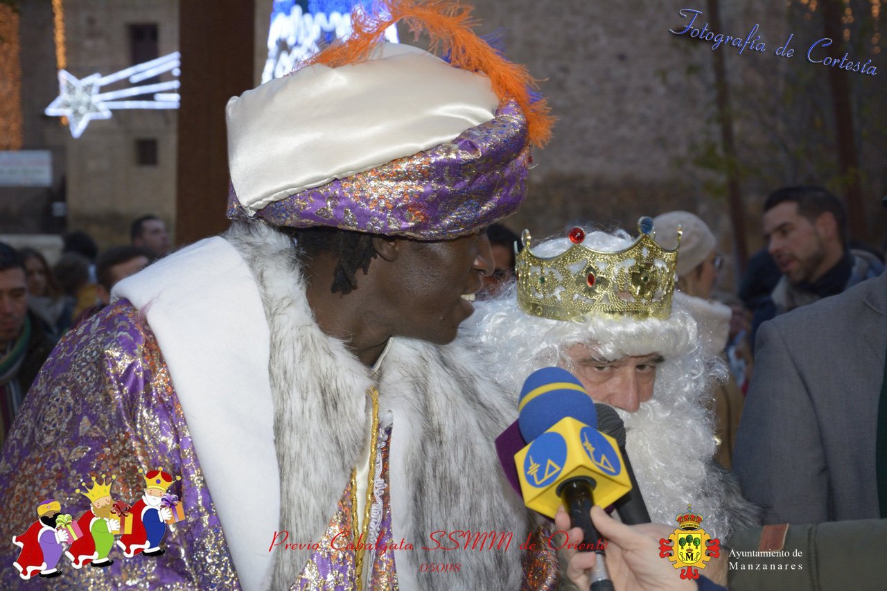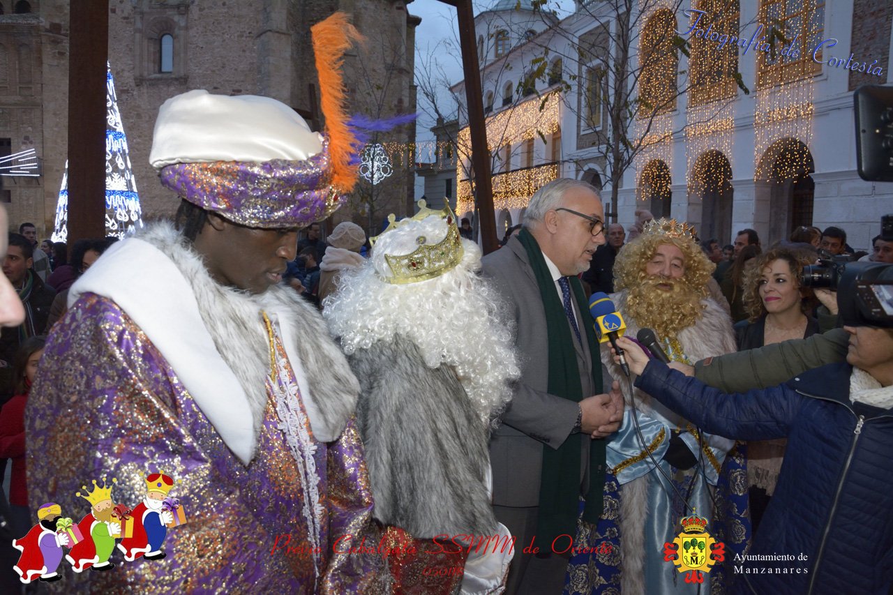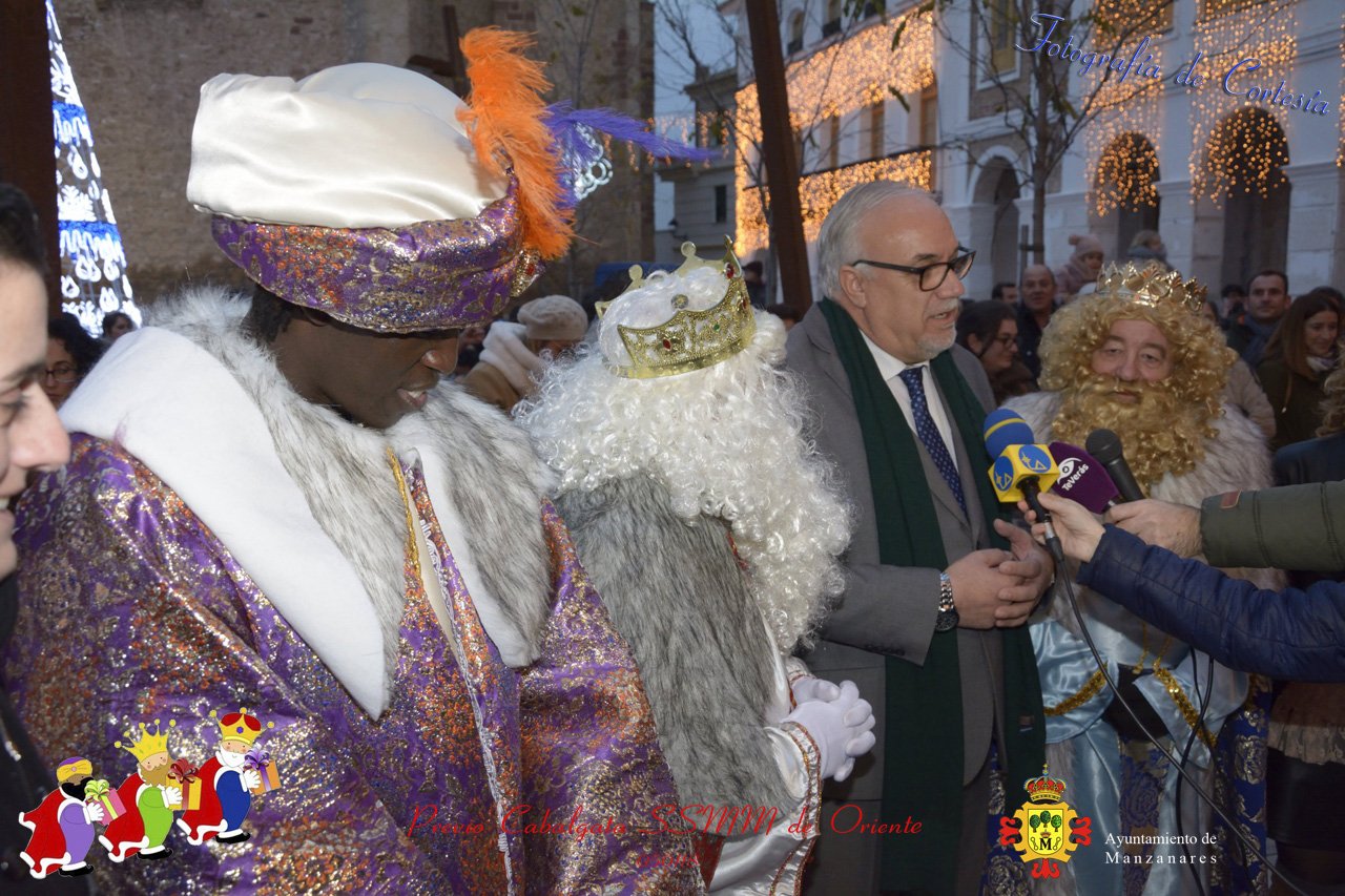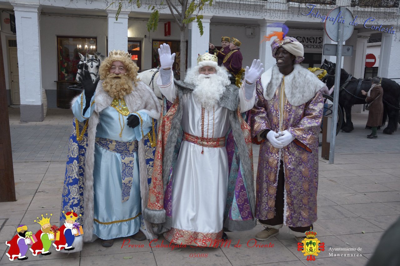 Fotografías realizadas durante la recepción de SSMM de Oriente Melchor , Gaspar y Baltasar a las puertas del Ayuntamiento , saludando a todas los niños y mayores que habia en ese momento, repartiendo caramelos, chuches variadas e incluso balones de goma. El evento tenía lugar el dia 050118 previo a la Cabalgata de Reyes.. Estos actos han sido realizados con motivo de las Fiestas Navideñas 2017 en la localidad de Manzanares, Ciudad Real.