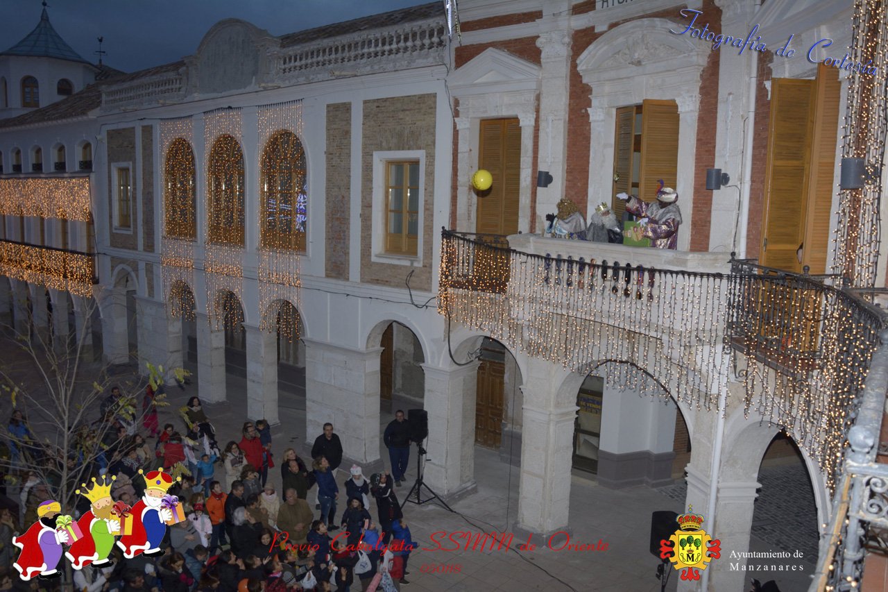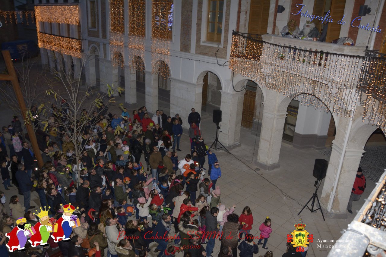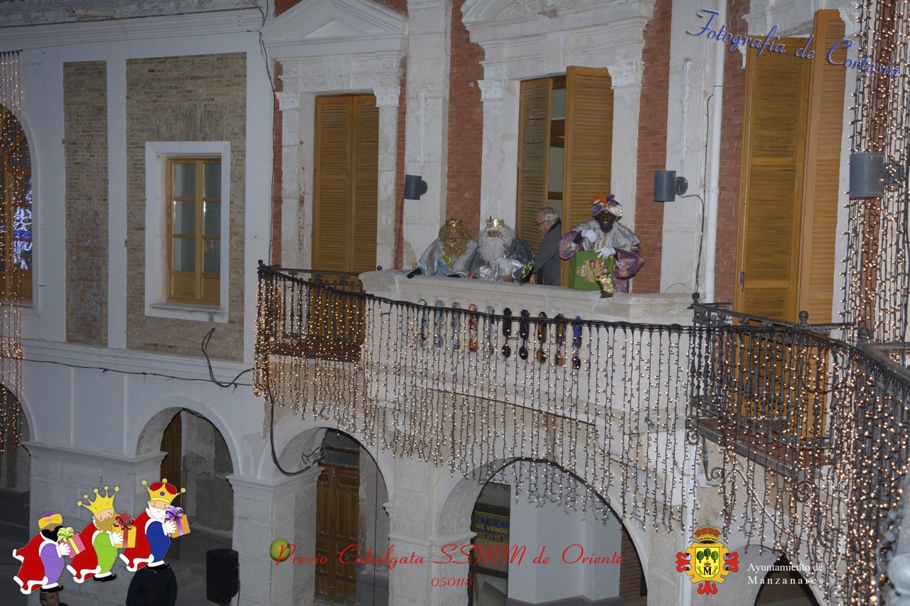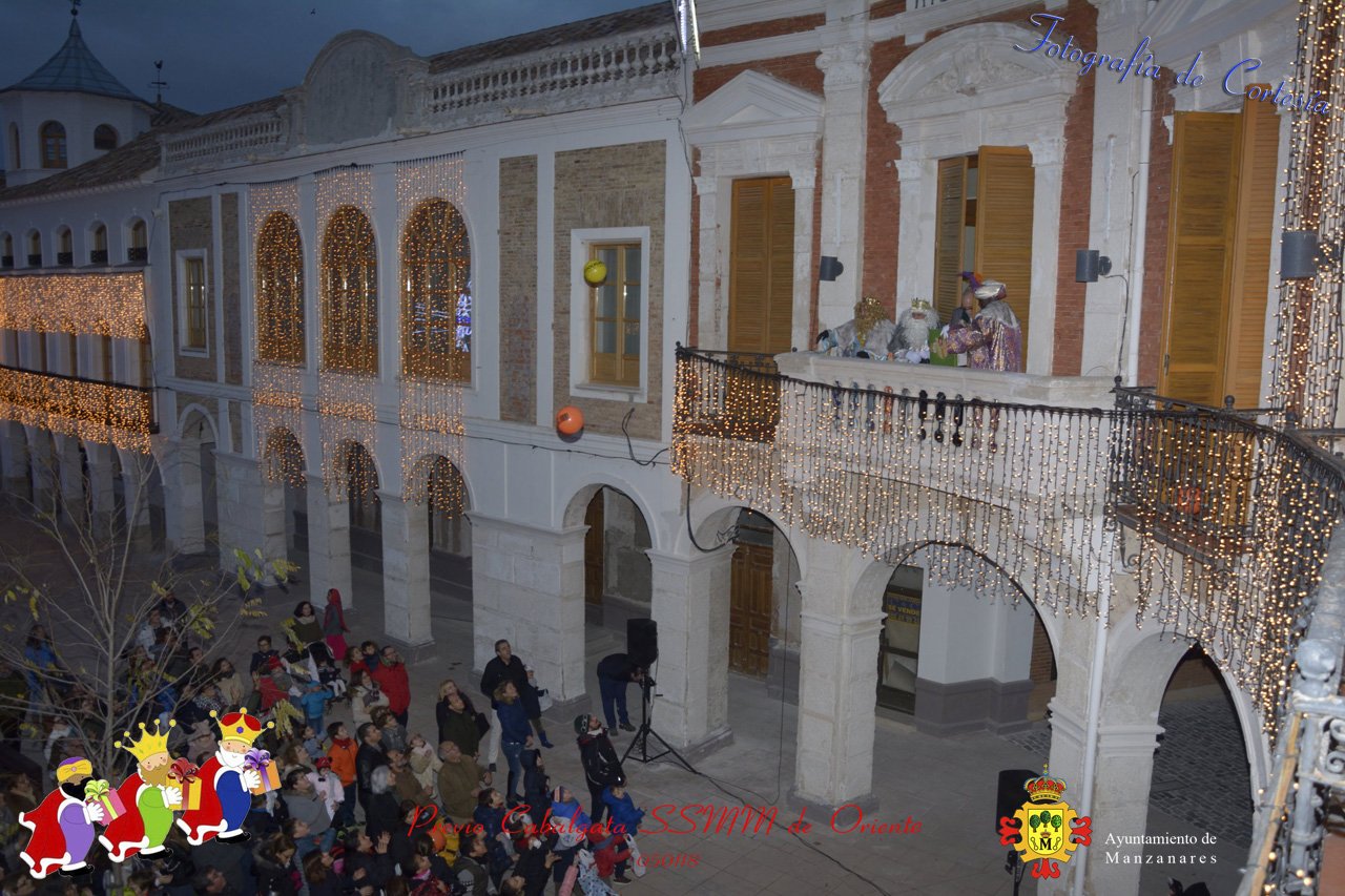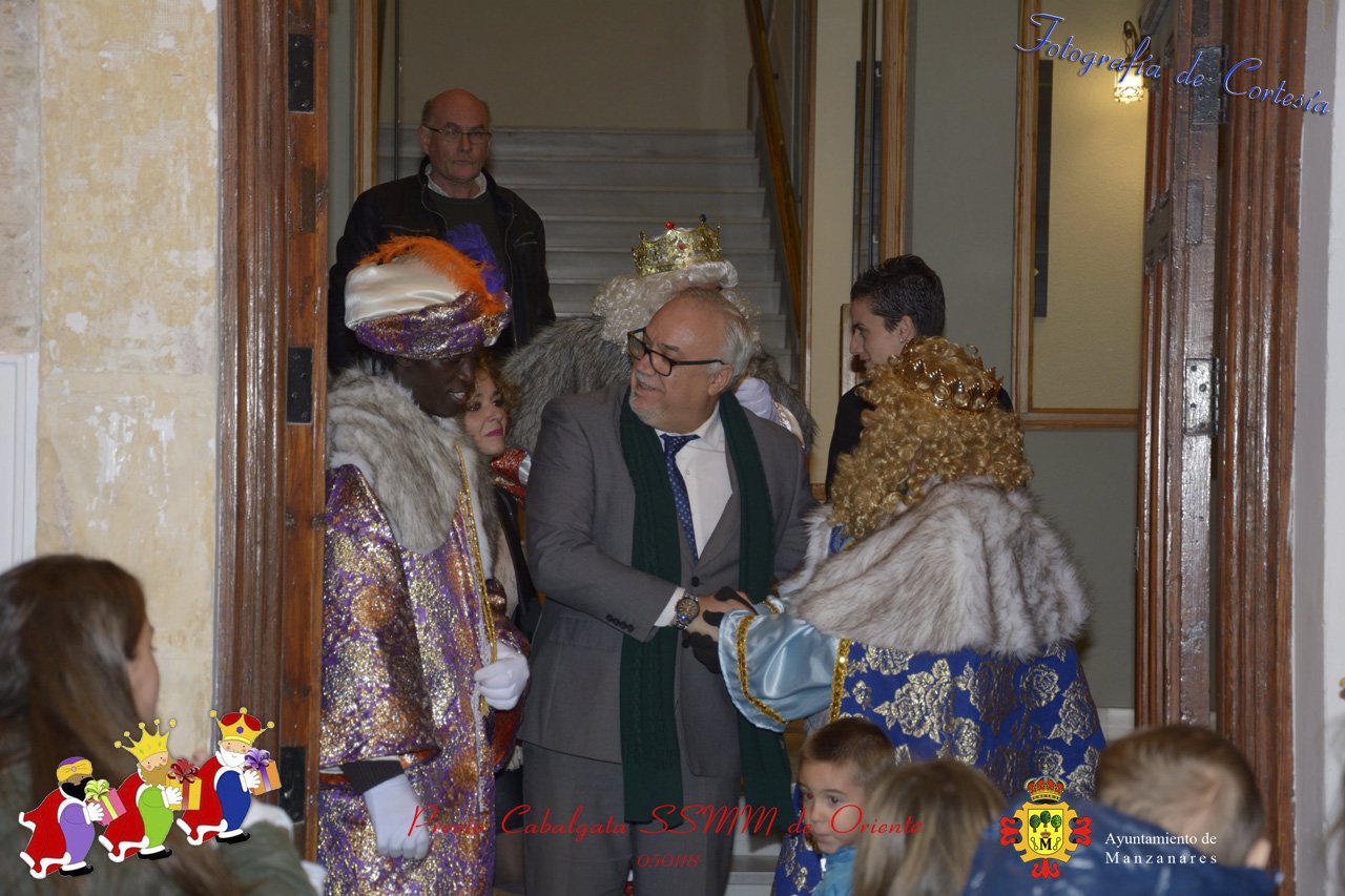 Fotografías realizadas durante la recepción de SSMM de Oriente Melchor , Gaspar y Baltasar a las puertas del Ayuntamiento , saludando a todas los niños y mayores que habia en ese momento, repartiendo caramelos, chuches variadas e incluso balones de goma. El evento tenía lugar el dia 050118 previo a la Cabalgata de Reyes.. Estos actos han sido realizados con motivo de las Fiestas Navideñas 2017 en la localidad de Manzanares, Ciudad Real.