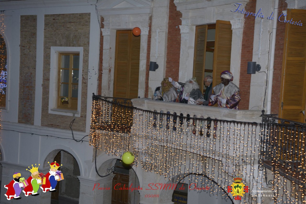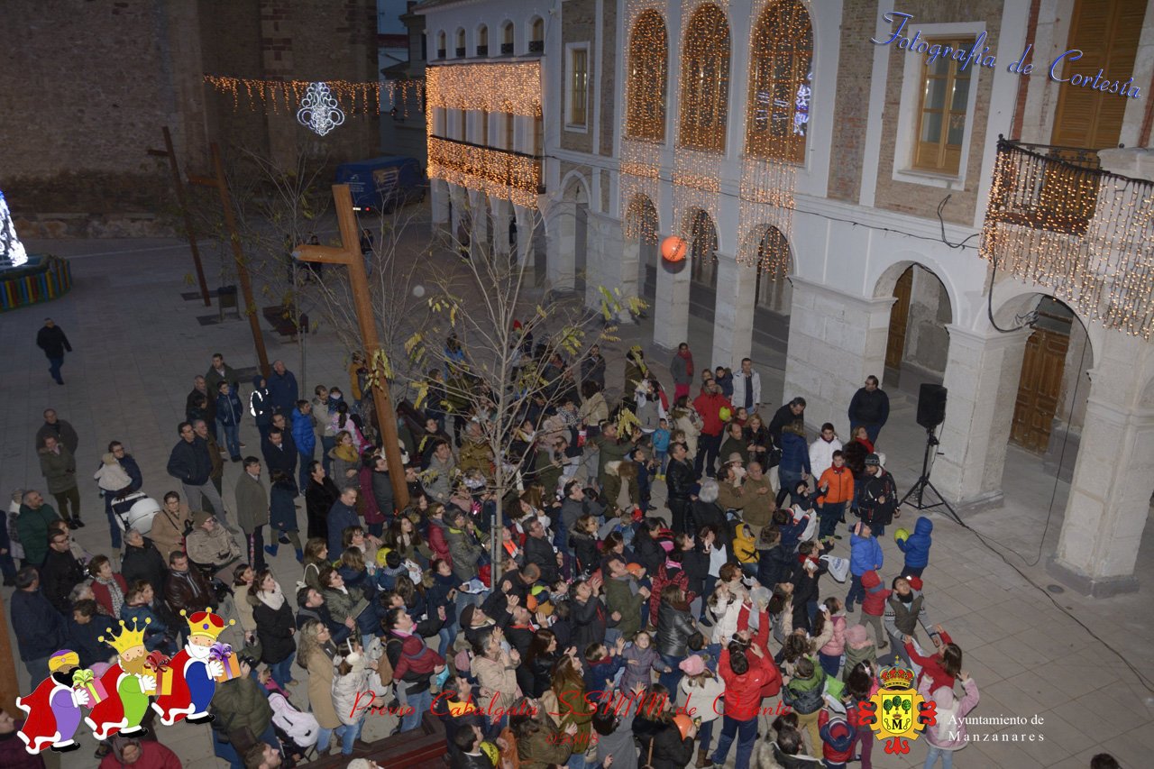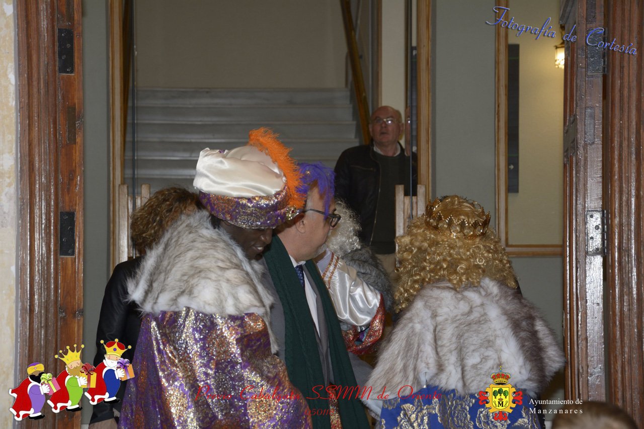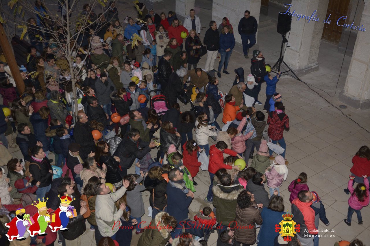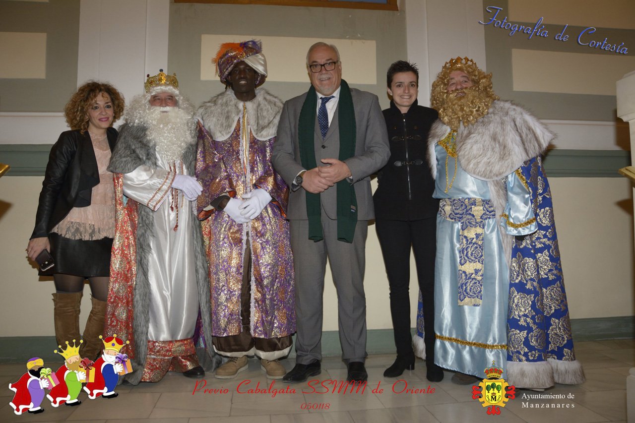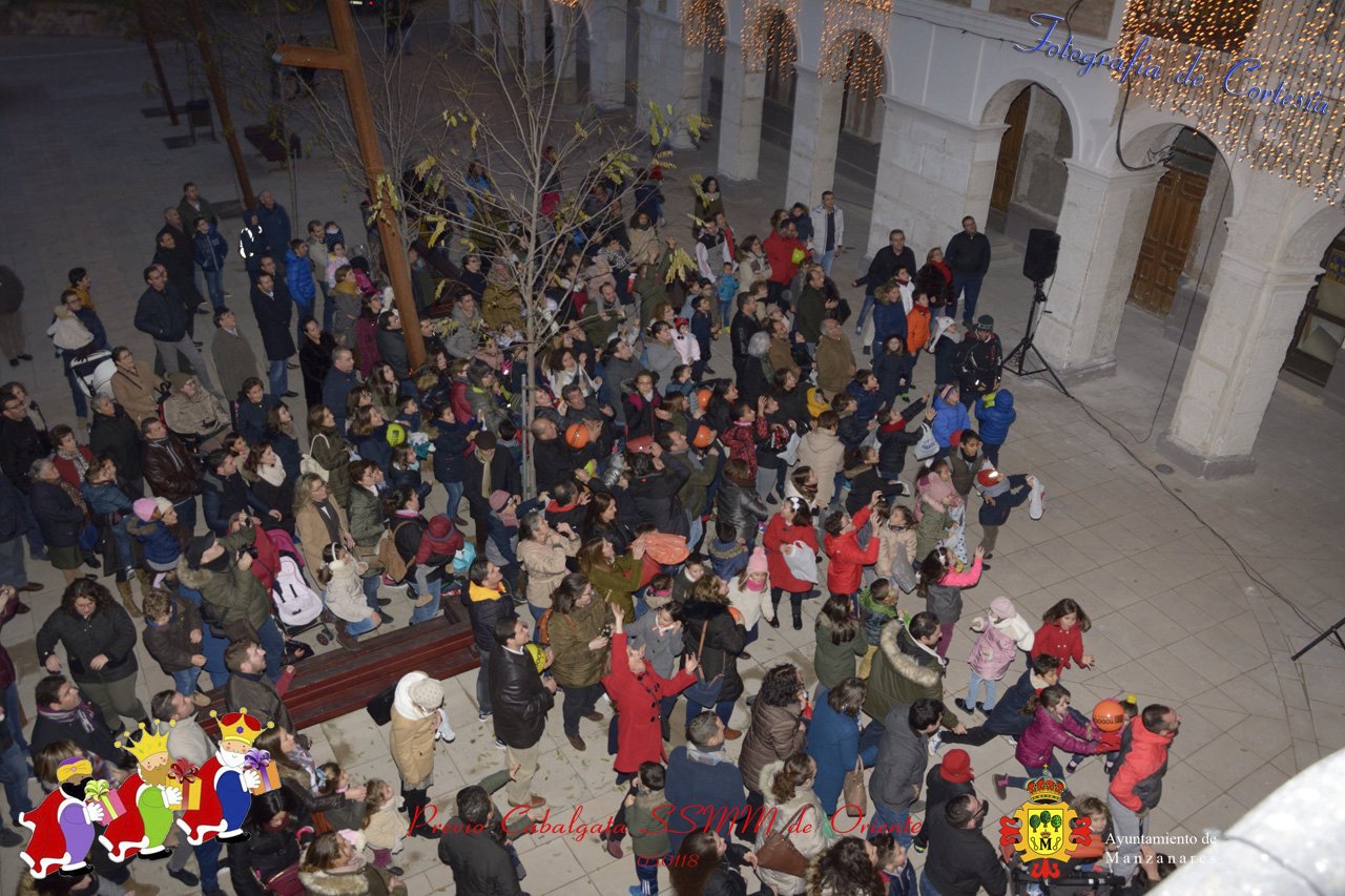 Fotografías realizadas durante la recepción de SSMM de Oriente Melchor , Gaspar y Baltasar a las puertas del Ayuntamiento , saludando a todas los niños y mayores que habia en ese momento, repartiendo caramelos, chuches variadas e incluso balones de goma. El evento tenía lugar el dia 050118 previo a la Cabalgata de Reyes.. Estos actos han sido realizados con motivo de las Fiestas Navideñas 2017 en la localidad de Manzanares, Ciudad Real.