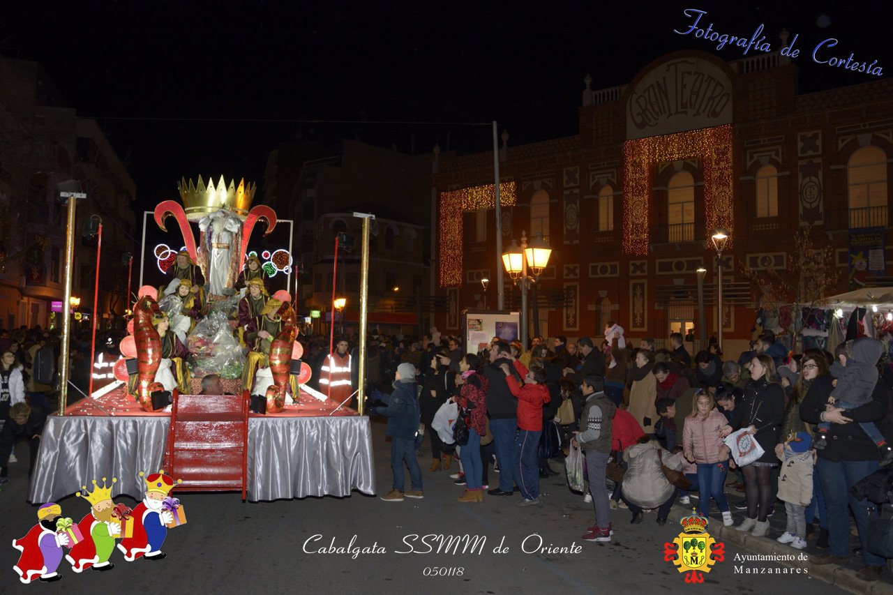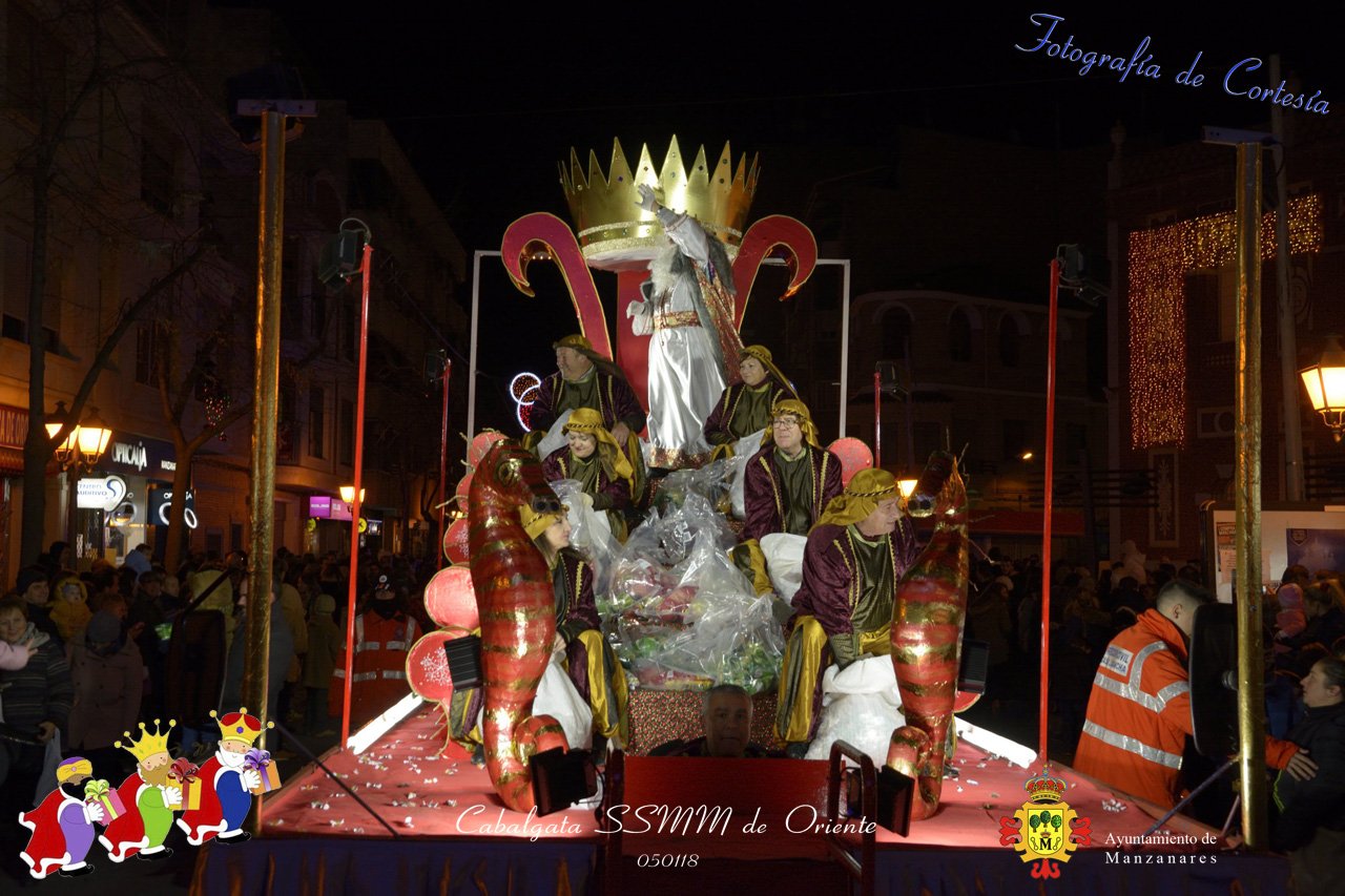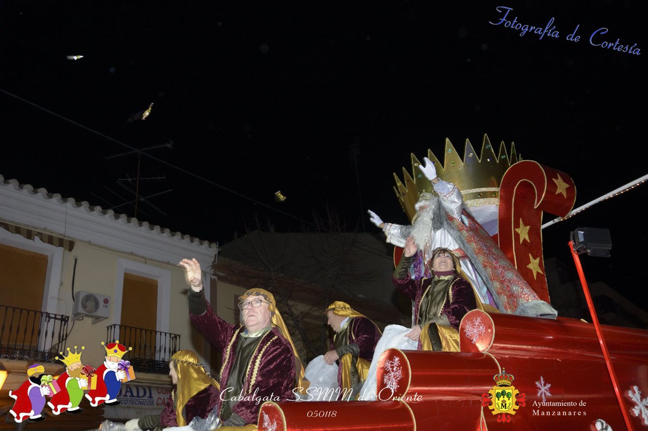 Fotografías realizadas durante la Cabalgata de SSMM de Oriente Melchor , Gaspar y Baltasar , recorriendo las calles repartiendo todo tipo de chucherías y golosinas. El pasado día 050118, el actos han sido realizados con motivo de las Fiestas Navideñas 2017 en la localidad de Manzanares, Ciudad Real.