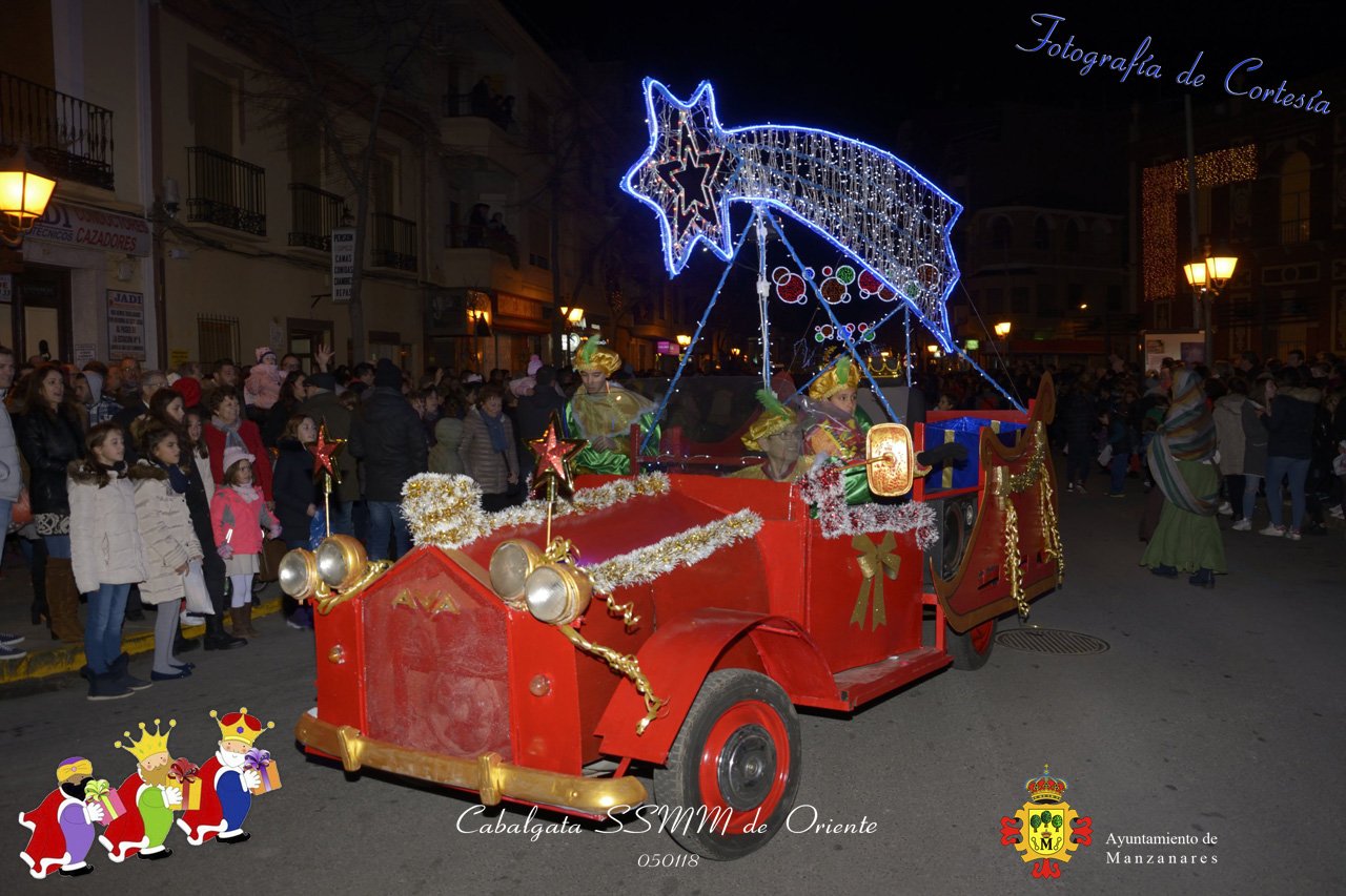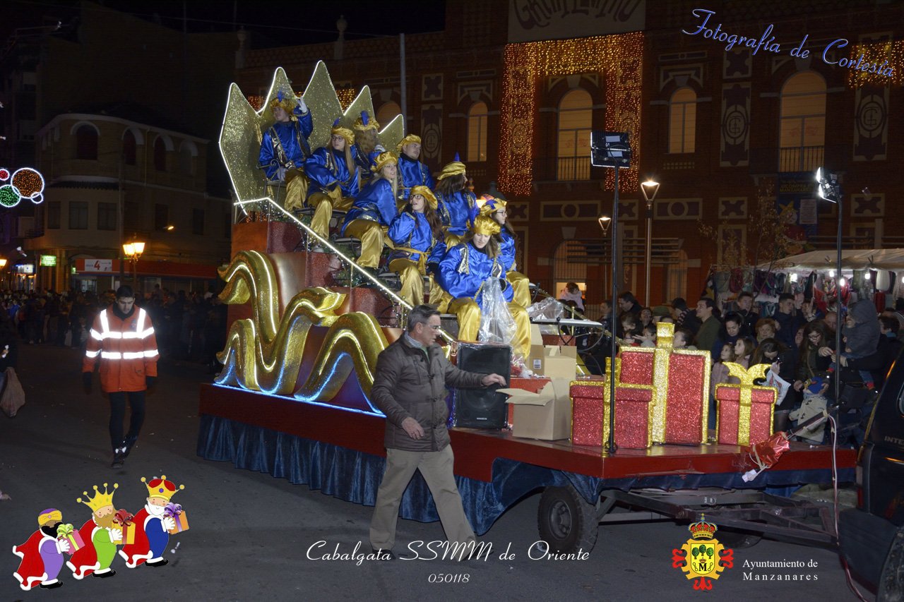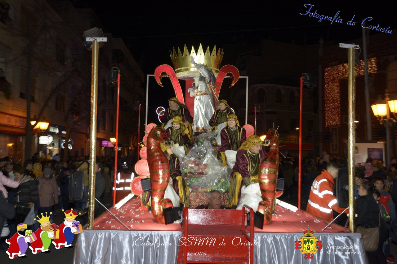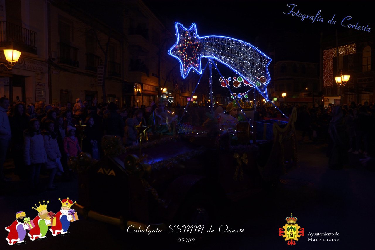 Fotografías realizadas durante la Cabalgata de SSMM de Oriente Melchor , Gaspar y Baltasar , recorriendo las calles repartiendo todo tipo de chucherías y golosinas. El pasado día 050118, el actos han sido realizados con motivo de las Fiestas Navideñas 2017 en la localidad de Manzanares, Ciudad Real.