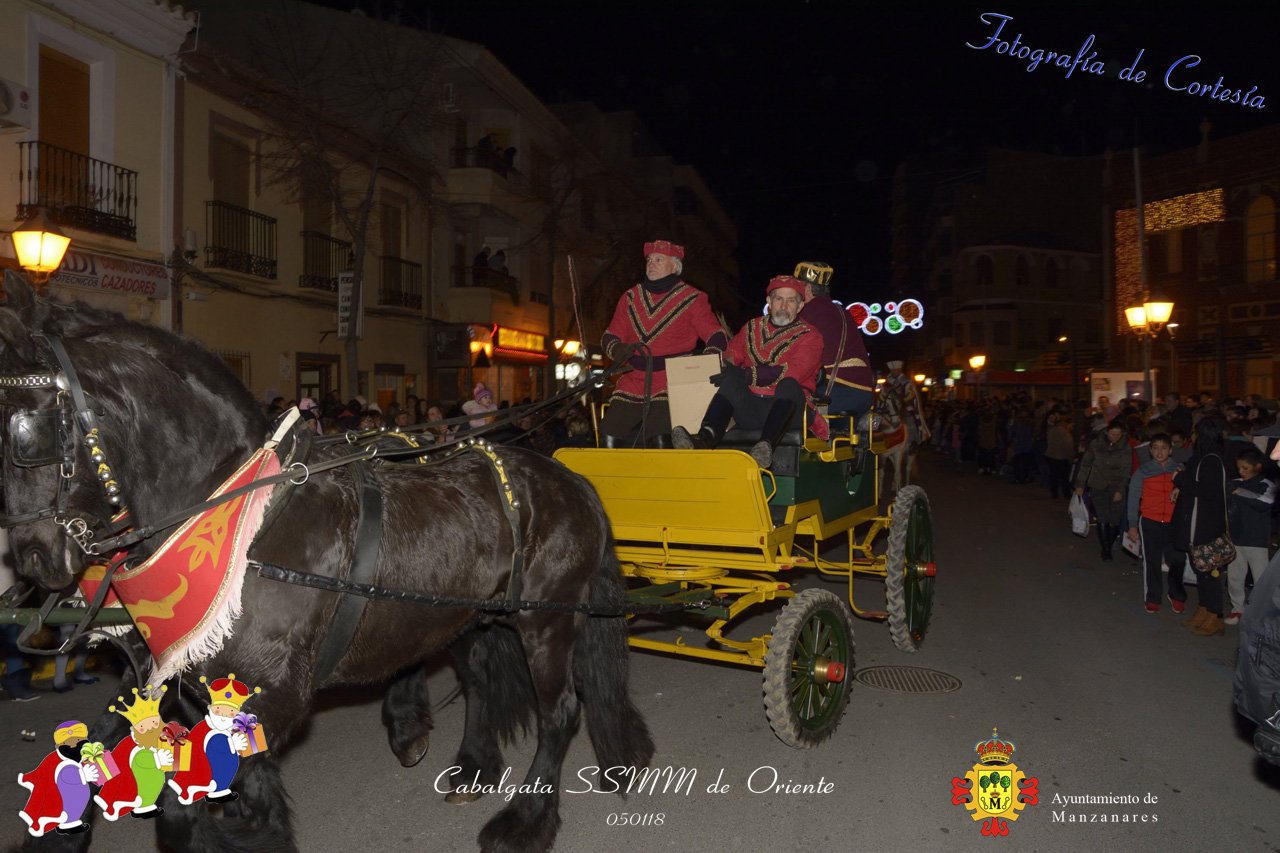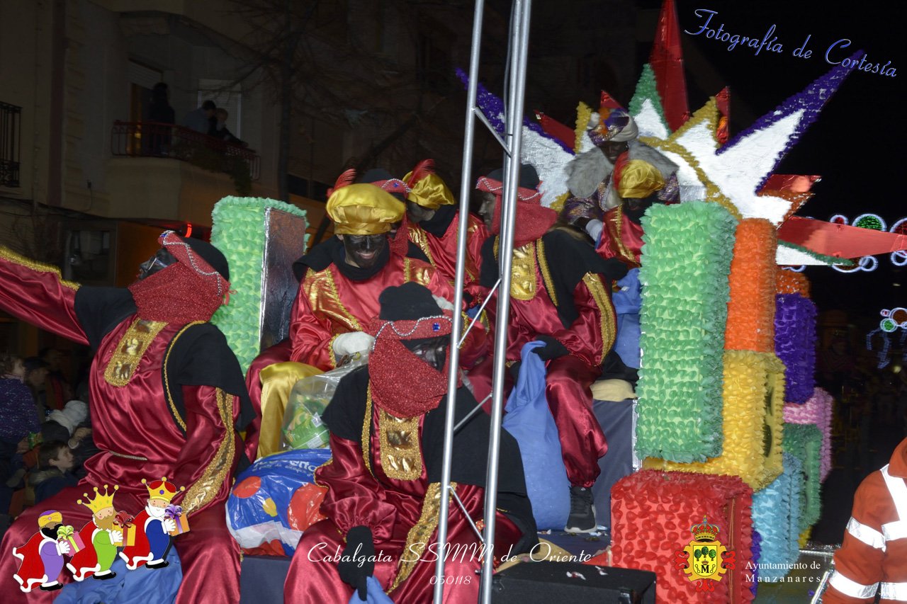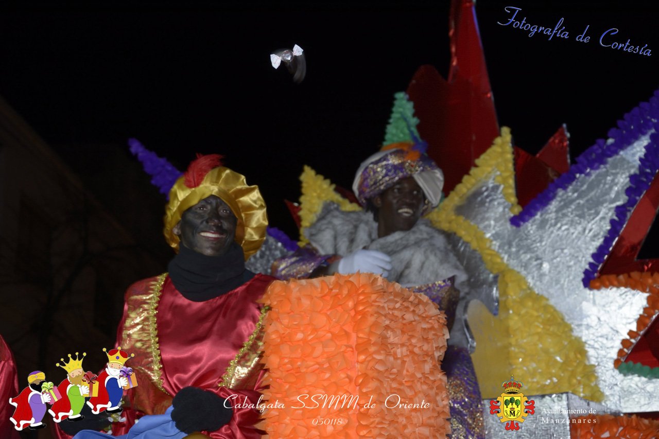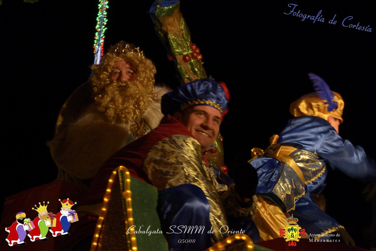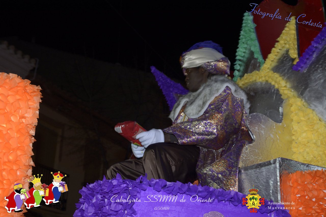 Fotografías realizadas durante la Cabalgata de SSMM de Oriente Melchor , Gaspar y Baltasar , recorriendo las calles repartiendo todo tipo de chucherías y golosinas. El pasado día 050118, el actos han sido realizados con motivo de las Fiestas Navideñas 2017 en la localidad de Manzanares, Ciudad Real.