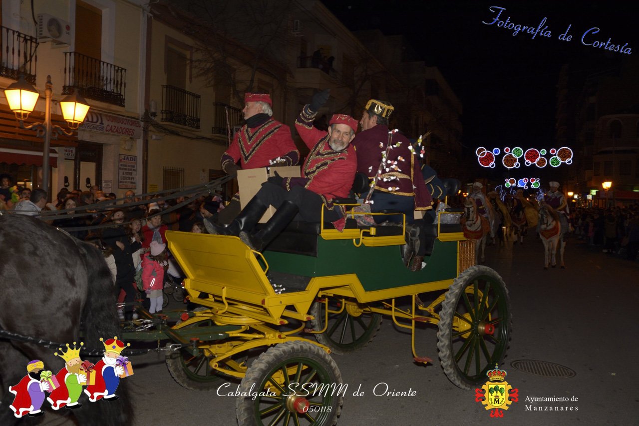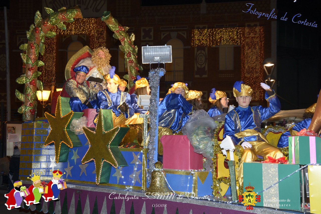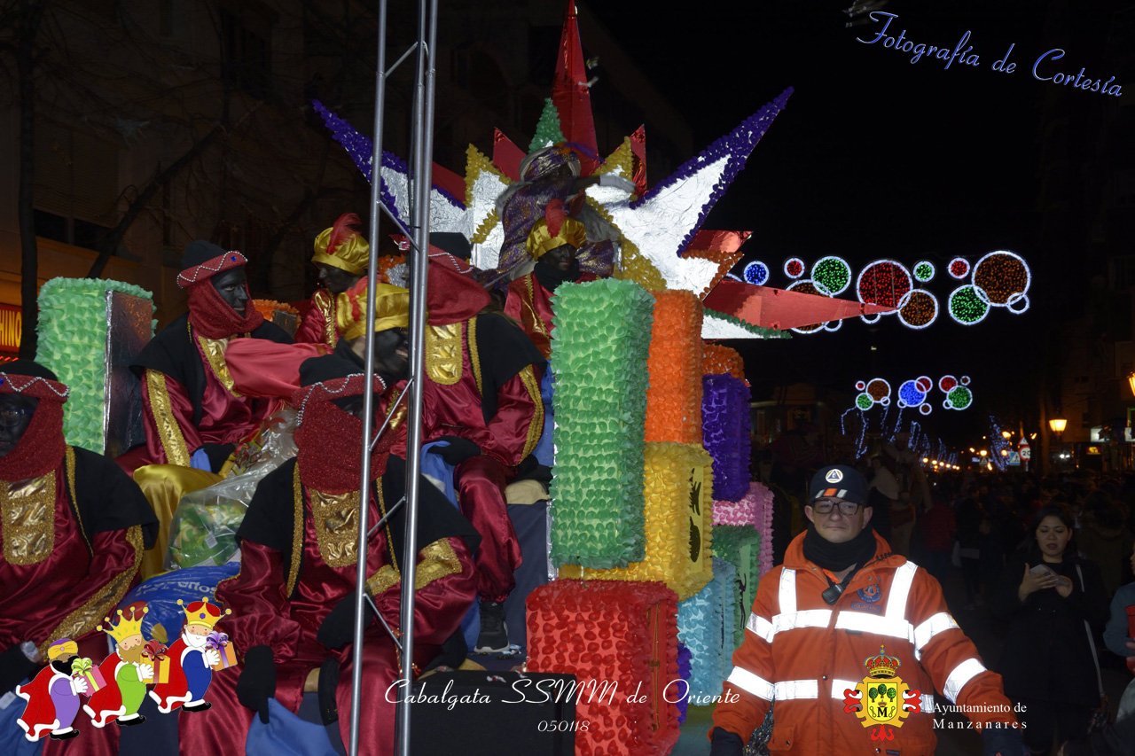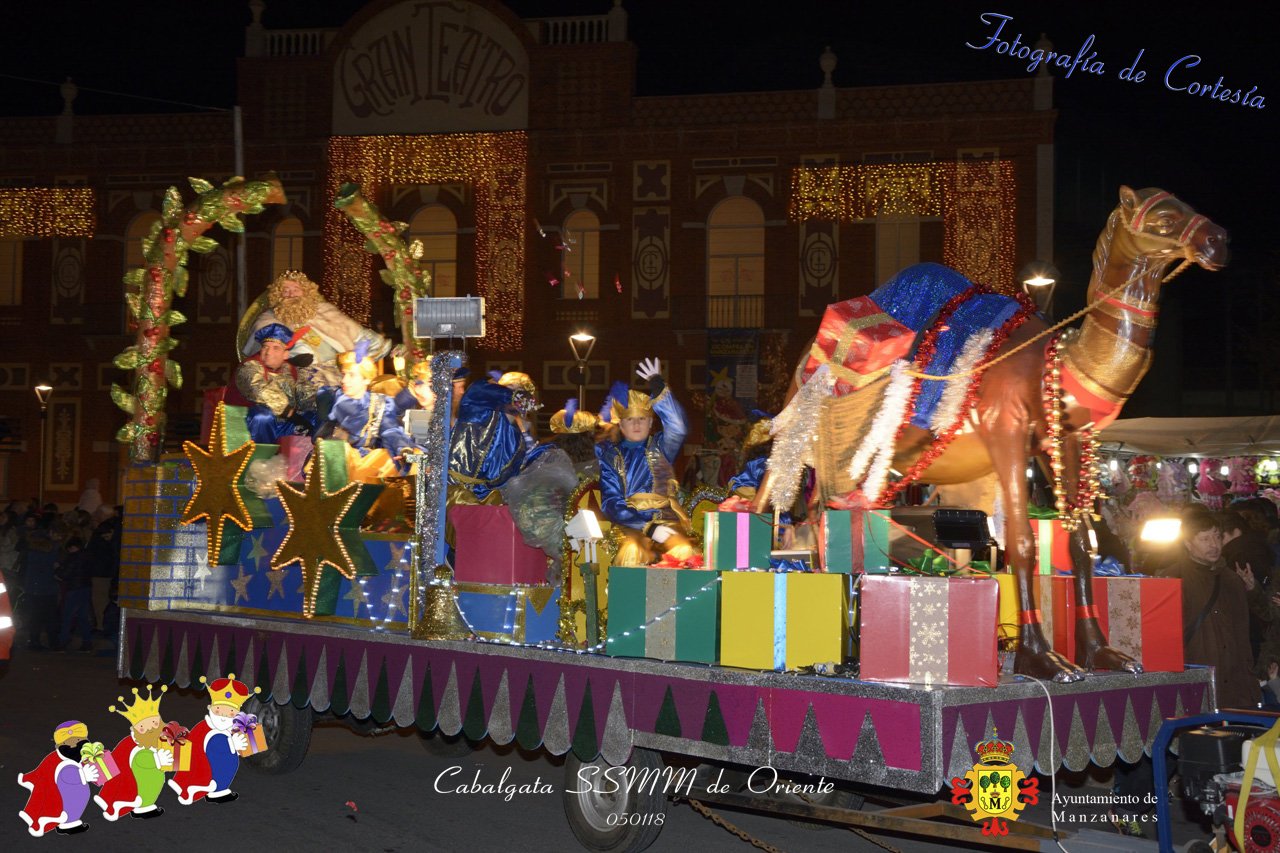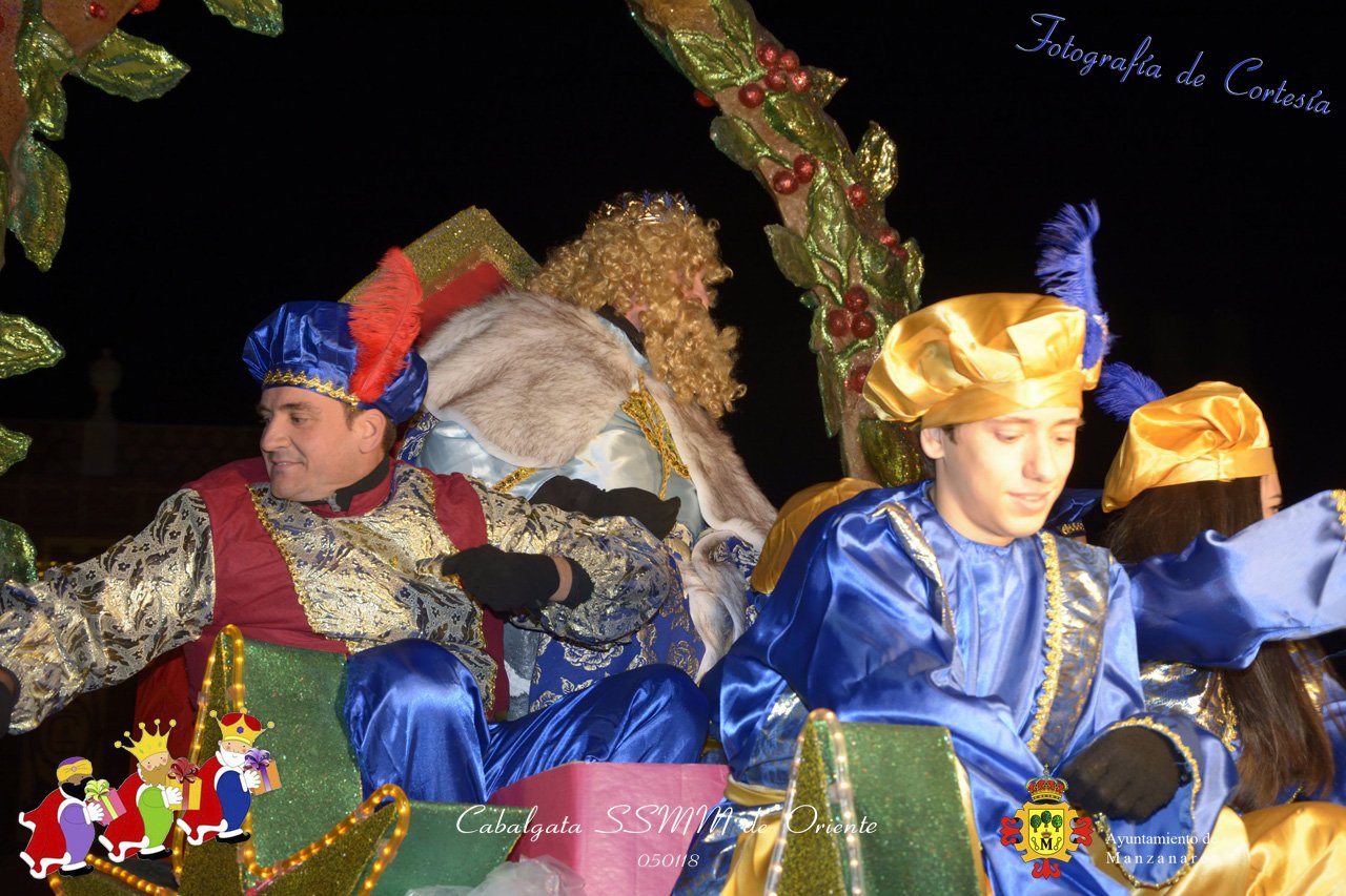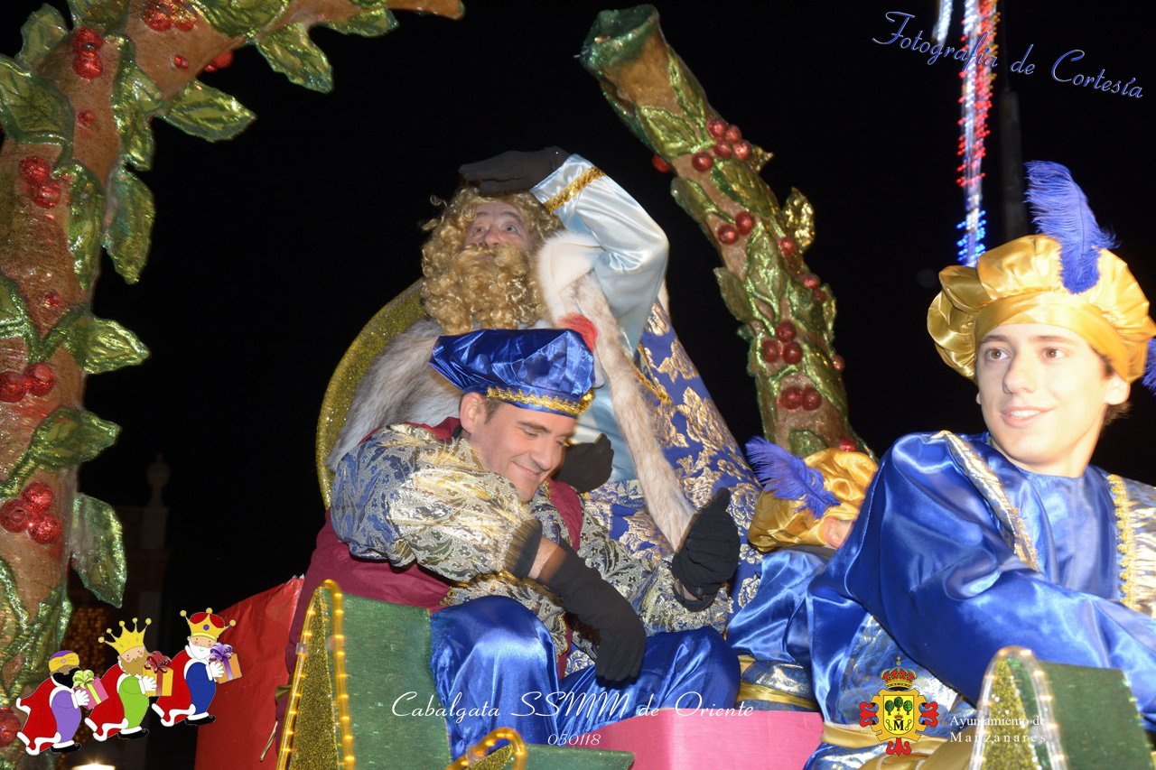 Fotografías realizadas durante la Cabalgata de SSMM de Oriente Melchor , Gaspar y Baltasar , recorriendo las calles repartiendo todo tipo de chucherías y golosinas. El pasado día 050118, el actos han sido realizados con motivo de las Fiestas Navideñas 2017 en la localidad de Manzanares, Ciudad Real.