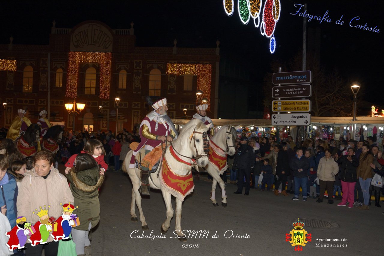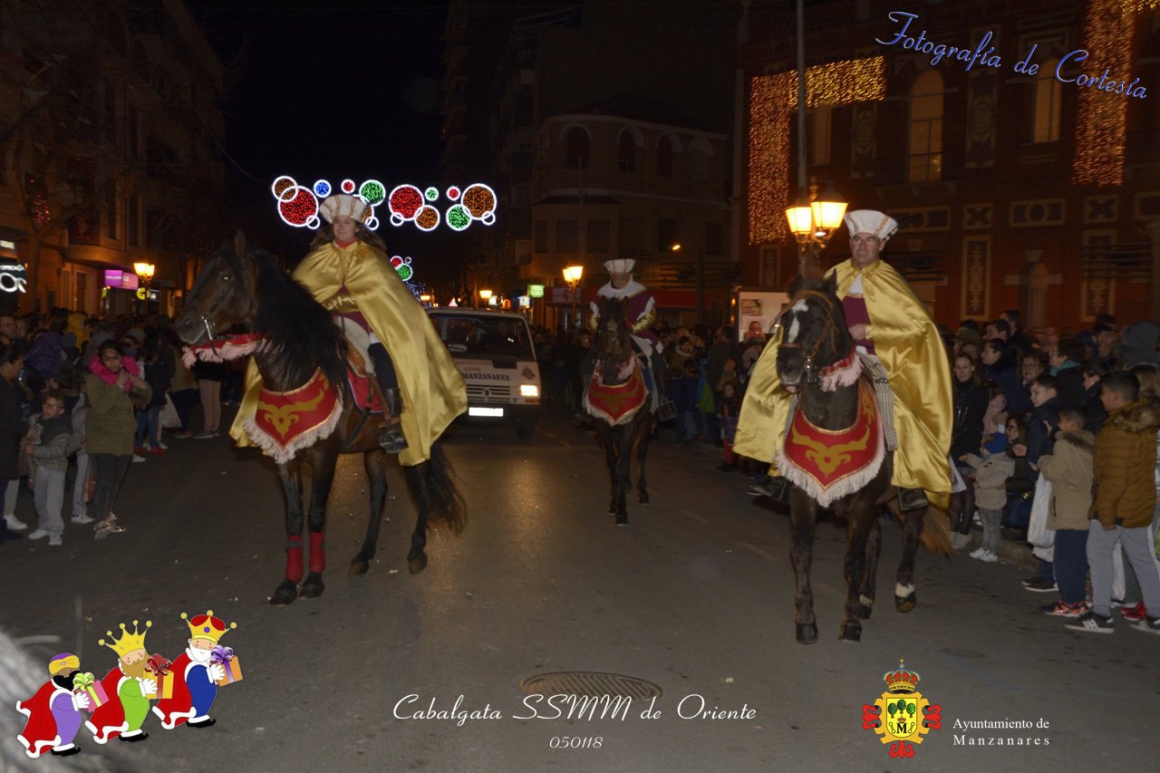 Fotografías realizadas durante la Cabalgata de SSMM de Oriente Melchor , Gaspar y Baltasar , recorriendo las calles repartiendo todo tipo de chucherías y golosinas. El pasado día 050118, el actos han sido realizados con motivo de las Fiestas Navideñas 2017 en la localidad de Manzanares, Ciudad Real.