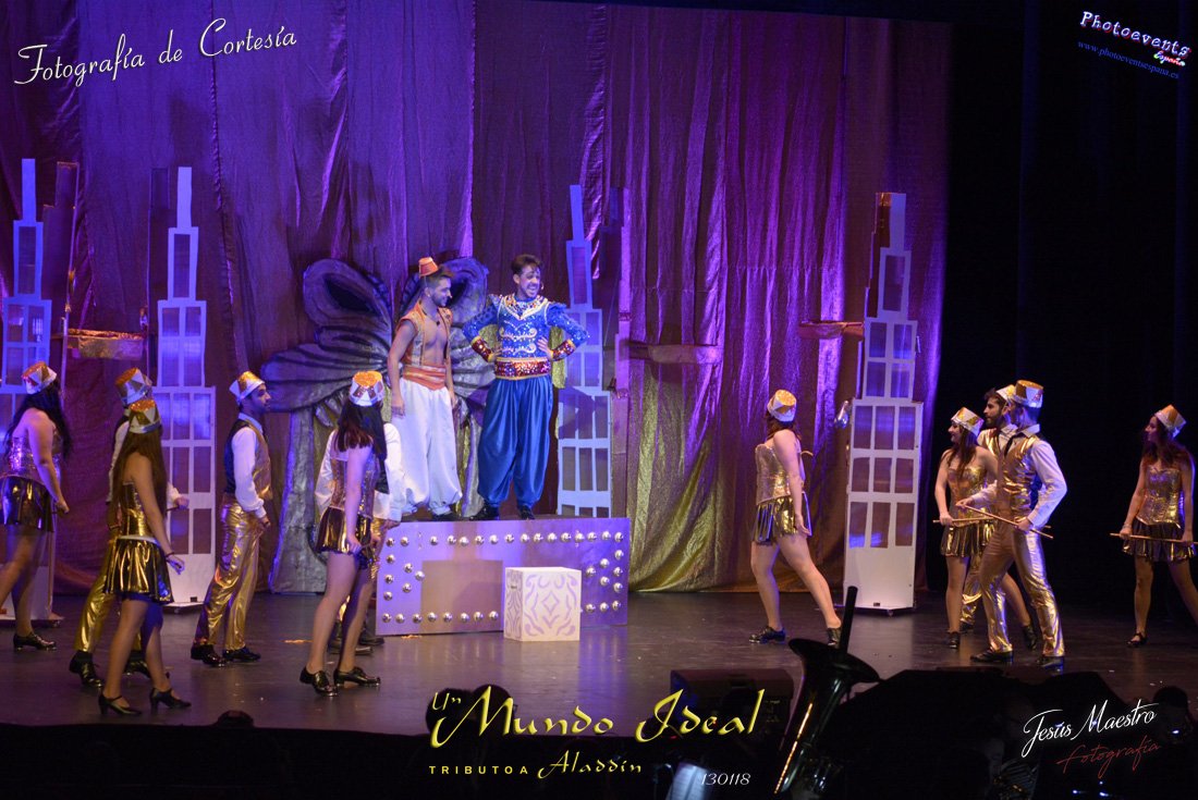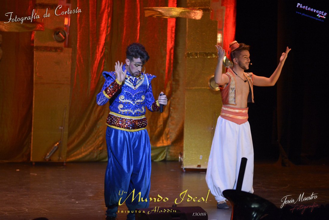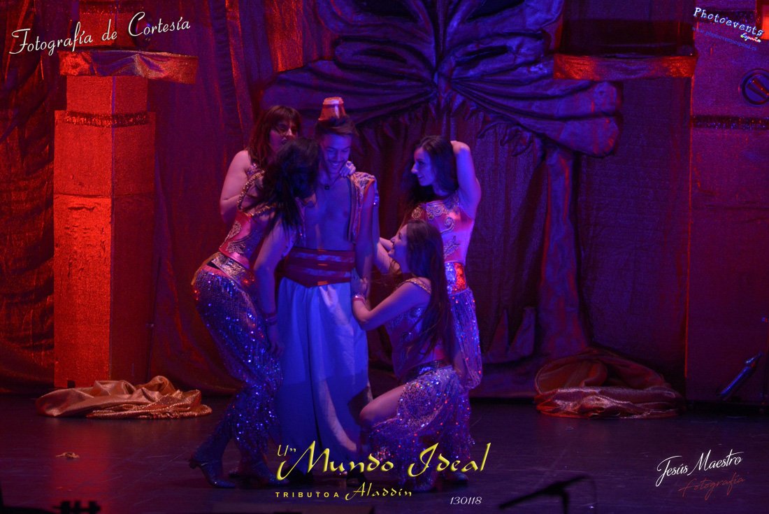 Fotografías realizadas durante el estreno del espectáculo musical "Un mundo ideal" Tributo a Aladdín, el pasado día 13 de Enero, llevado a cabo por Producciones Rompehielos de Daimiel, en el Gran Teatro de Manzanares ( Ciudad Real) . Con un lleno casi absoluto, los chicos de Rompehielos hicieron disfrutar tanto a niños como a mayores, trasportandolos a un mundo de ensueño. Música en directo, baile y fantasia llenaron el escenario manzanareño. Las fotografías están a disposición de cualquier persona interesada en ellas, pudiendo ser descargadas directamente pulsando en la flecha verde.