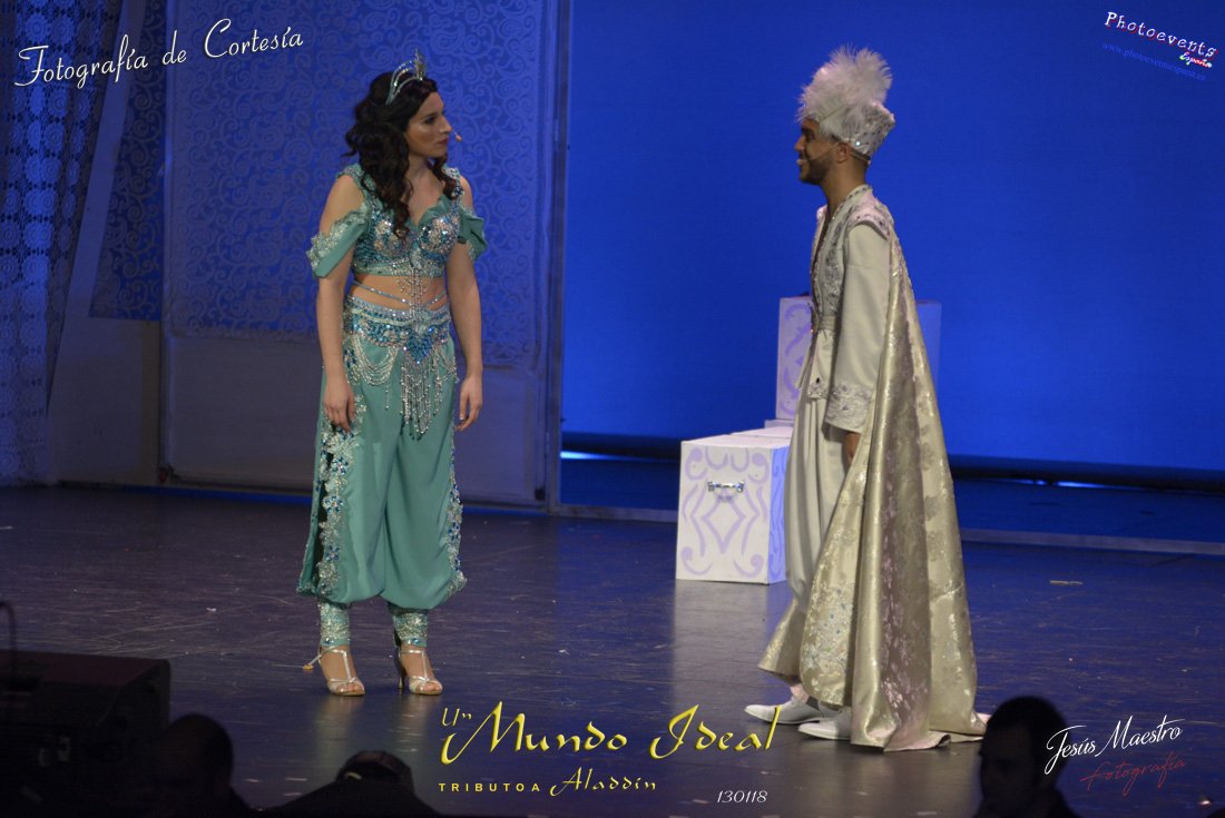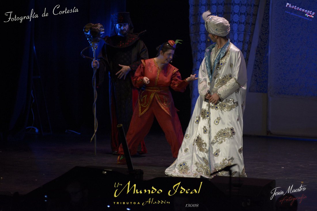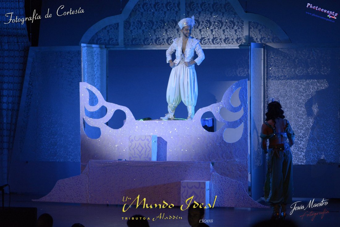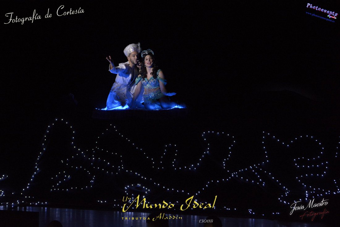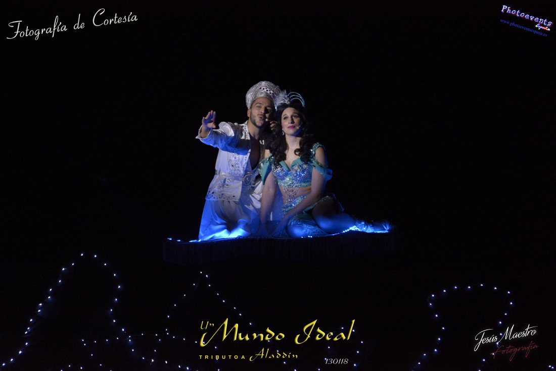 Fotografías realizadas durante el estreno del espectáculo musical "Un mundo ideal" Tributo a Aladdín, el pasado día 13 de Enero, llevado a cabo por Producciones Rompehielos de Daimiel, en el Gran Teatro de Manzanares ( Ciudad Real) . Con un lleno casi absoluto, los chicos de Rompehielos hicieron disfrutar tanto a niños como a mayores, trasportandolos a un mundo de ensueño. Música en directo, baile y fantasia llenaron el escenario manzanareño. Las fotografías están a disposición de cualquier persona interesada en ellas, pudiendo ser descargadas directamente pulsando en la flecha verde.