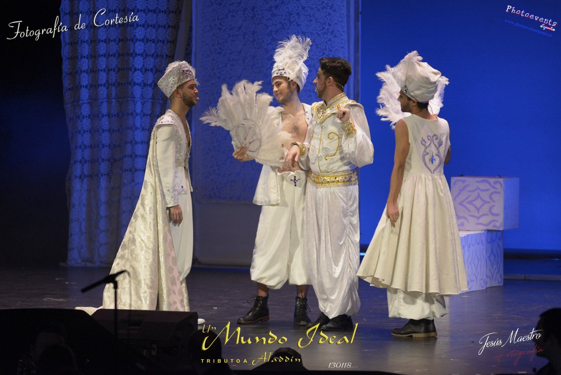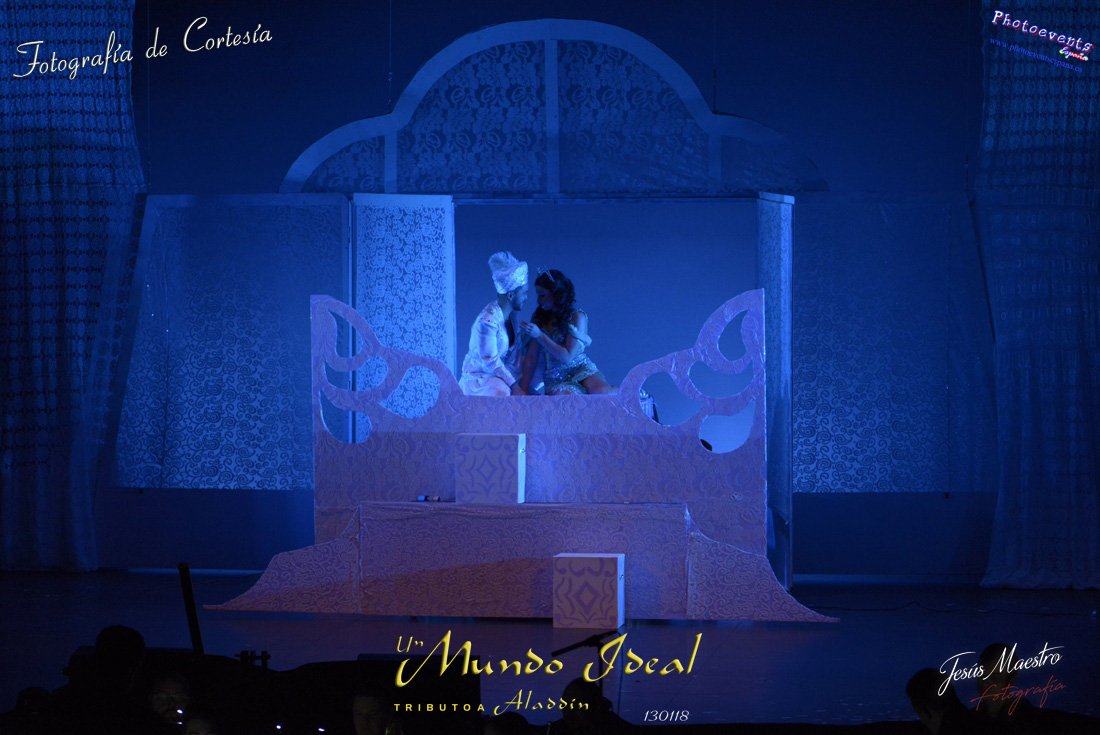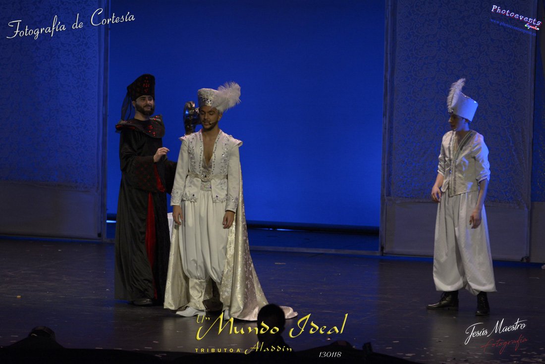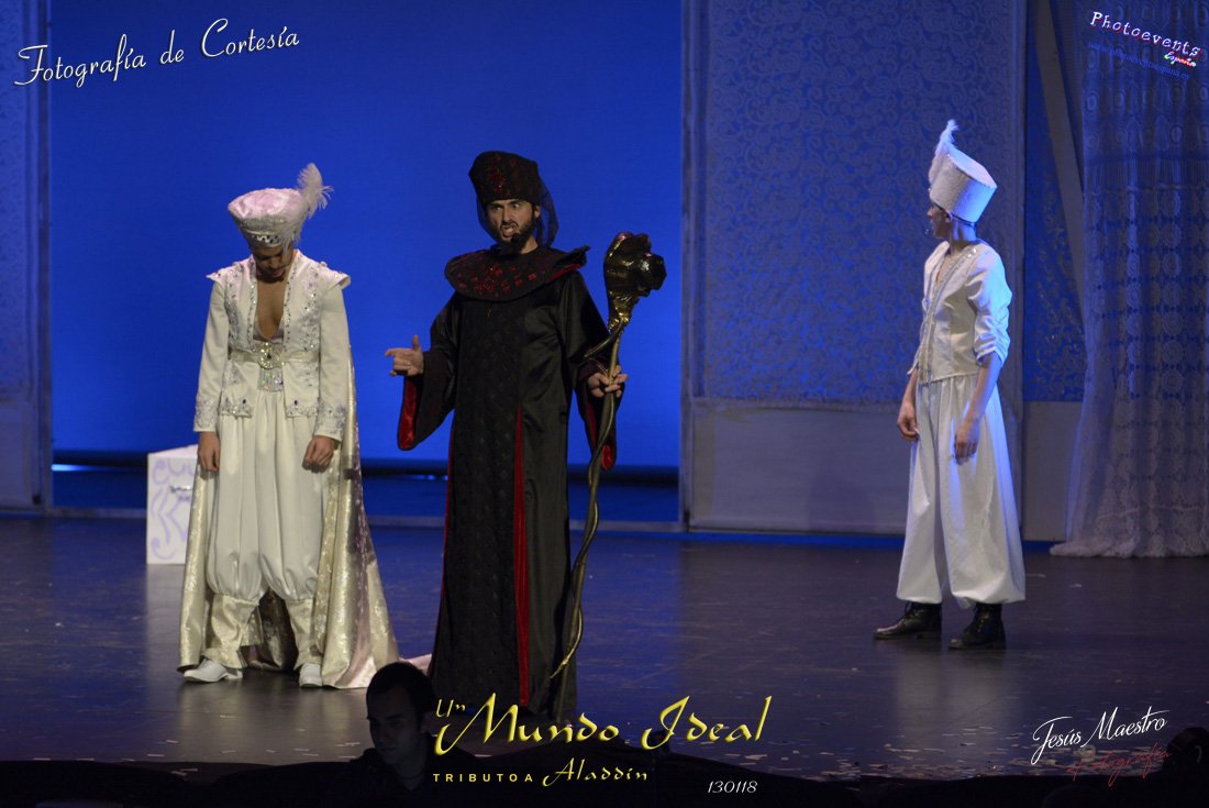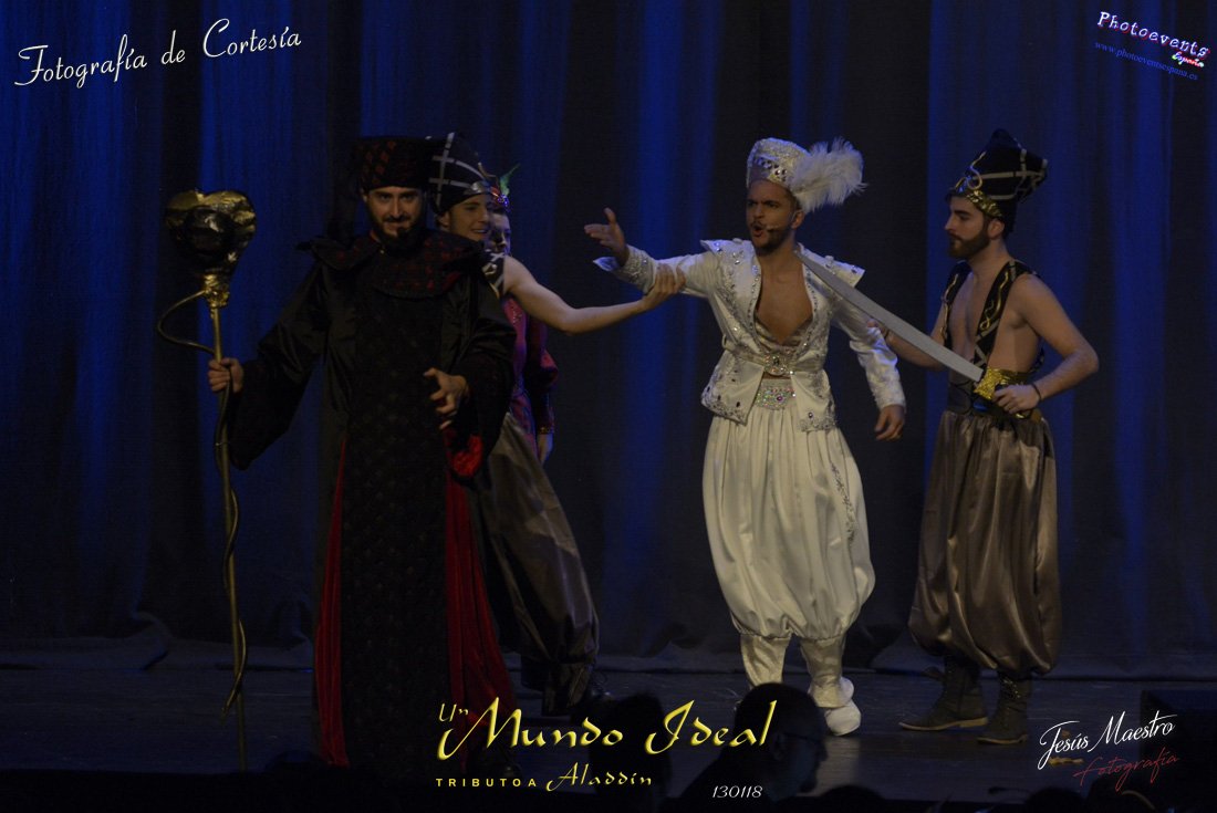 Fotografías realizadas durante el estreno del espectáculo musical "Un mundo ideal" Tributo a Aladdín, el pasado día 13 de Enero, llevado a cabo por Producciones Rompehielos de Daimiel, en el Gran Teatro de Manzanares ( Ciudad Real) . Con un lleno casi absoluto, los chicos de Rompehielos hicieron disfrutar tanto a niños como a mayores, trasportandolos a un mundo de ensueño. Música en directo, baile y fantasia llenaron el escenario manzanareño. Las fotografías están a disposición de cualquier persona interesada en ellas, pudiendo ser descargadas directamente pulsando en la flecha verde.