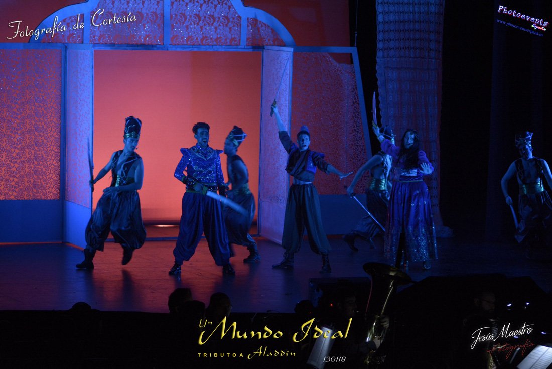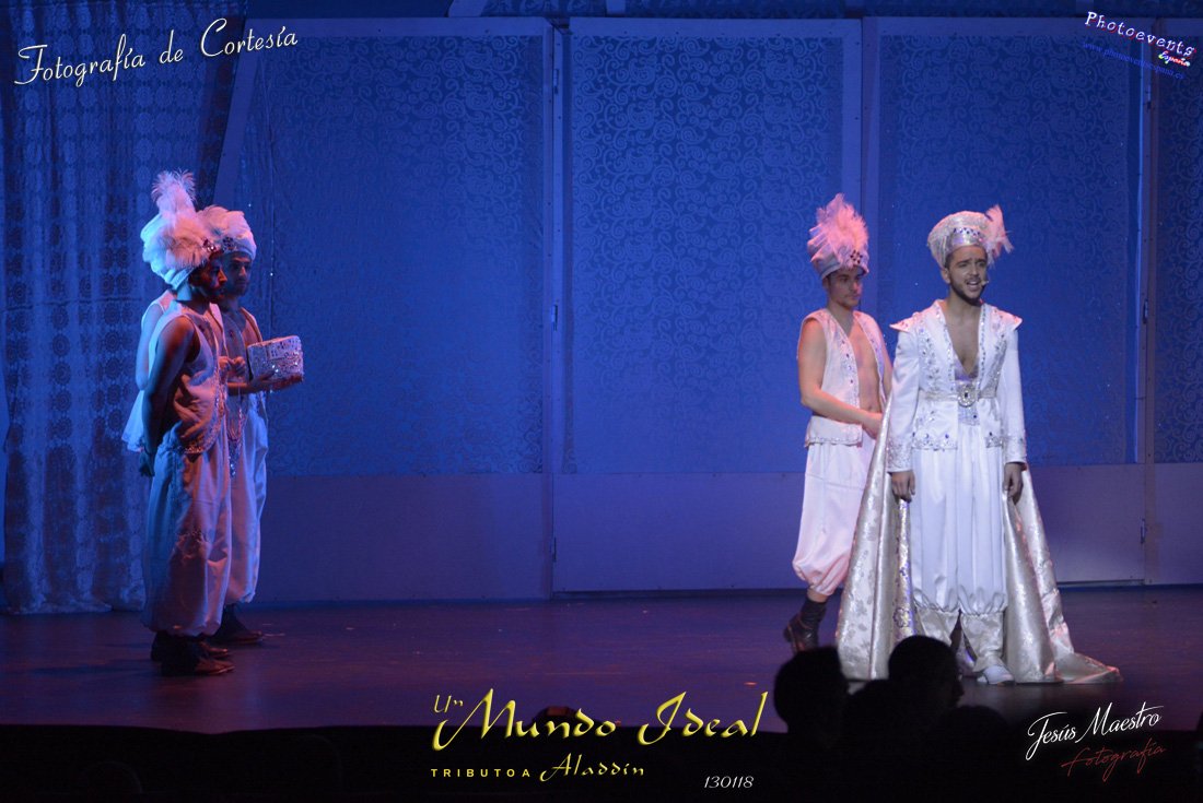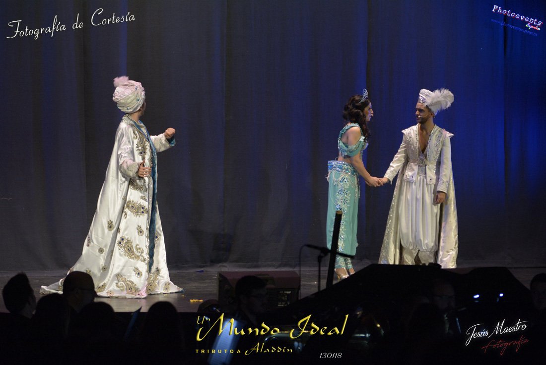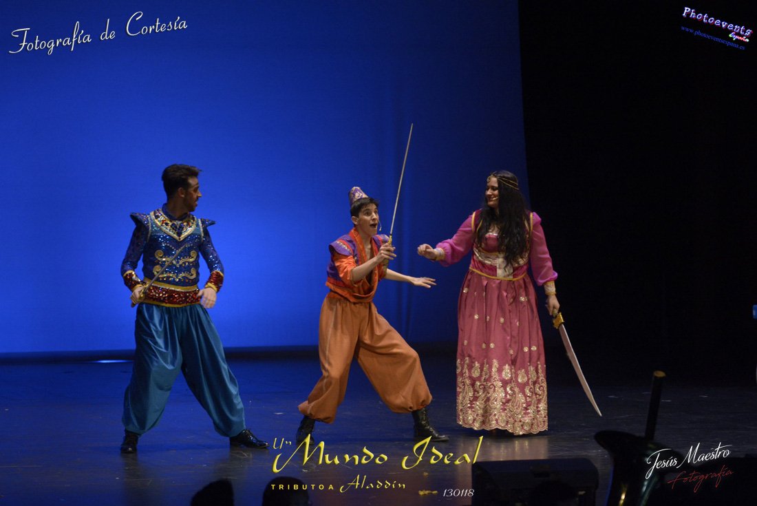 Fotografías realizadas durante el estreno del espectáculo musical "Un mundo ideal" Tributo a Aladdín, el pasado día 13 de Enero, llevado a cabo por Producciones Rompehielos de Daimiel, en el Gran Teatro de Manzanares ( Ciudad Real) . Con un lleno casi absoluto, los chicos de Rompehielos hicieron disfrutar tanto a niños como a mayores, trasportandolos a un mundo de ensueño. Música en directo, baile y fantasia llenaron el escenario manzanareño. Las fotografías están a disposición de cualquier persona interesada en ellas, pudiendo ser descargadas directamente pulsando en la flecha verde.