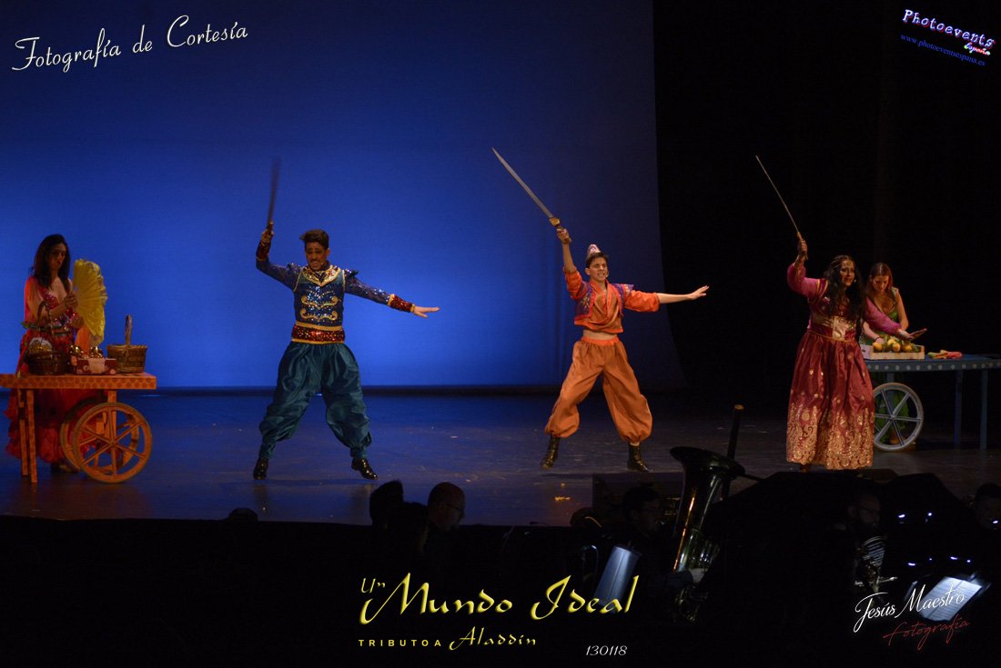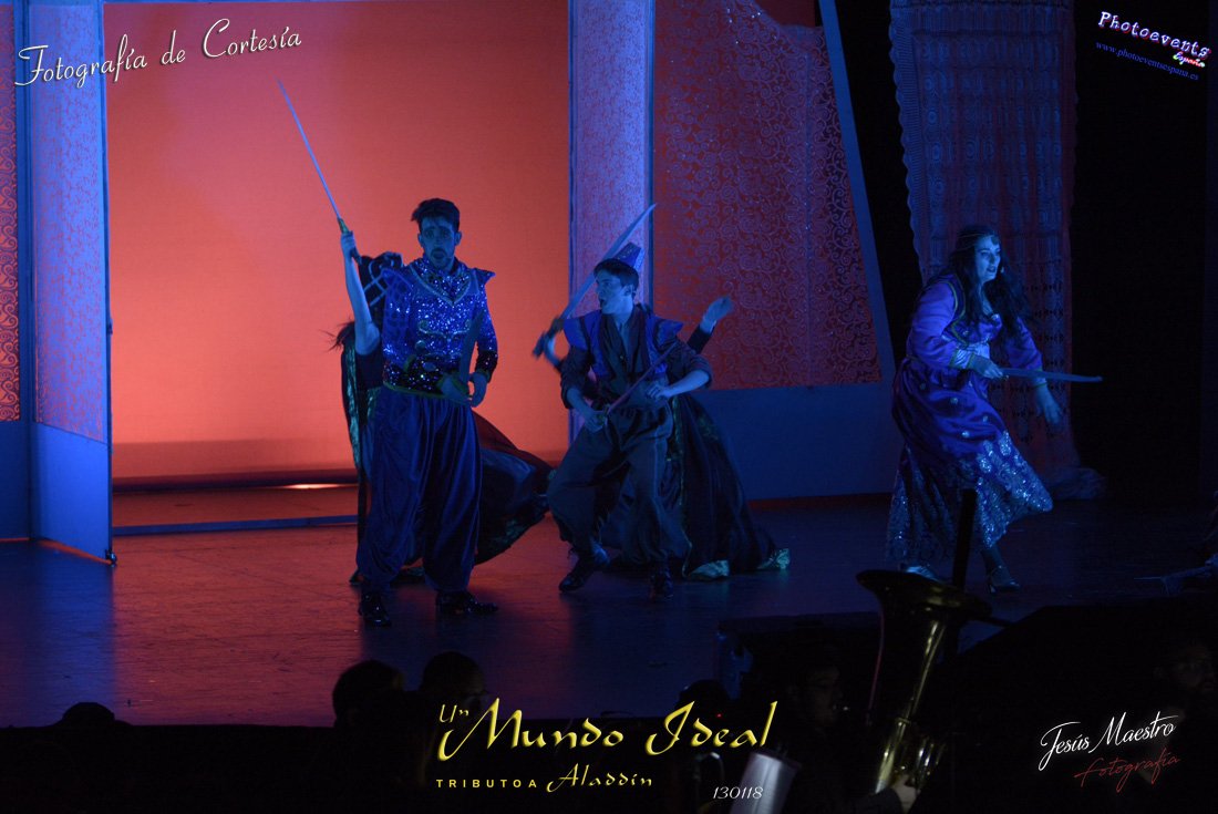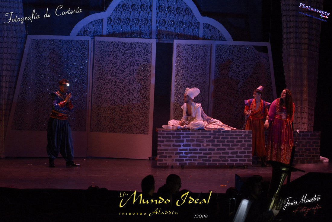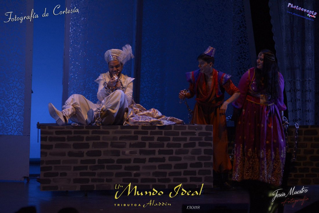 Fotografías realizadas durante el estreno del espectáculo musical "Un mundo ideal" Tributo a Aladdín, el pasado día 13 de Enero, llevado a cabo por Producciones Rompehielos de Daimiel, en el Gran Teatro de Manzanares ( Ciudad Real) . Con un lleno casi absoluto, los chicos de Rompehielos hicieron disfrutar tanto a niños como a mayores, trasportandolos a un mundo de ensueño. Música en directo, baile y fantasia llenaron el escenario manzanareño. Las fotografías están a disposición de cualquier persona interesada en ellas, pudiendo ser descargadas directamente pulsando en la flecha verde.