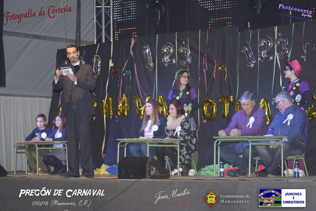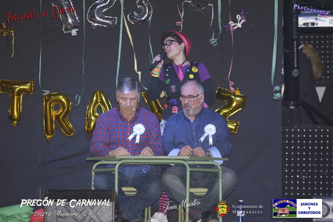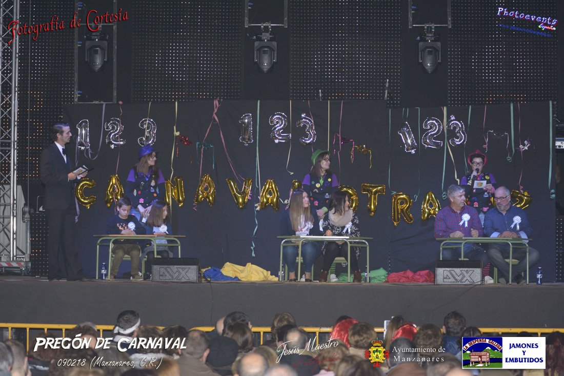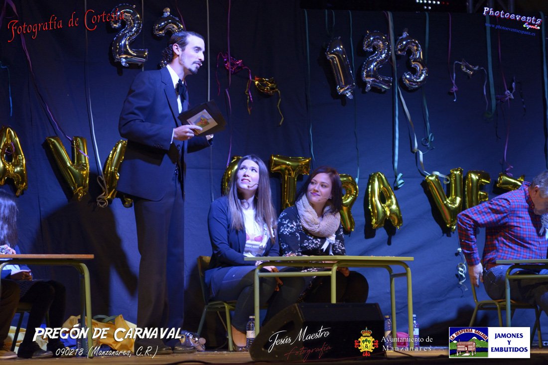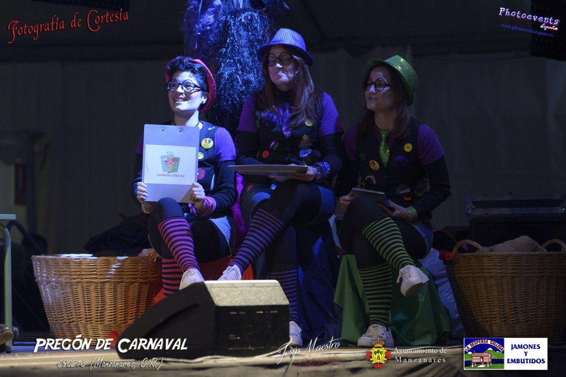 Fotografías realizadas durante el pregón realizado con motivo de los Carnavales en Manzanares, haciendo un guiño al programa televisivo del 1, 2 , 3, en el cual tres generaciones de participantes con tres franjas de edad totalmente distintas, dando comienzo oficialmente los Carnavales 2018 en la localidad de Manzanares, Ciudad Real.