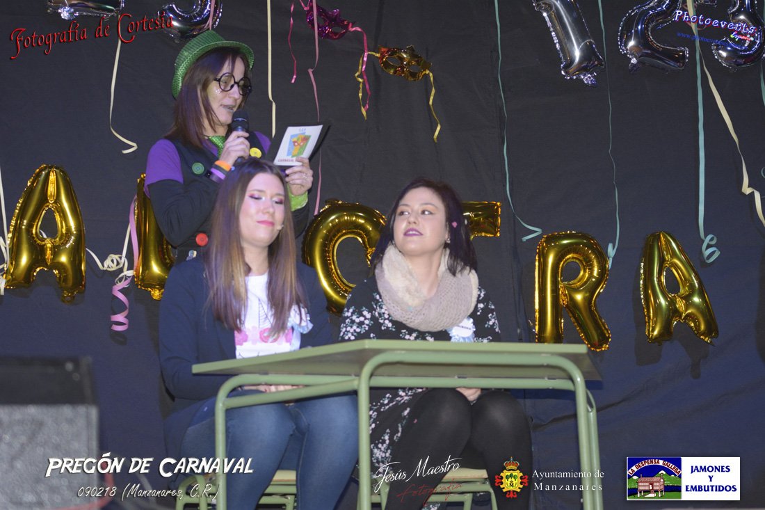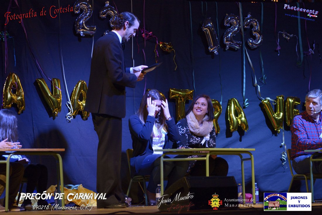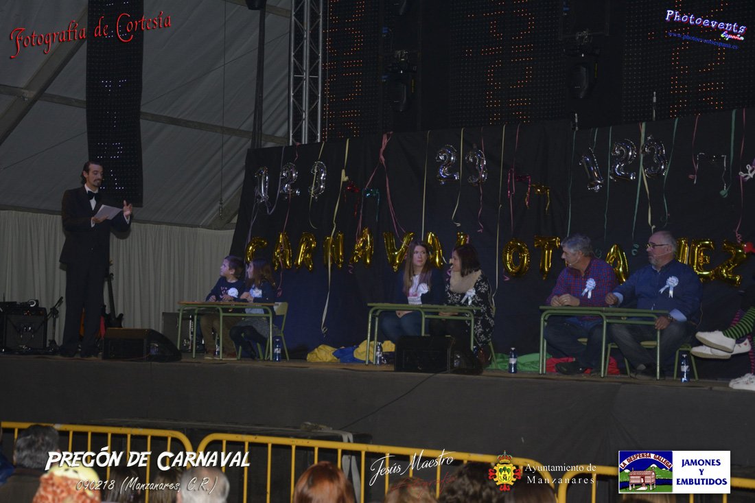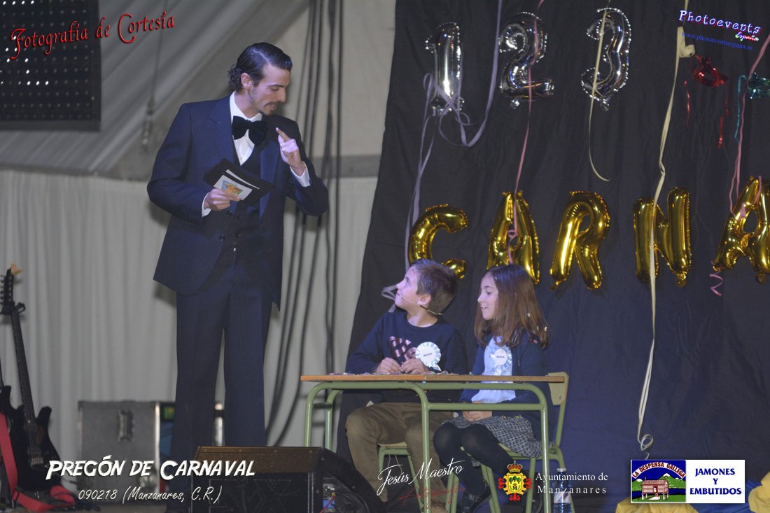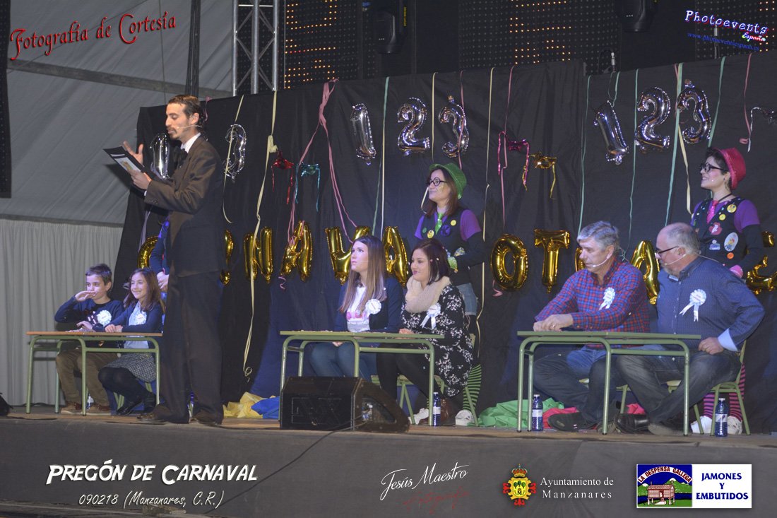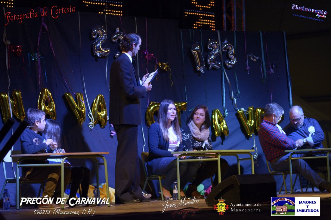 Fotografías realizadas durante el pregón realizado con motivo de los Carnavales en Manzanares, haciendo un guiño al programa televisivo del 1, 2 , 3, en el cual tres generaciones de participantes con tres franjas de edad totalmente distintas, dando comienzo oficialmente los Carnavales 2018 en la localidad de Manzanares, Ciudad Real.