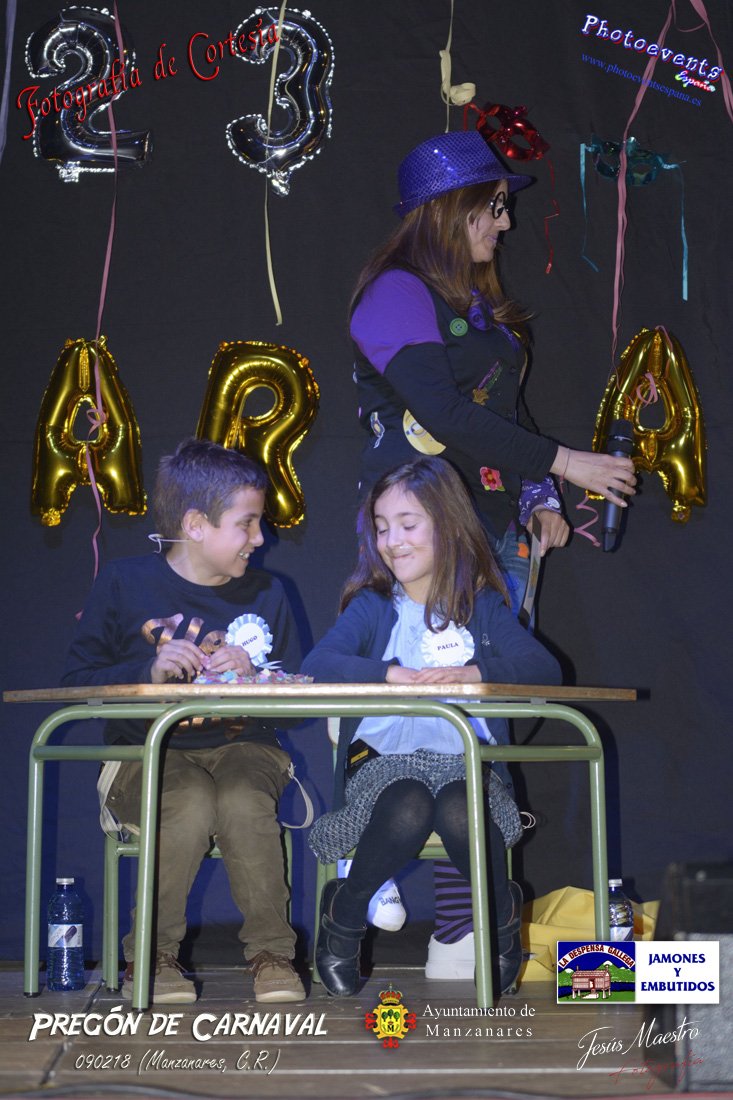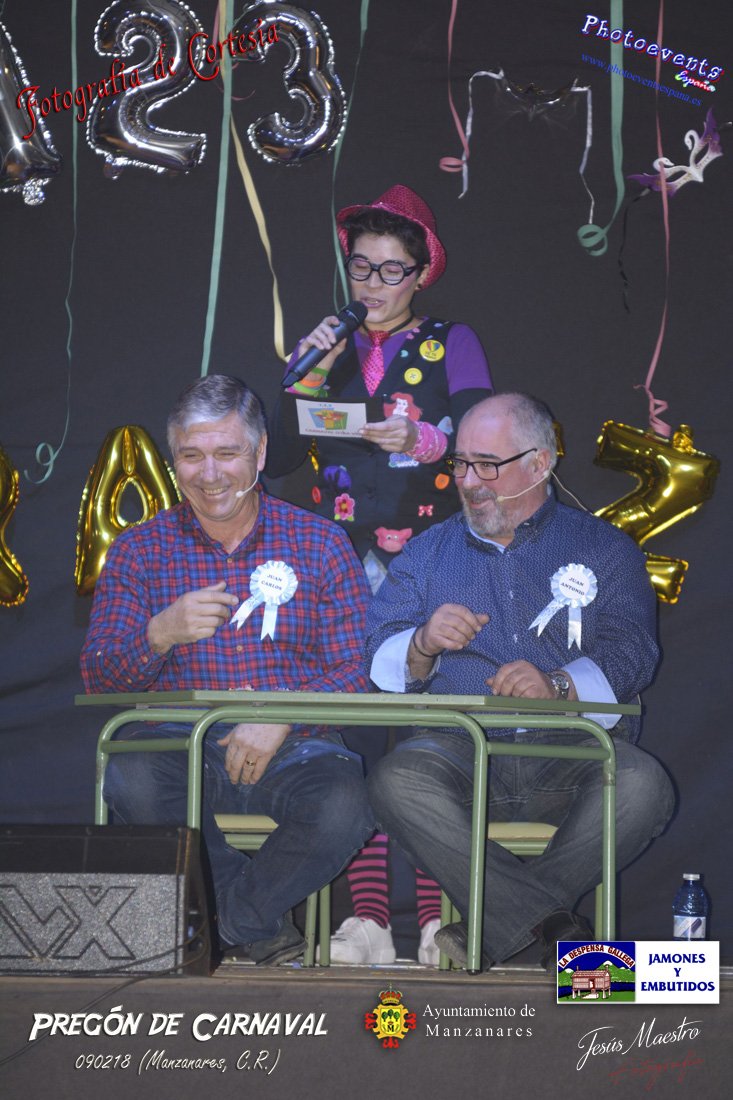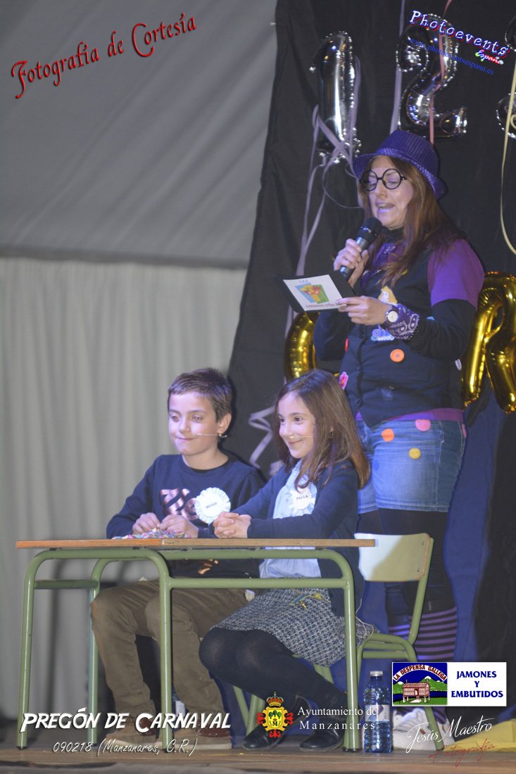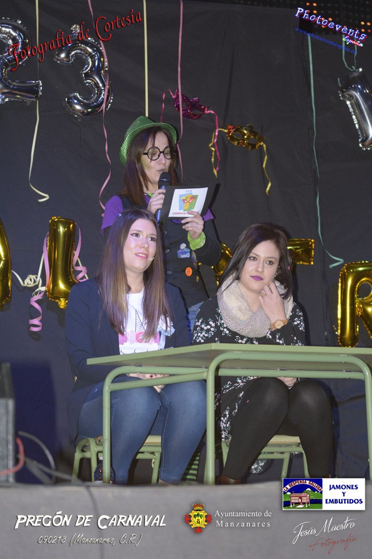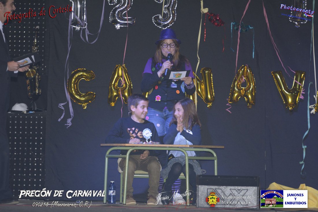 Fotografías realizadas durante el pregón realizado con motivo de los Carnavales en Manzanares, haciendo un guiño al programa televisivo del 1, 2 , 3, en el cual tres generaciones de participantes con tres franjas de edad totalmente distintas, dando comienzo oficialmente los Carnavales 2018 en la localidad de Manzanares, Ciudad Real.