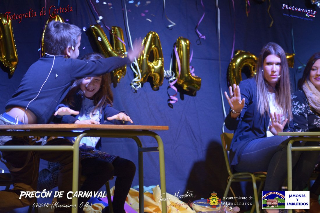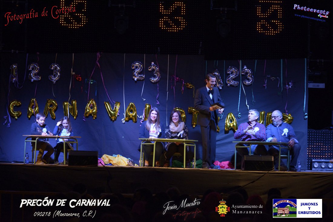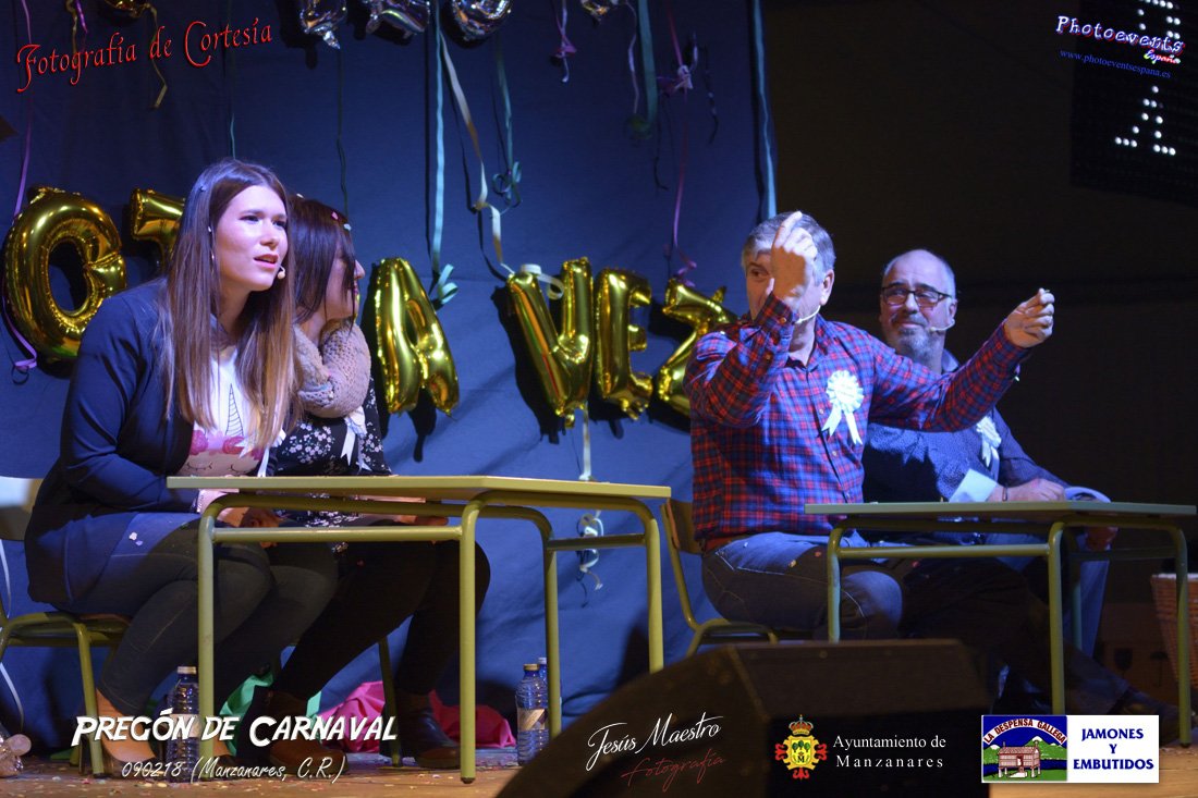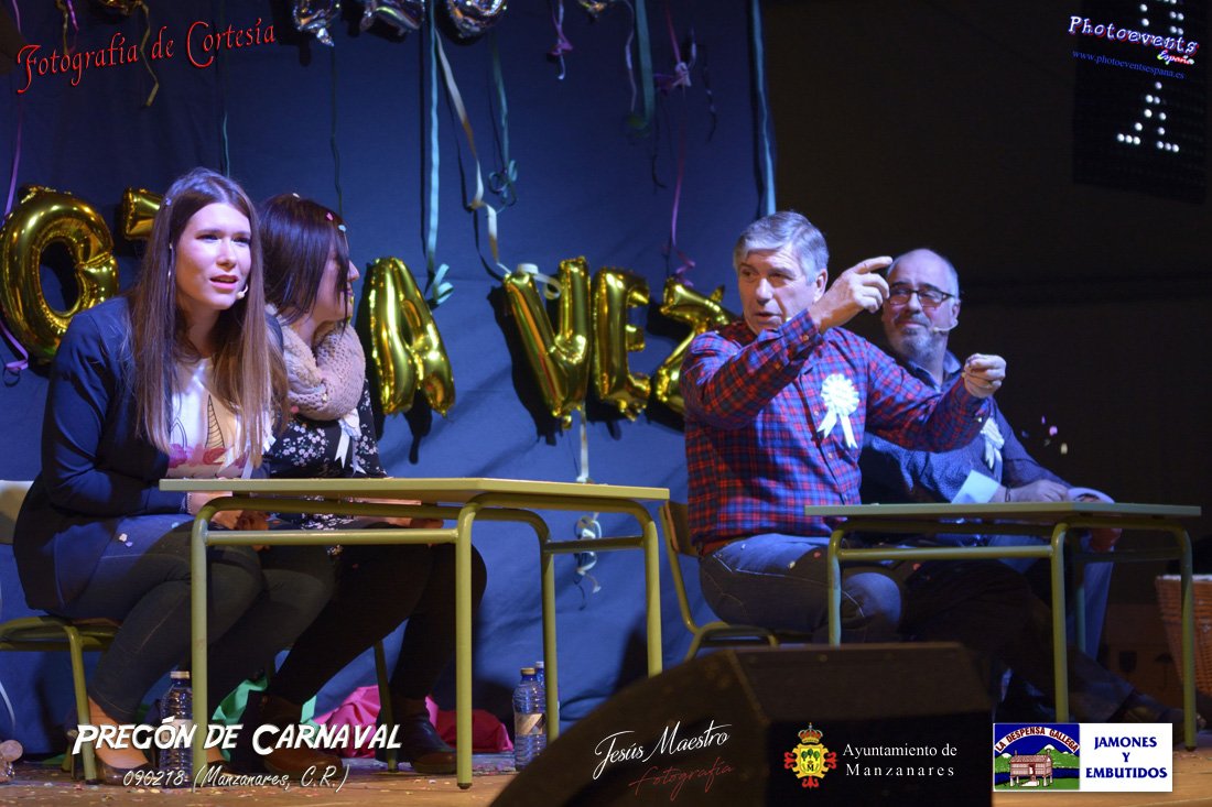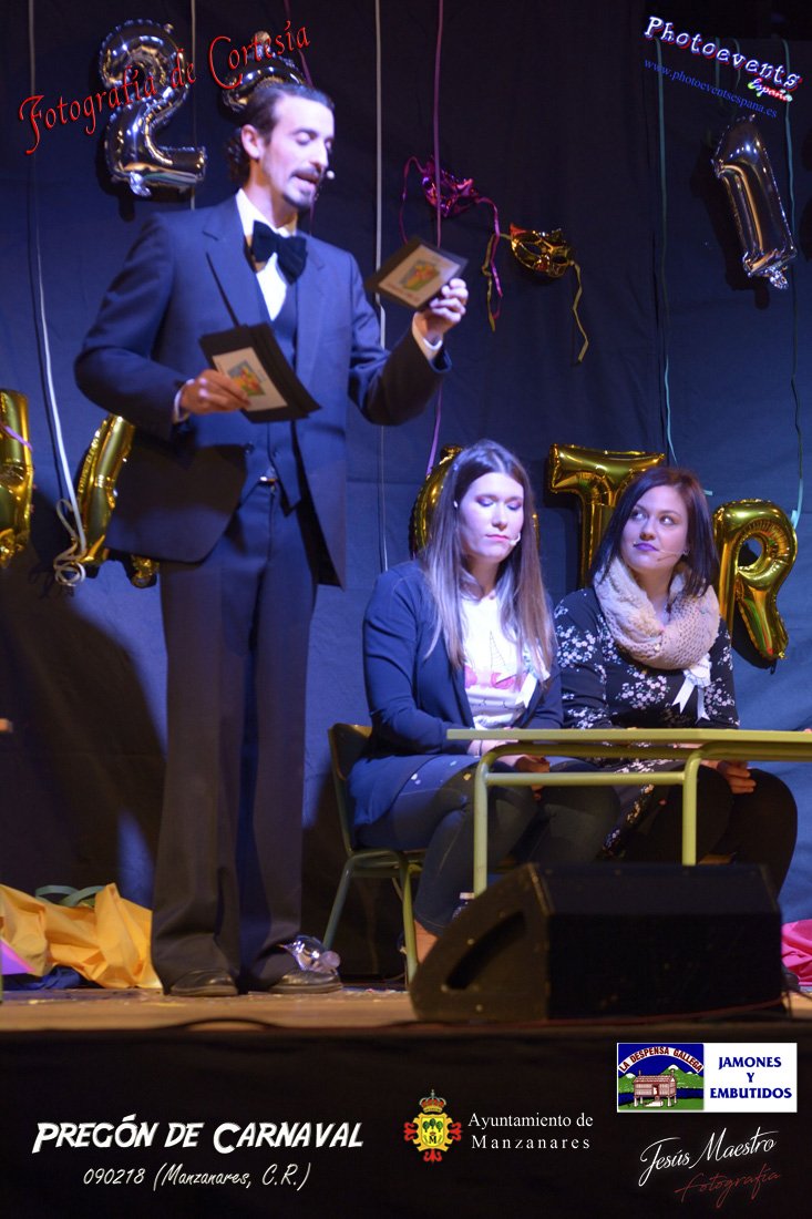 Fotografías realizadas durante el pregón realizado con motivo de los Carnavales en Manzanares, haciendo un guiño al programa televisivo del 1, 2 , 3, en el cual tres generaciones de participantes con tres franjas de edad totalmente distintas, dando comienzo oficialmente los Carnavales 2018 en la localidad de Manzanares, Ciudad Real.