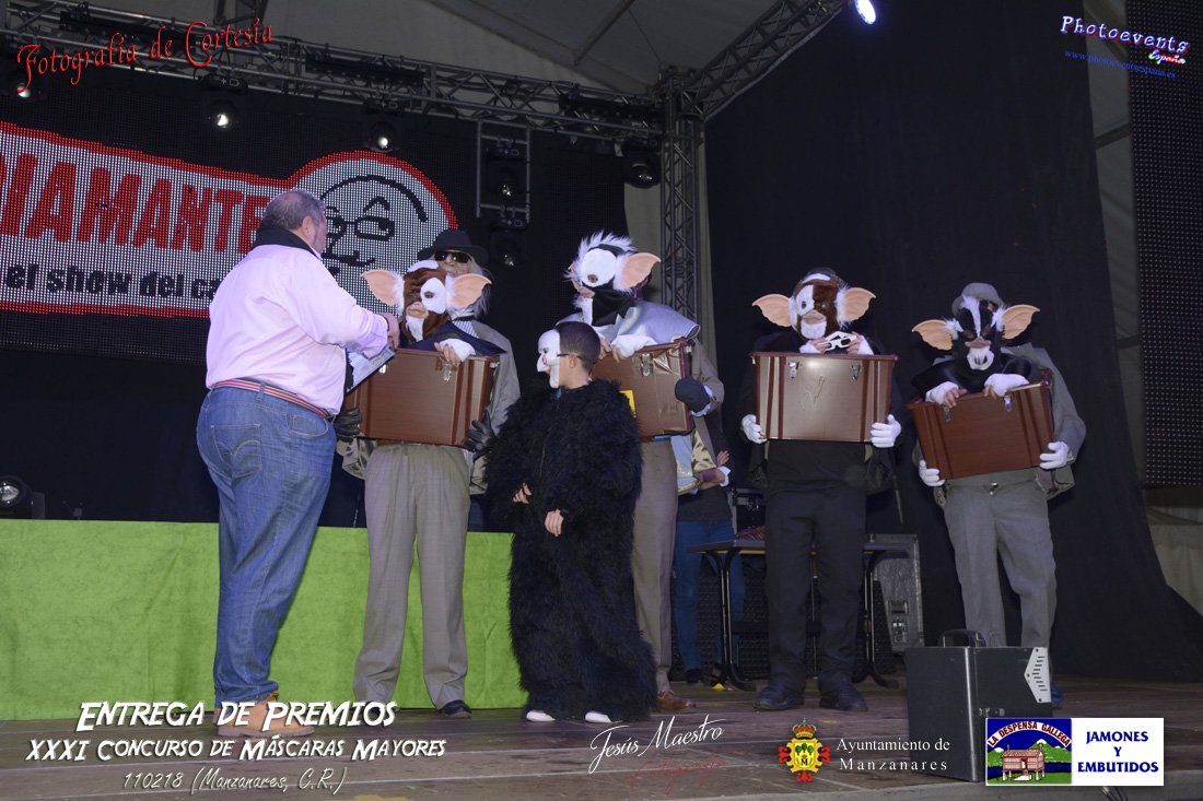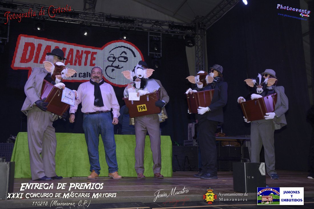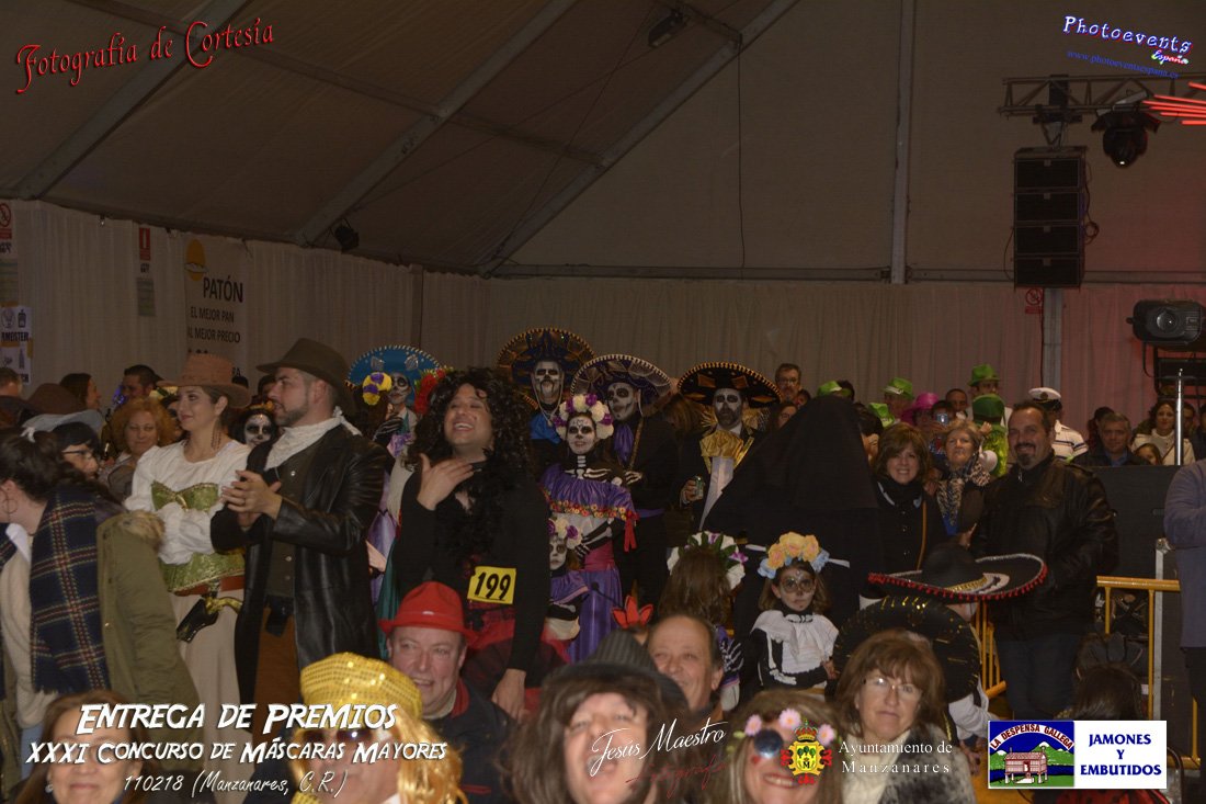 Fotografías realizadas durante la entrega de premios de XXXI concurso de Máscaras Mayores, que tuvo lugar durante la tarde del domingo 11 de de Febrero de 2018. Dicho concurso se realiza con motivo de las fiestas de Carnavales 2018 en la localidad de Manzanares, Ciudad Real.