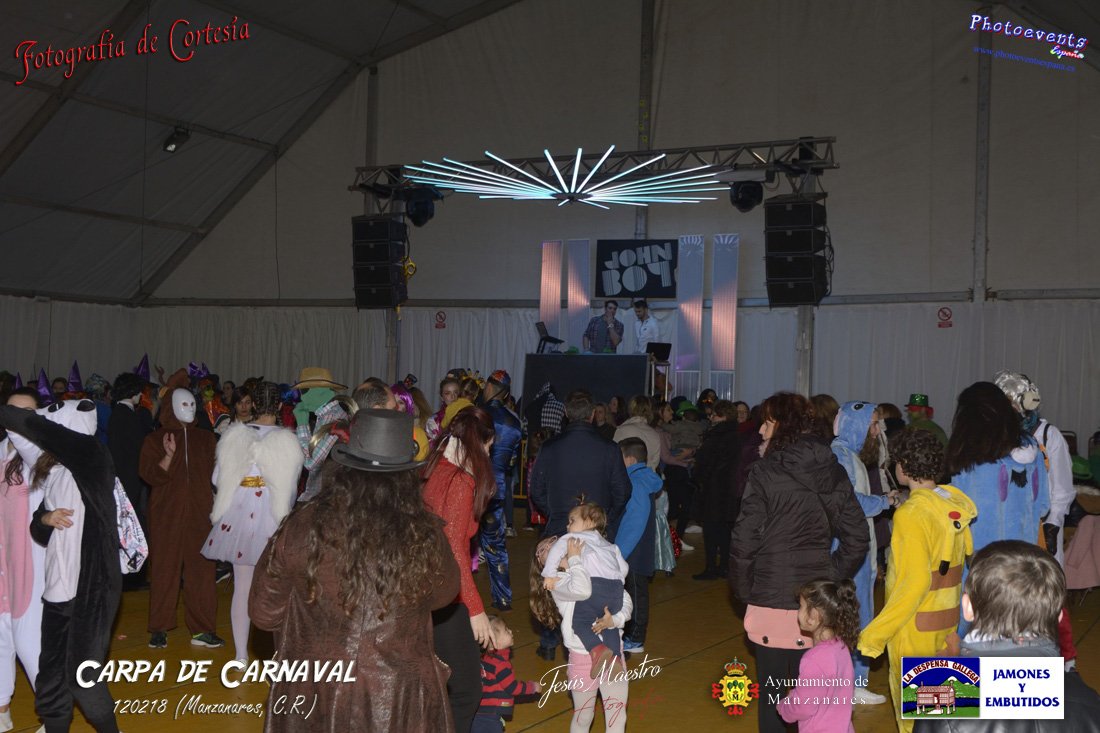 Fotografías realizadas en la Carpa de Carnaval, que con motivo de la suspensión del Concurso Regional de Carrozas y Comparsas, el ayuntamiento ha puesto en funcionamiento con Dj para que la gente pueda disfrutar de la tarde de Carnaval. Con motivo de las fiestas de Carnavales 2018 en la localidad de Manzanares, Ciudad Real.
