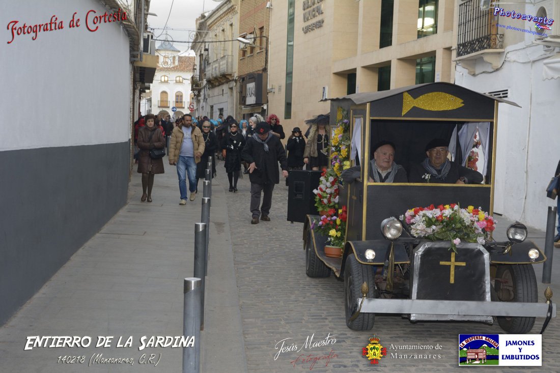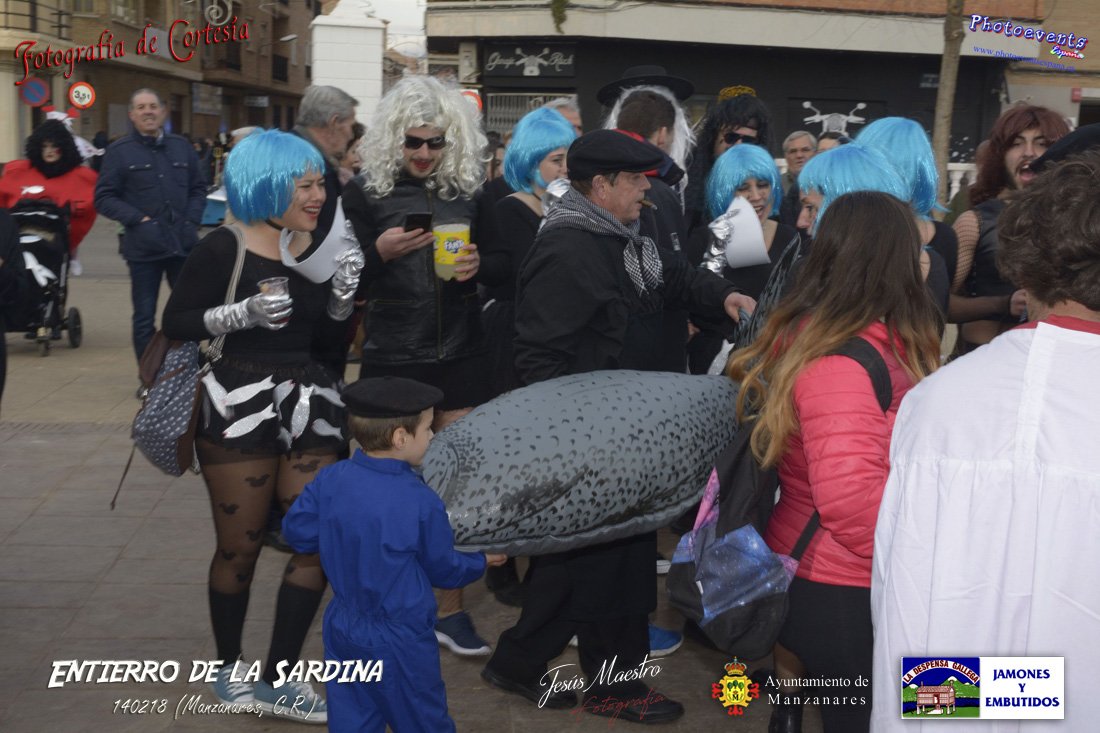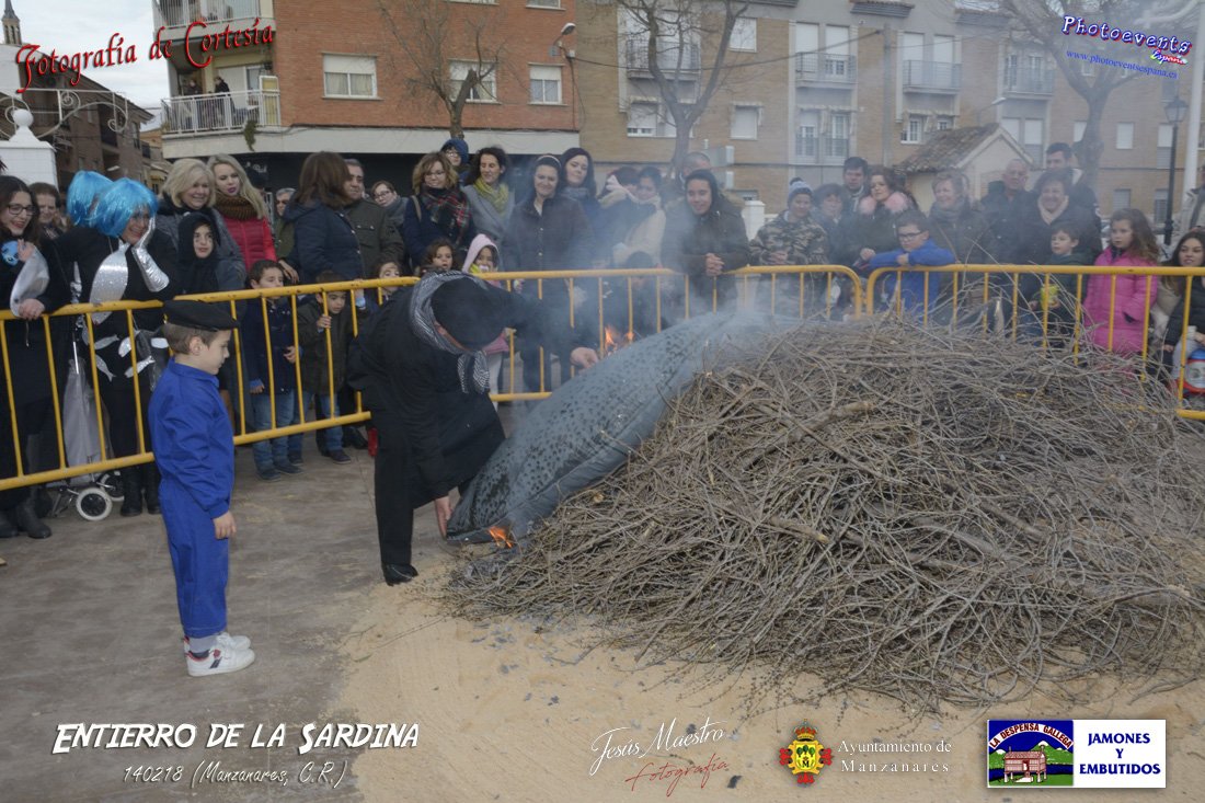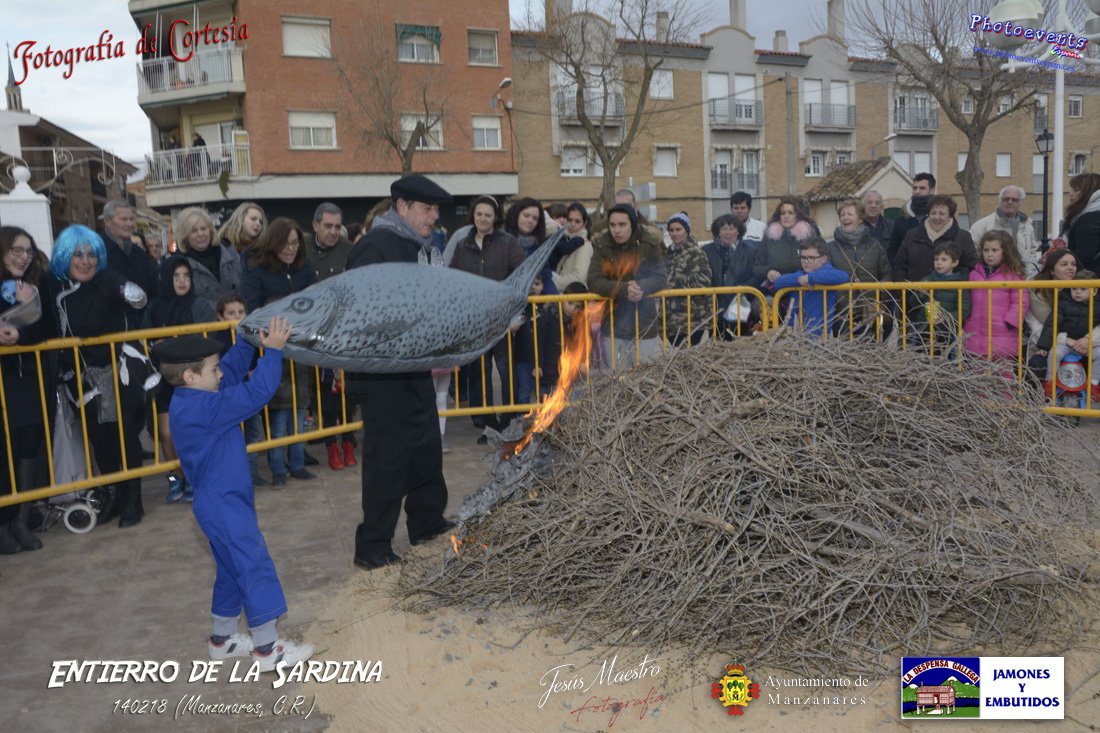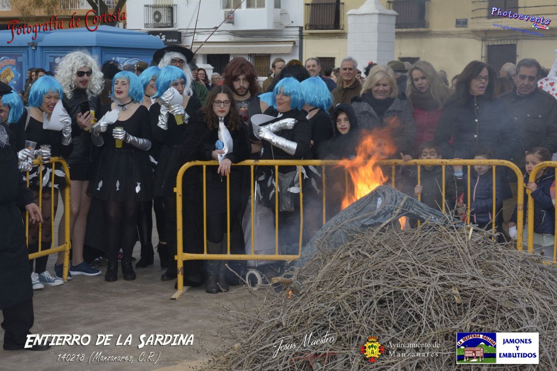 Fotografías realizadas durante la procesión y posterior entierro de la Sardina, recorriendo varias calles de la localidad hasta llegar a las puertas de la carpa municipal para su incineración, a continuación se pudo degustar unas sardinas realizadas con masa dulce. Con motivo de las fiestas de Carnavales 2018 en la localidad de Manzanares, Ciudad Real.