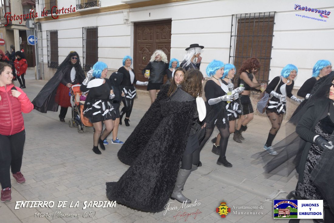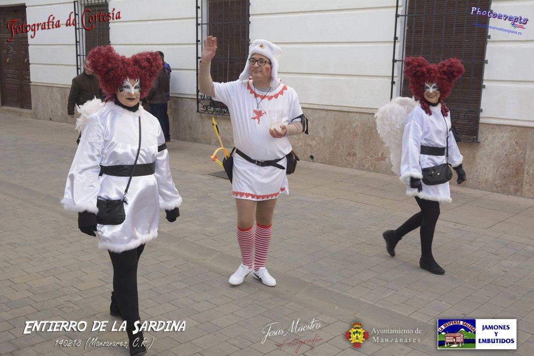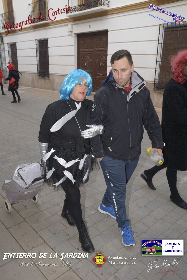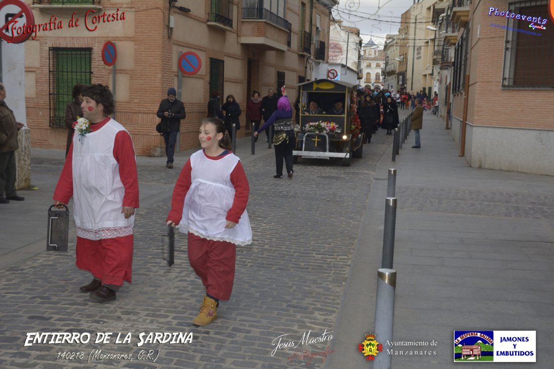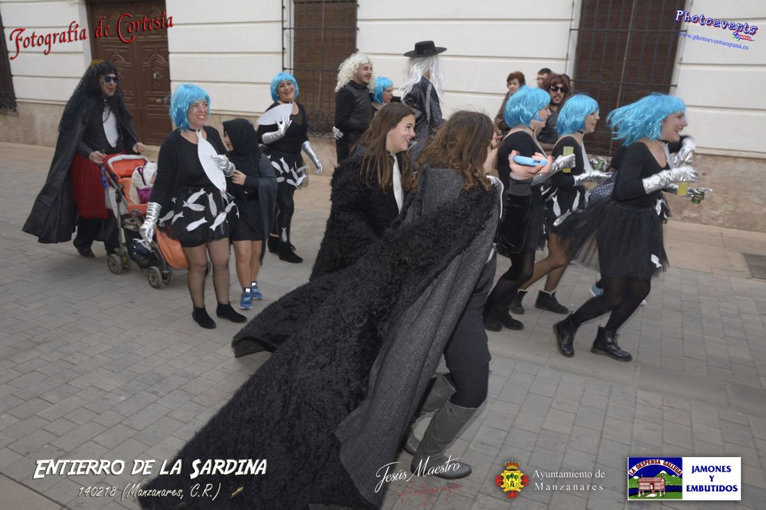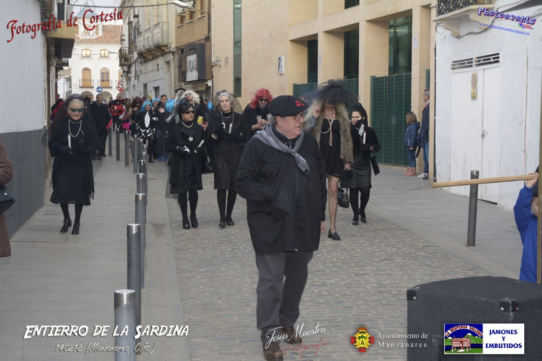 Fotografías realizadas durante la procesión y posterior entierro de la Sardina, recorriendo varias calles de la localidad hasta llegar a las puertas de la carpa municipal para su incineración, a continuación se pudo degustar unas sardinas realizadas con masa dulce. Con motivo de las fiestas de Carnavales 2018 en la localidad de Manzanares, Ciudad Real.