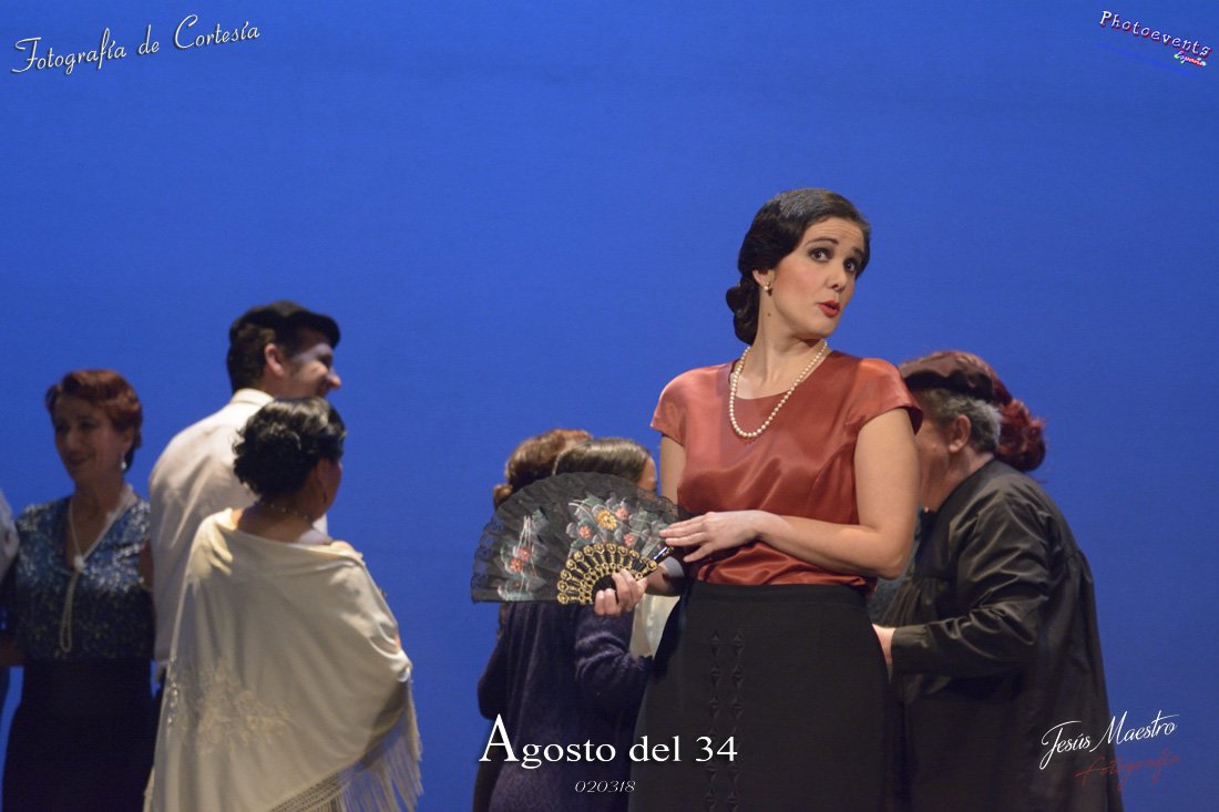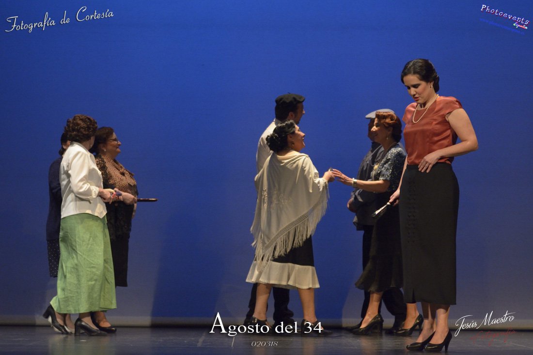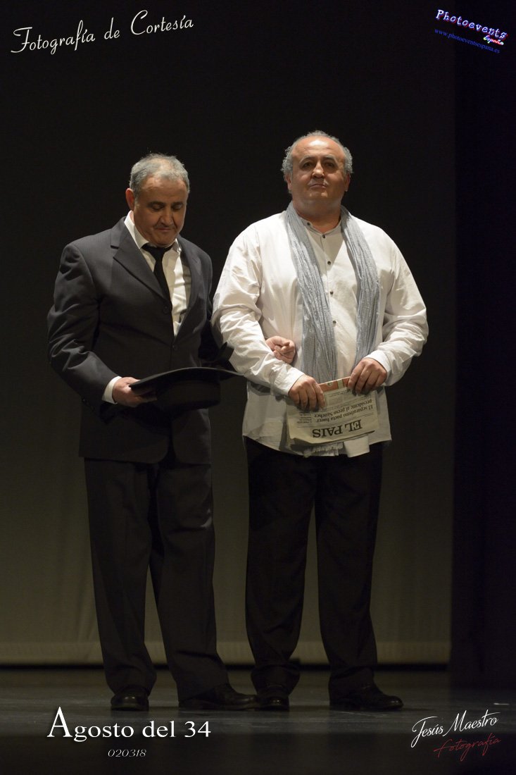 Fotografías realizadas durante el estreno de la obra de teatro Agosto del 34, escrita por Felipe Jerez y dirigida por Juanjo Rodríguez, con la puesta en escena por los grupos de teatro Vaya Cirio, Lazarillo, y la Asociación Músico-Cultural Julián Sánchez-Maroto conjuntamente con alumnado y profesorado de la Universidad Popular. La obra fué representada durante los días 2 y 3 de Marzo en el Gran Teatro de Manzanares ( Ciudad Real).