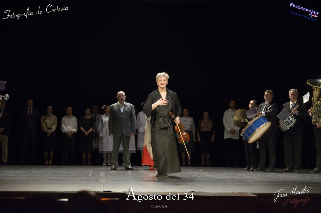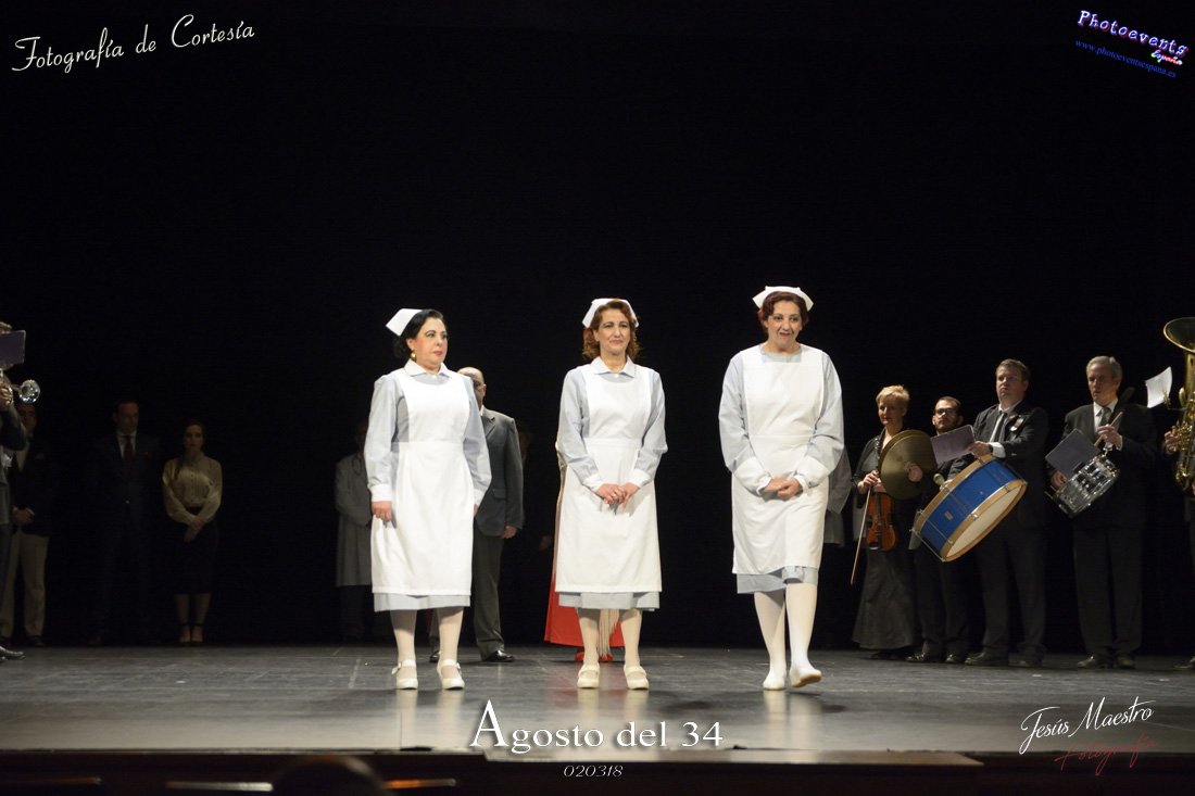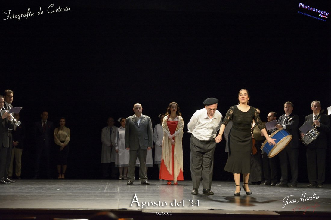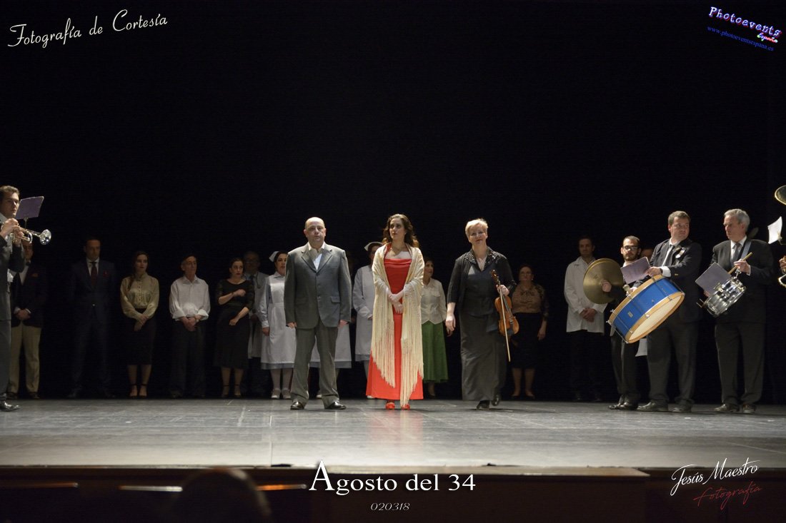 Fotografías realizadas durante el estreno de la obra de teatro Agosto del 34, escrita por Felipe Jerez y dirigida por Juanjo Rodríguez, con la puesta en escena por los grupos de teatro Vaya Cirio, Lazarillo, y la Asociación Músico-Cultural Julián Sánchez-Maroto conjuntamente con alumnado y profesorado de la Universidad Popular. La obra fué representada durante los días 2 y 3 de Marzo en el Gran Teatro de Manzanares ( Ciudad Real).