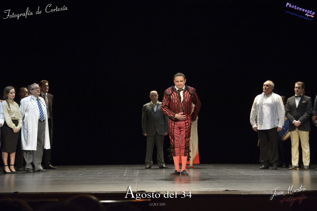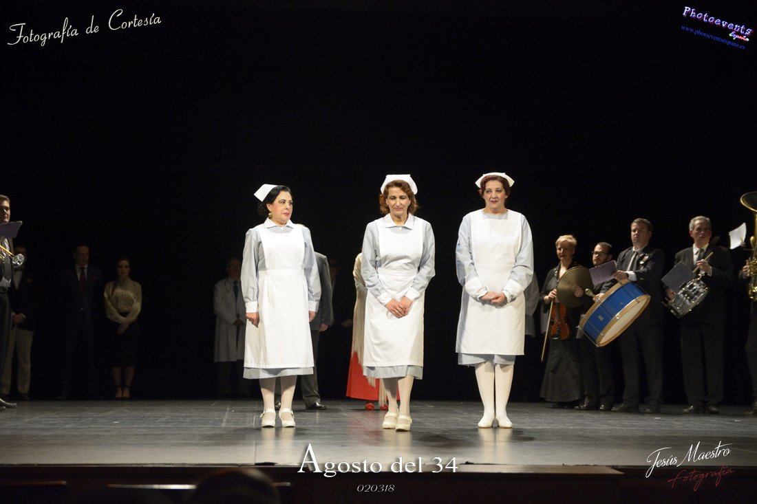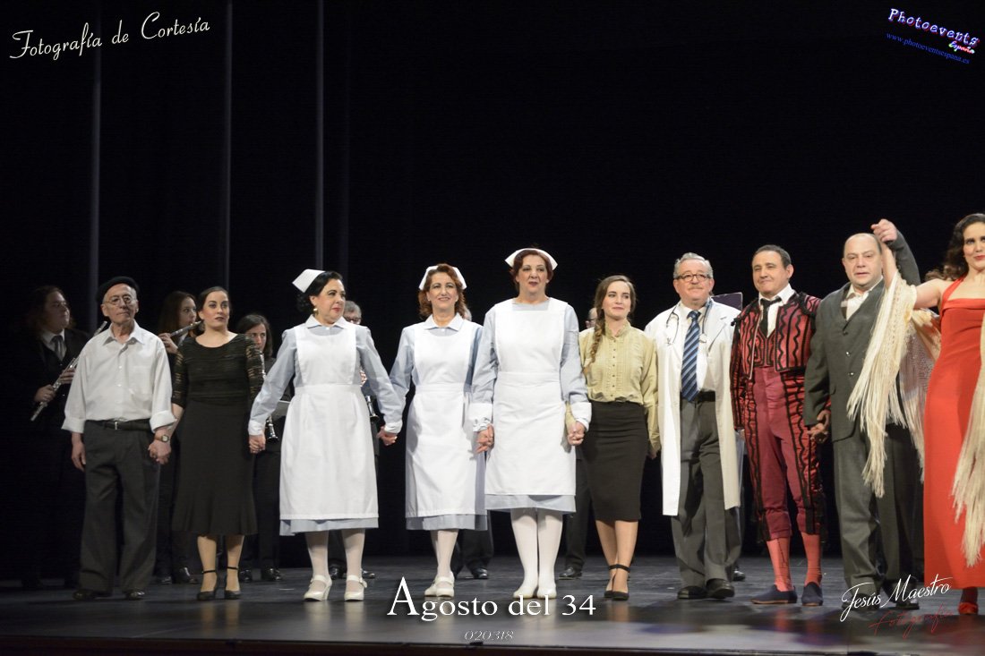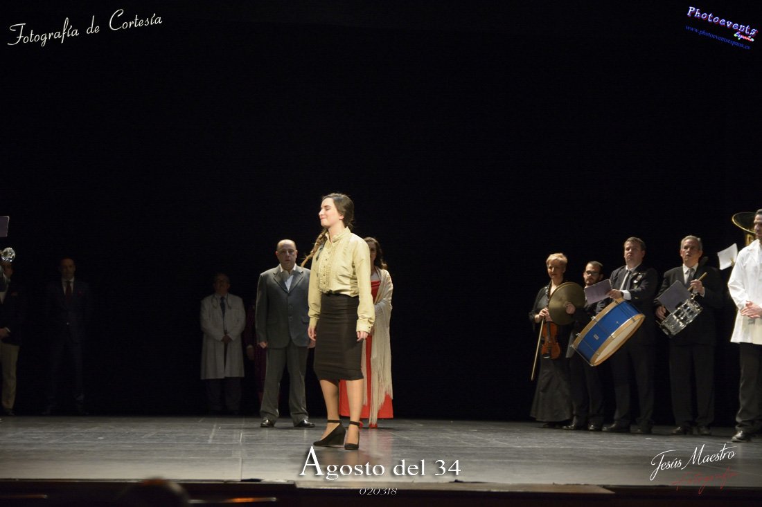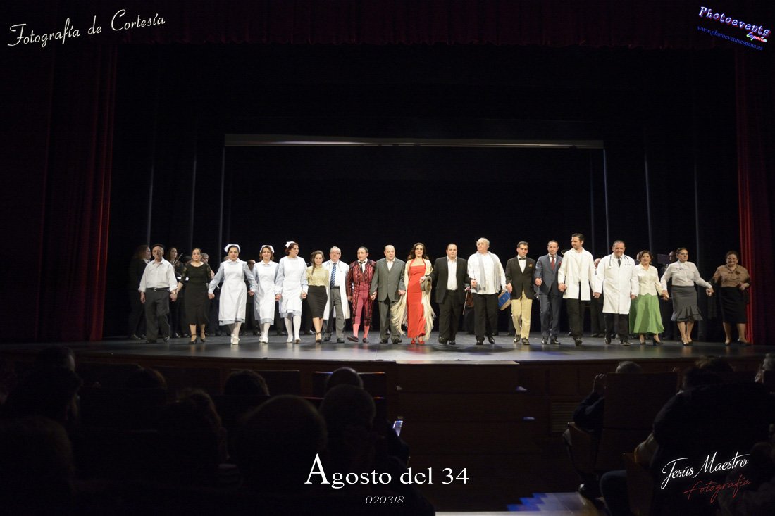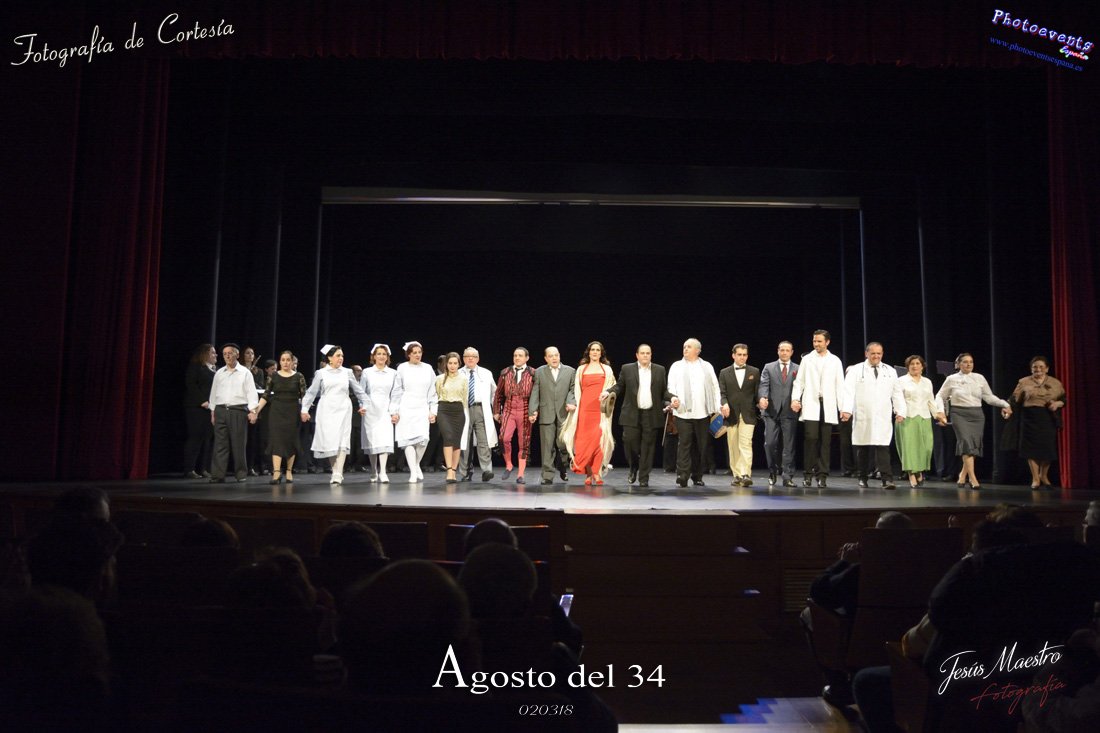 Fotografías realizadas durante el estreno de la obra de teatro Agosto del 34, escrita por Felipe Jerez y dirigida por Juanjo Rodríguez, con la puesta en escena por los grupos de teatro Vaya Cirio, Lazarillo, y la Asociación Músico-Cultural Julián Sánchez-Maroto conjuntamente con alumnado y profesorado de la Universidad Popular. La obra fué representada durante los días 2 y 3 de Marzo en el Gran Teatro de Manzanares ( Ciudad Real).
