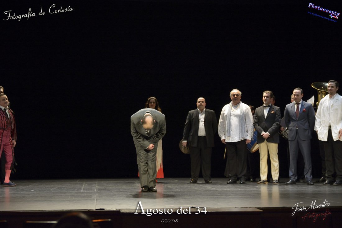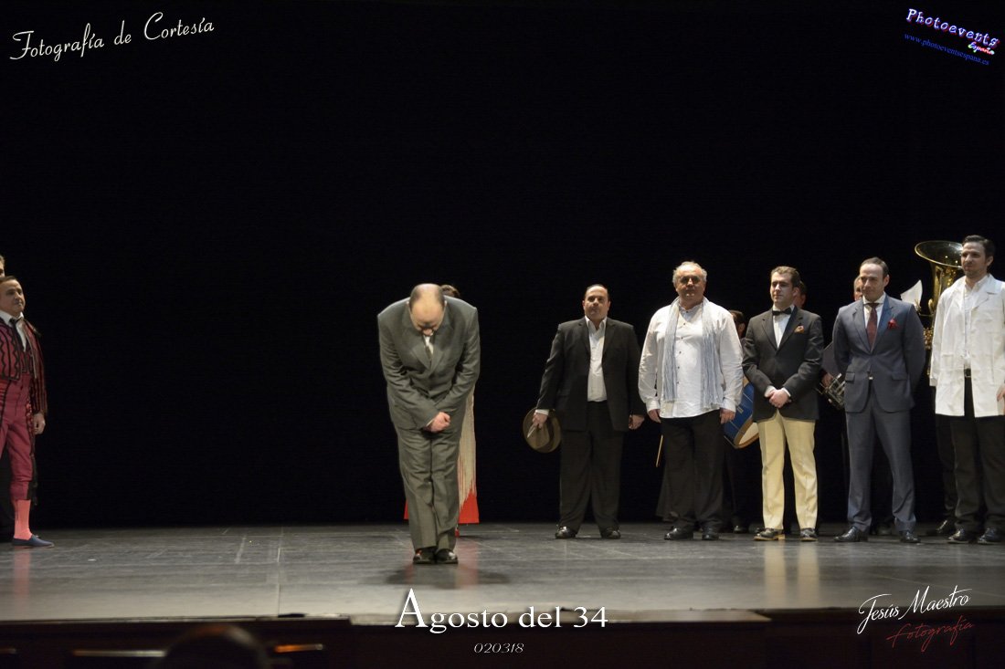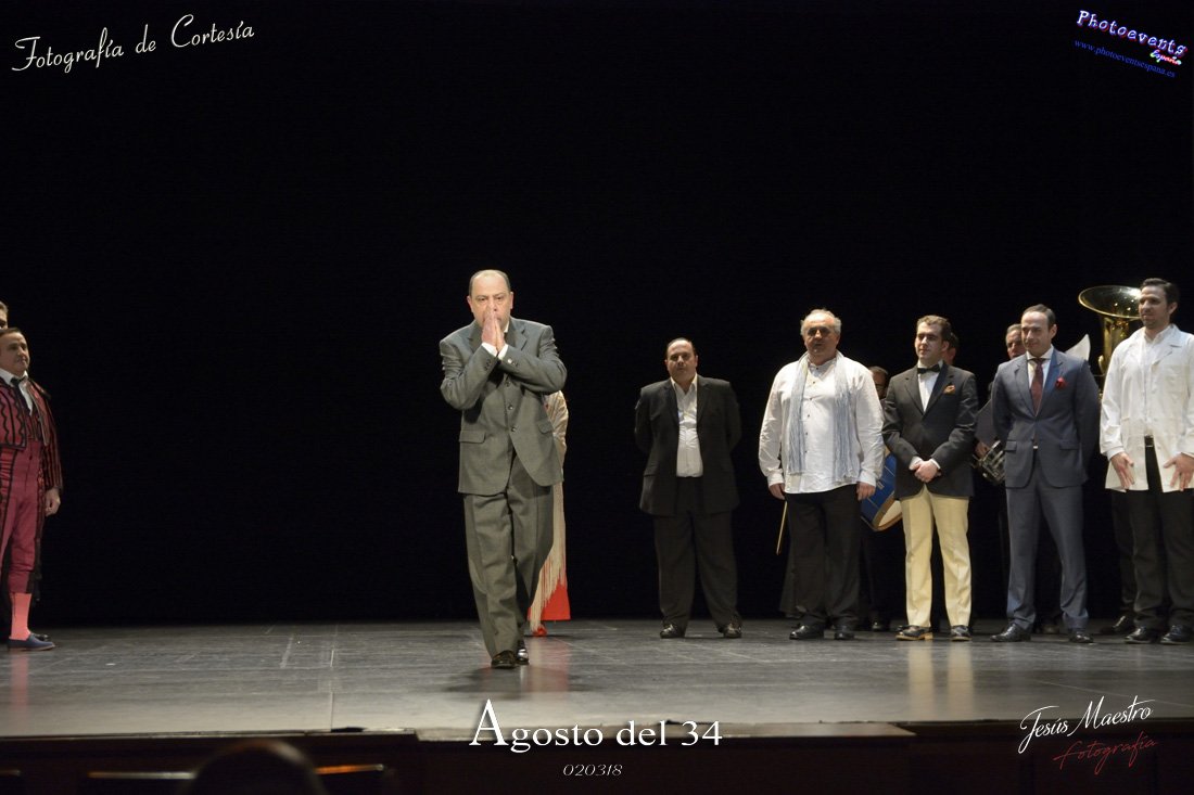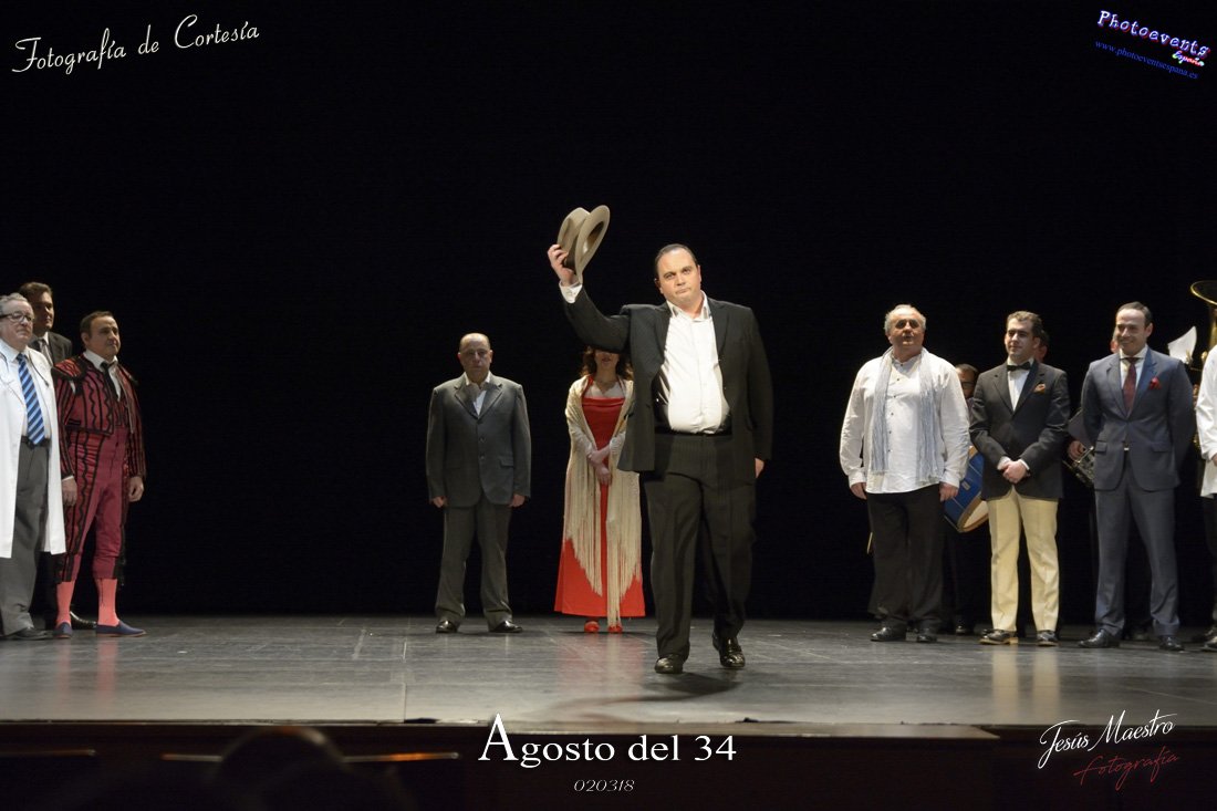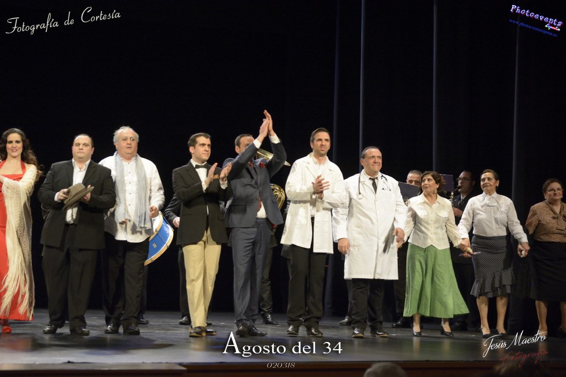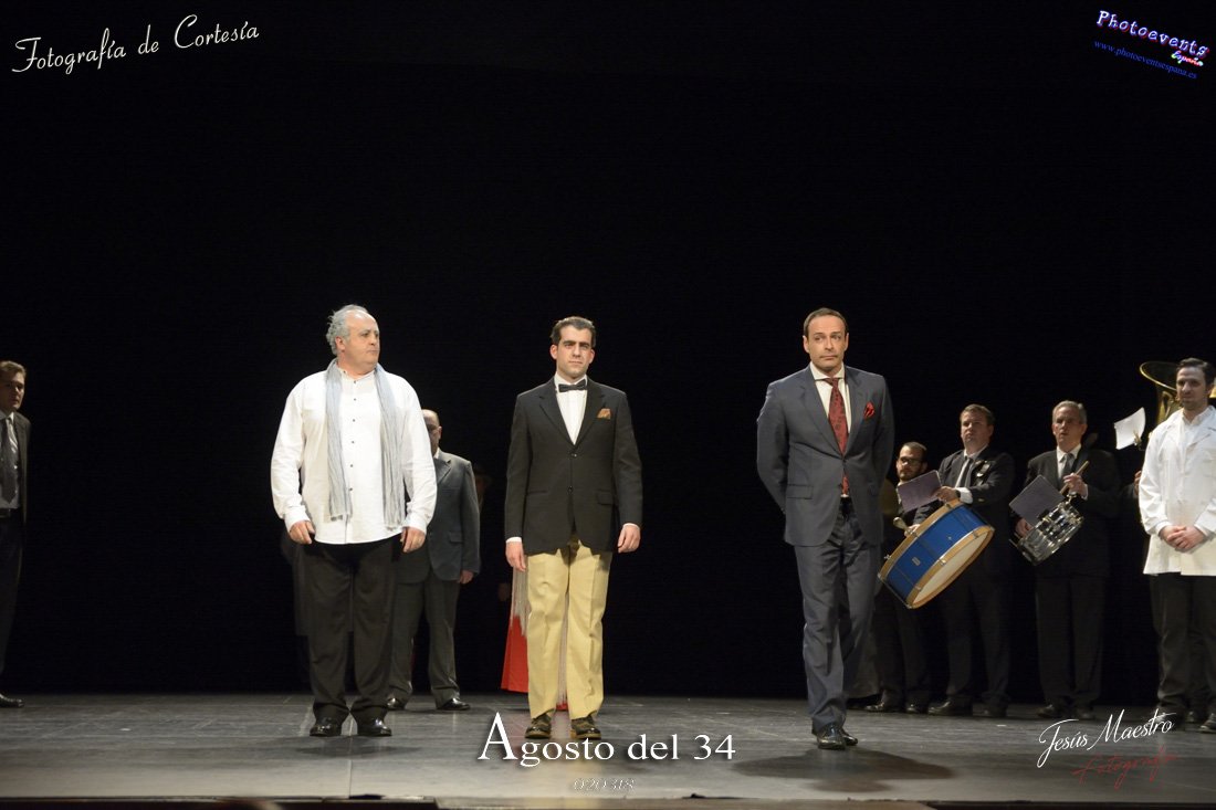 Fotografías realizadas durante el estreno de la obra de teatro Agosto del 34, escrita por Felipe Jerez y dirigida por Juanjo Rodríguez, con la puesta en escena por los grupos de teatro Vaya Cirio, Lazarillo, y la Asociación Músico-Cultural Julián Sánchez-Maroto conjuntamente con alumnado y profesorado de la Universidad Popular. La obra fué representada durante los días 2 y 3 de Marzo en el Gran Teatro de Manzanares ( Ciudad Real).
