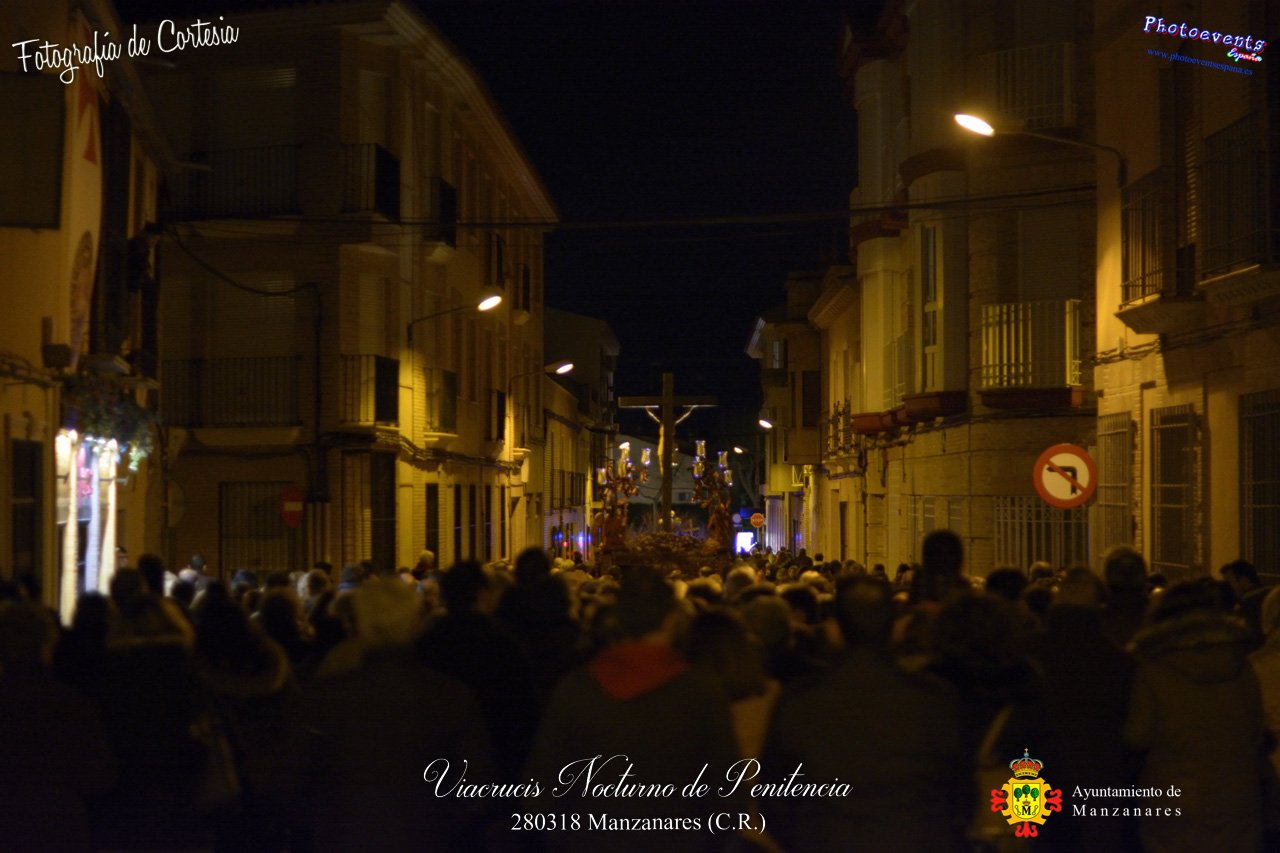 Fotografías realizadas al comienzo del Viacrucis nocturno que ha tenido lugar el miercoles 280318, con motivo de los actos a celebrar durante la Semana Santa en la localidad de Manzanares , Ciudad Real.