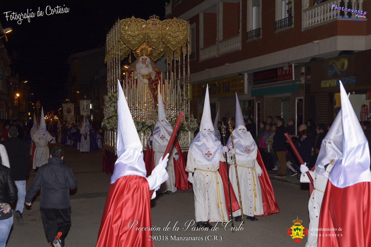 Fotografías realizadas durante la procesión de la Pasión de Cristo que ha tenido lugar el jueves 290318, con motivo de los actos a celebrar durante la Semana Santa en la localidad de Manzanares , Ciudad Real.