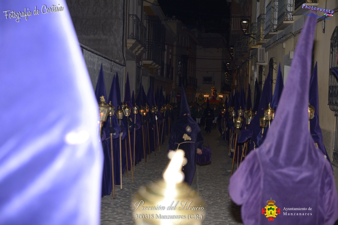 Fotografías realizadas durante la procesión del Silencio que ha tenido lugar el viernes 300318, con motivo de los actos a celebrar durante la Semana Santa en la localidad de Manzanares , Ciudad Real.