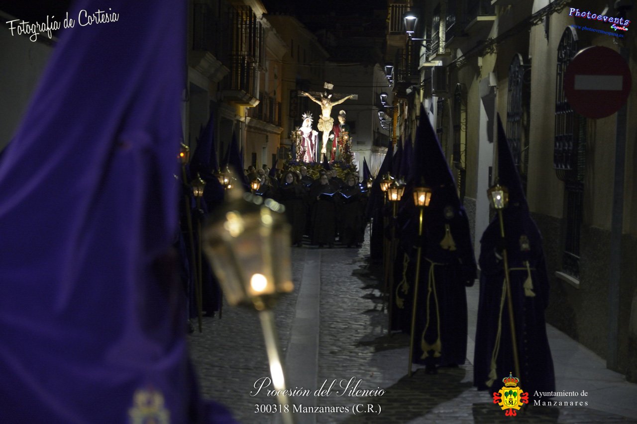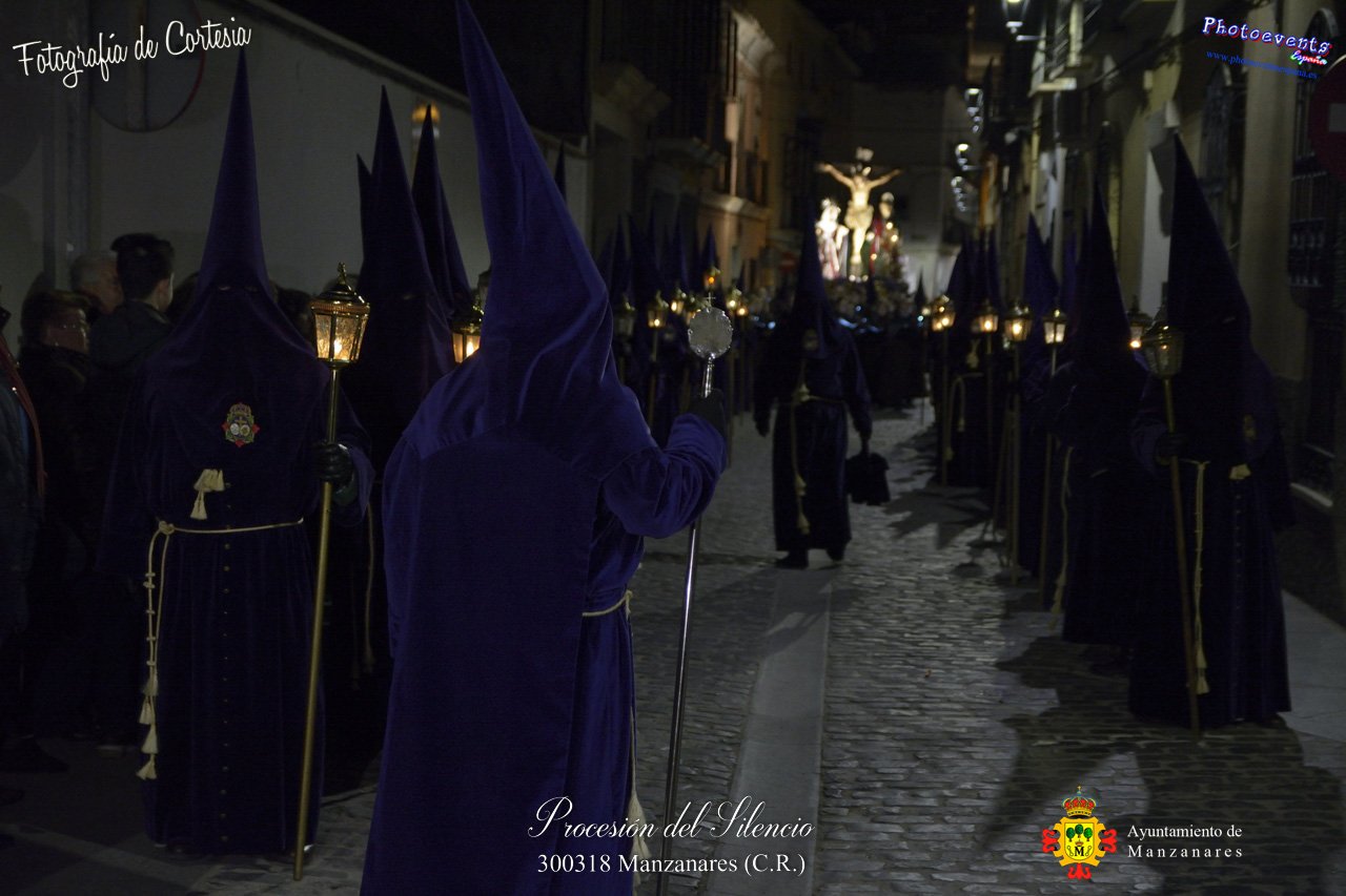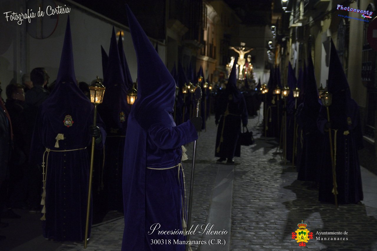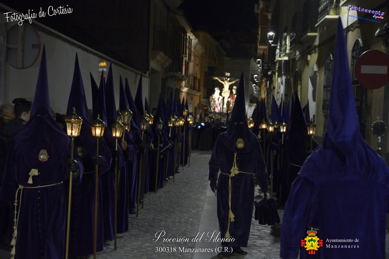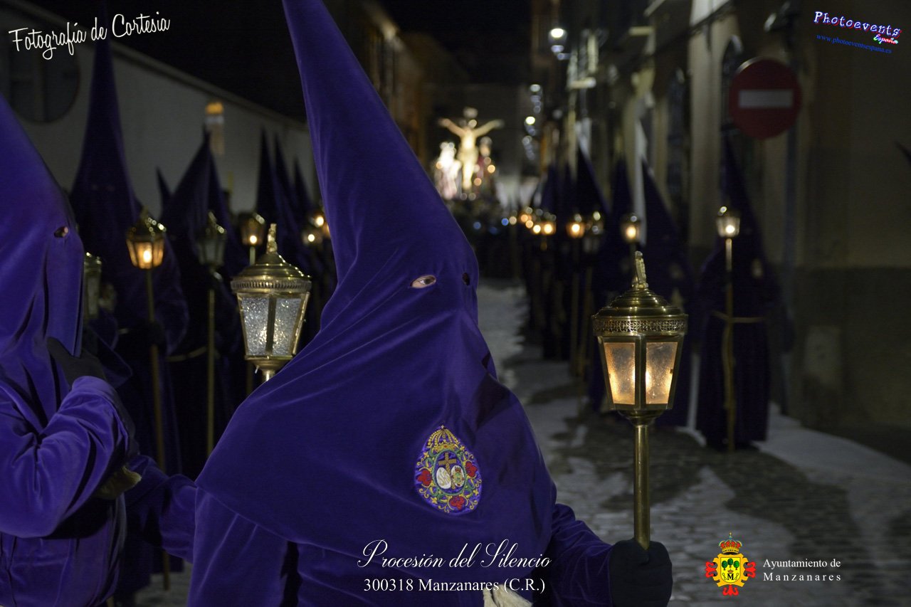 Fotografías realizadas durante la procesión del Silencio que ha tenido lugar el viernes 300318, con motivo de los actos a celebrar durante la Semana Santa en la localidad de Manzanares , Ciudad Real.