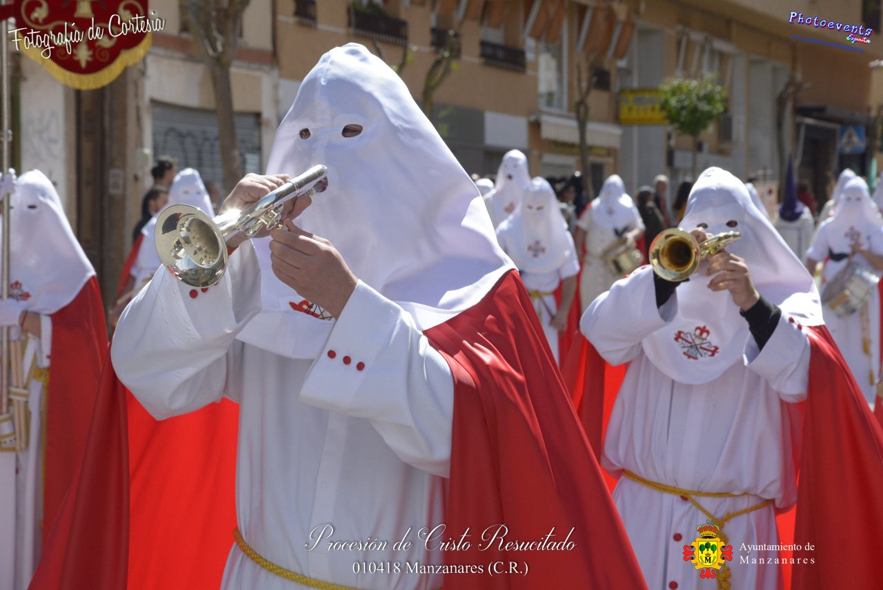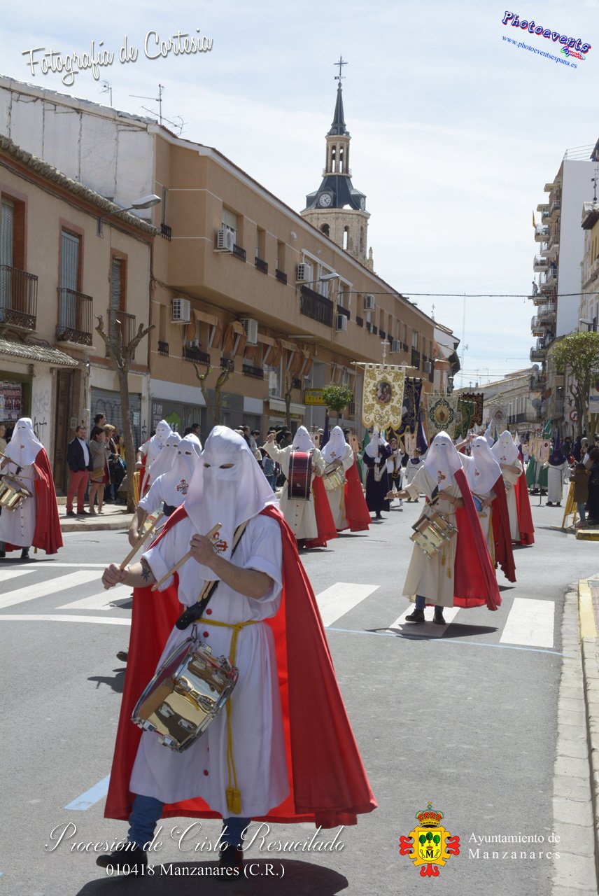 Fotografías realizadas durante la procesión de Cristo Resucitado que ha tenido lugar el Domingo 010418, con motivo de los actos a celebrar durante la Semana Santa en la localidad de Manzanares , Ciudad Real.