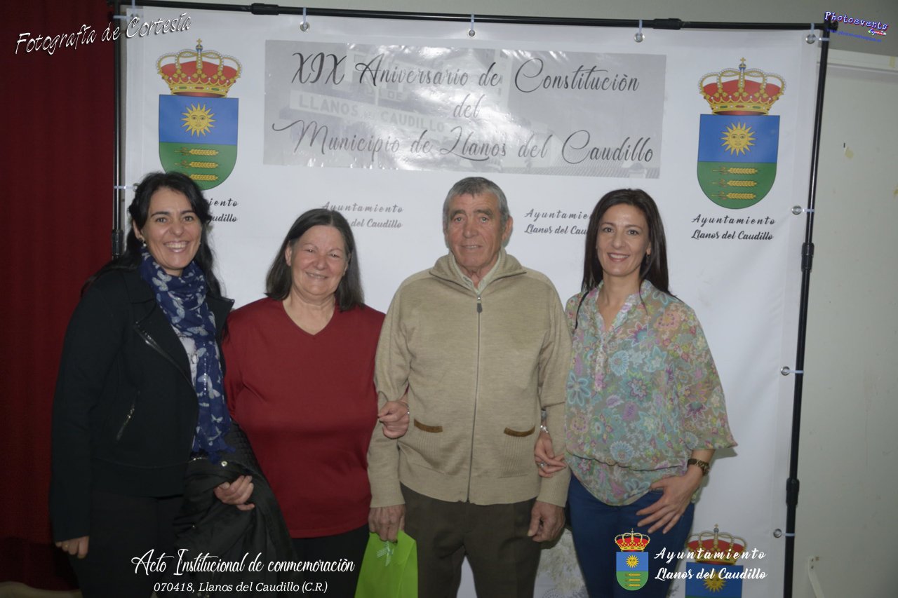 Fotografías realizadas con motivo de la celebración del XIX aniversario de Constitución del Municipio de Llanos del Caudillo, donde se ha reconocido a Vicenta Gonzalez Velez por su colaboración activa con la localidad mediante sus poesías, tambien se ha homenajeado a las distintas personas que durante el 2017 cumplieron los 65 años en el municipio. Posteriormente dijo unas palabras D. Carlos Martín de la Leona (Diputado Provincial), cerrando el acto institucional D. Andres A. Arroyo (Alcalde de Llanos), posteriormente se pudo degustar zurra, paella, caldereta de cordero y mucho mas.