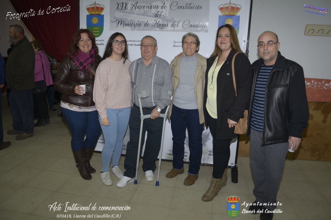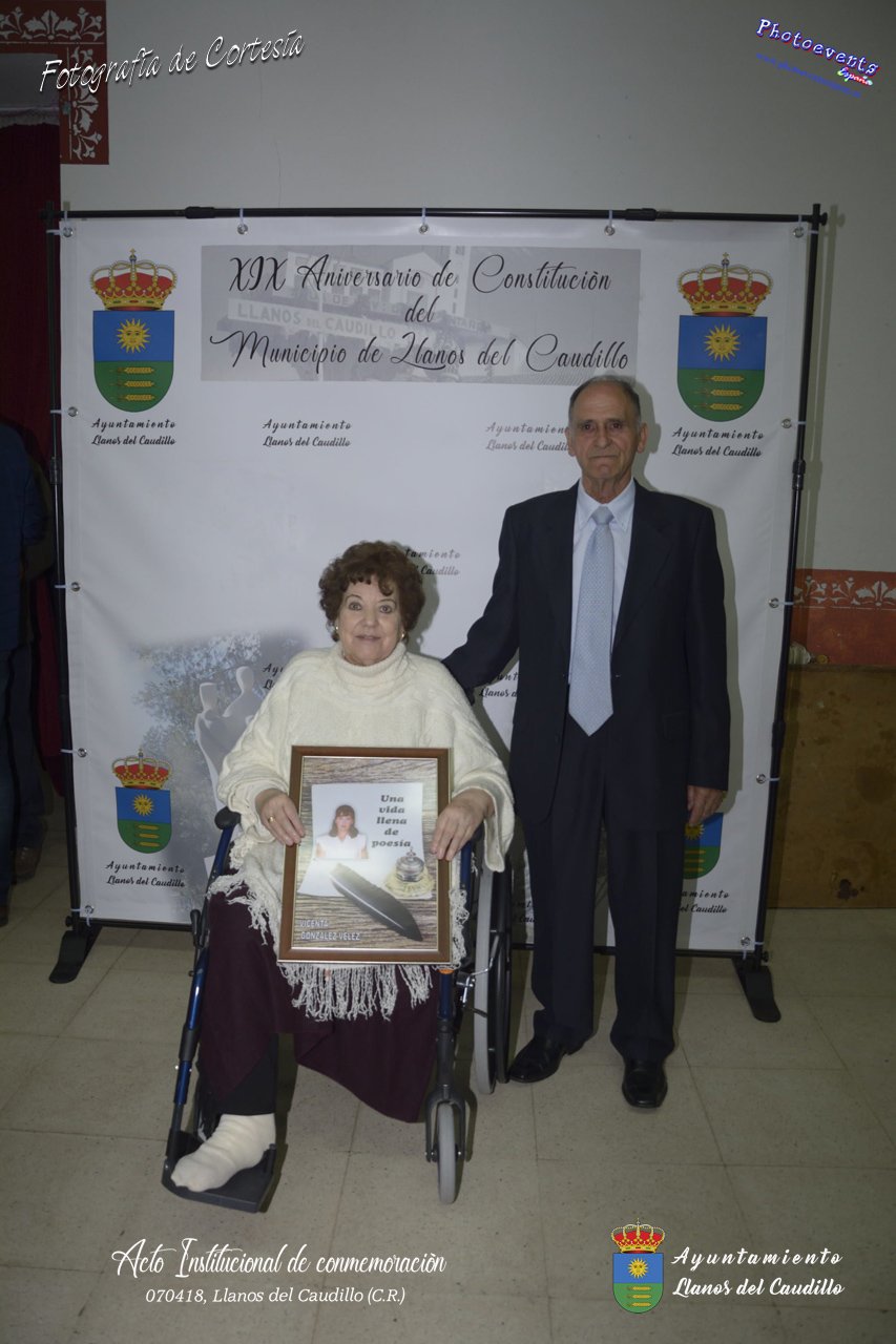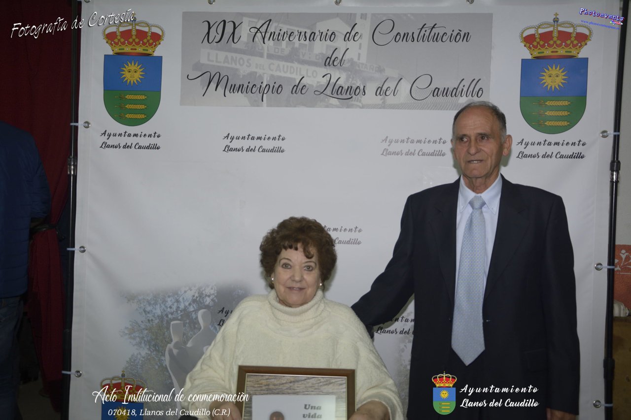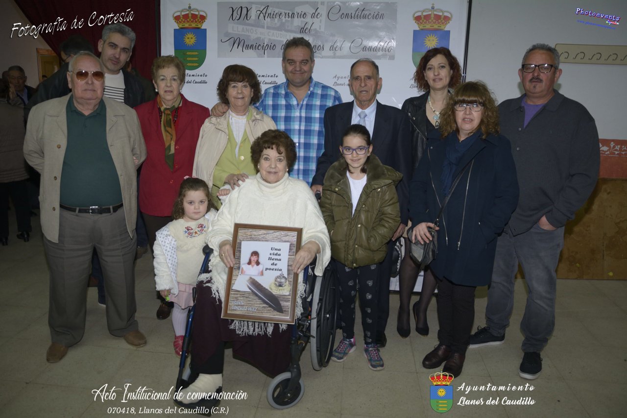 Fotografías realizadas con motivo de la celebración del XIX aniversario de Constitución del Municipio de Llanos del Caudillo, donde se ha reconocido a Vicenta Gonzalez Velez por su colaboración activa con la localidad mediante sus poesías, tambien se ha homenajeado a las distintas personas que durante el 2017 cumplieron los 65 años en el municipio. Posteriormente dijo unas palabras D. Carlos Martín de la Leona (Diputado Provincial), cerrando el acto institucional D. Andres A. Arroyo (Alcalde de Llanos), posteriormente se pudo degustar zurra, paella, caldereta de cordero y mucho mas.