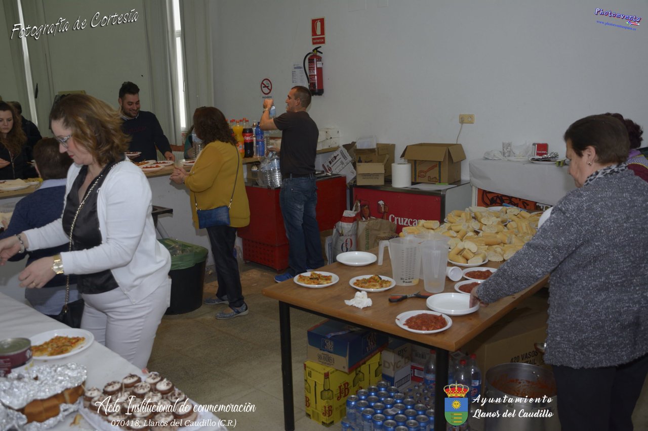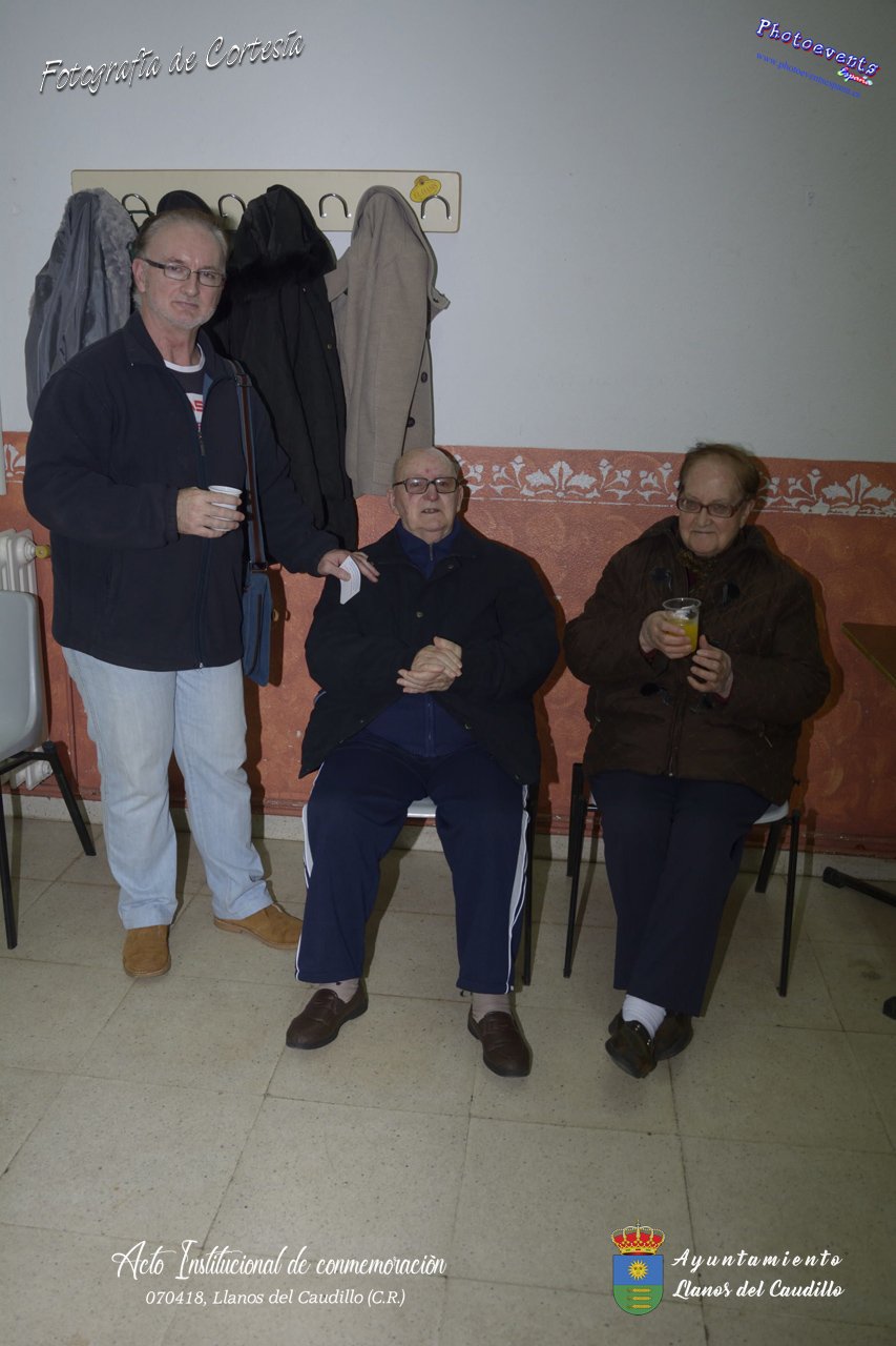 Fotografías realizadas con motivo de la celebración del XIX aniversario de Constitución del Municipio de Llanos del Caudillo, donde se ha reconocido a Vicenta Gonzalez Velez por su colaboración activa con la localidad mediante sus poesías, tambien se ha homenajeado a las distintas personas que durante el 2017 cumplieron los 65 años en el municipio. Posteriormente dijo unas palabras D. Carlos Martín de la Leona (Diputado Provincial), cerrando el acto institucional D. Andres A. Arroyo (Alcalde de Llanos), posteriormente se pudo degustar zurra, paella, caldereta de cordero y mucho mas.