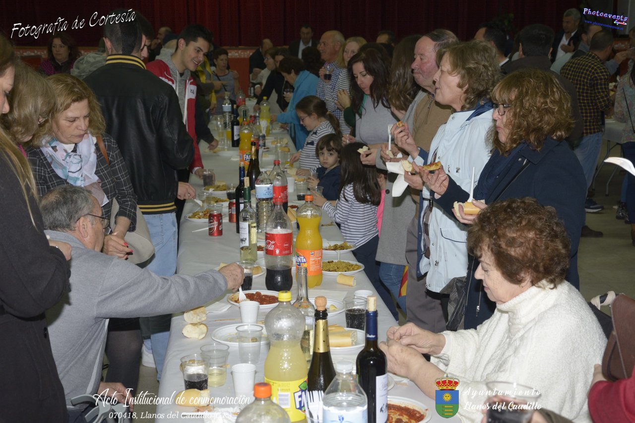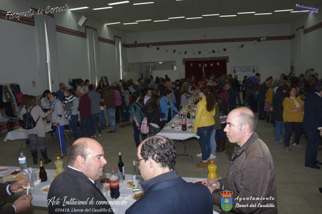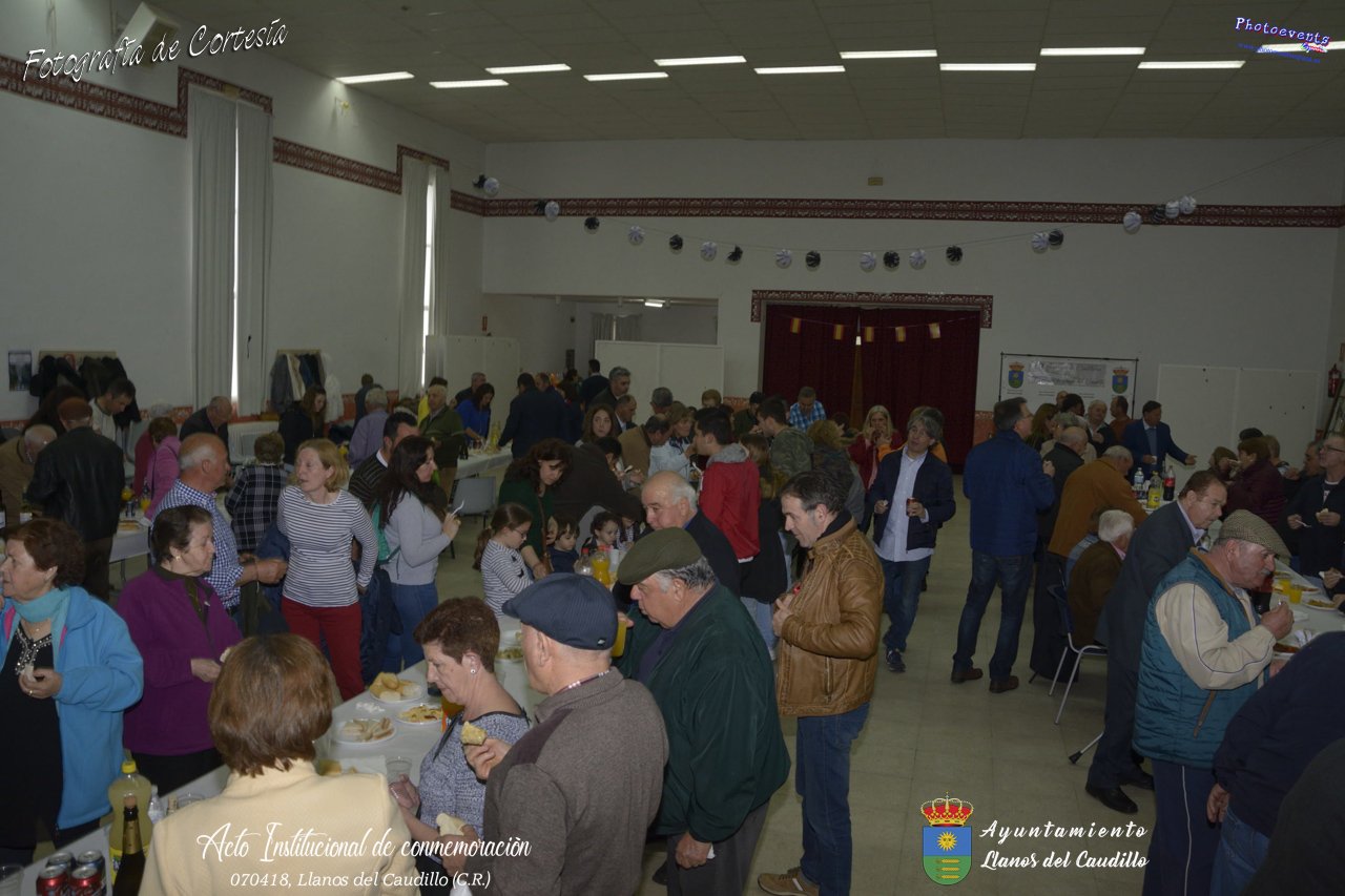 Fotografías realizadas con motivo de la celebración del XIX aniversario de Constitución del Municipio de Llanos del Caudillo, donde se ha reconocido a Vicenta Gonzalez Velez por su colaboración activa con la localidad mediante sus poesías, tambien se ha homenajeado a las distintas personas que durante el 2017 cumplieron los 65 años en el municipio. Posteriormente dijo unas palabras D. Carlos Martín de la Leona (Diputado Provincial), cerrando el acto institucional D. Andres A. Arroyo (Alcalde de Llanos), posteriormente se pudo degustar zurra, paella, caldereta de cordero y mucho mas.