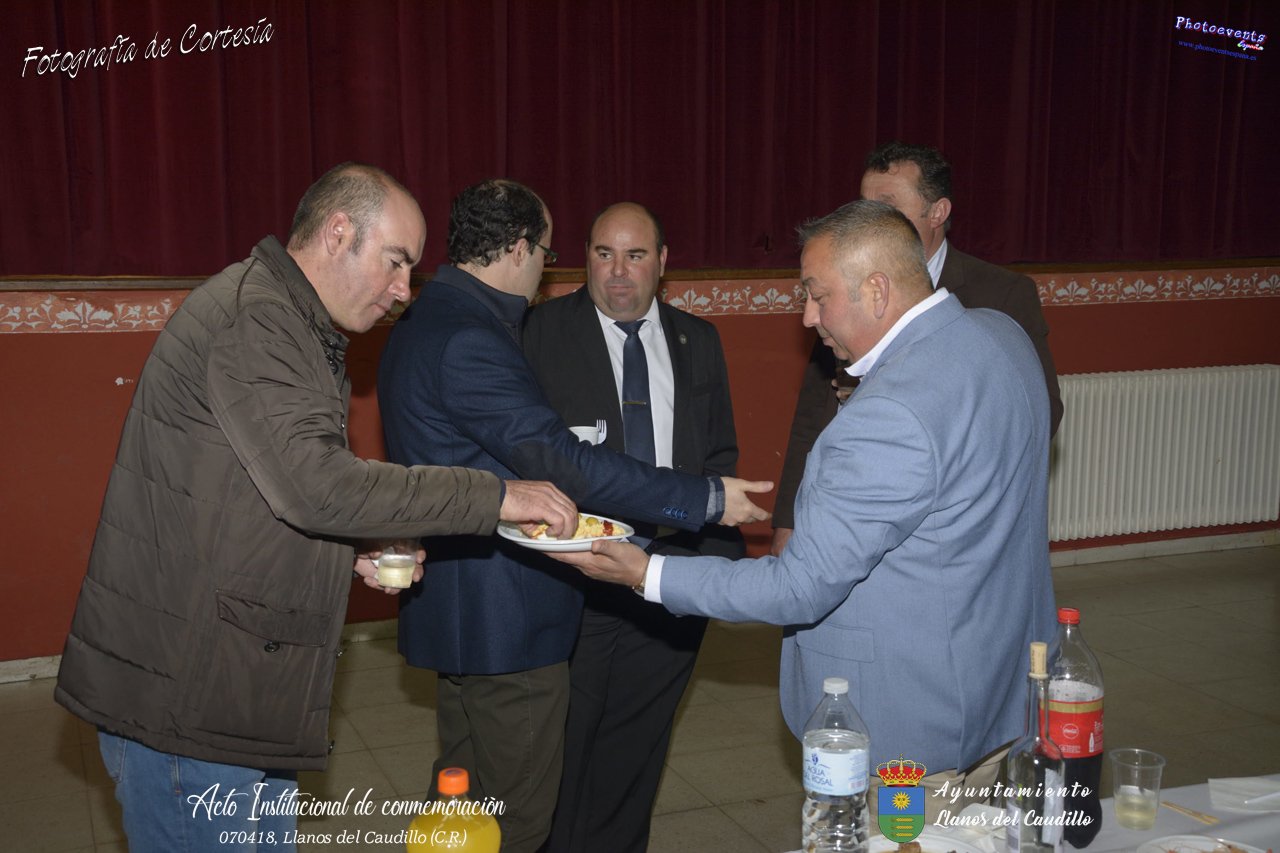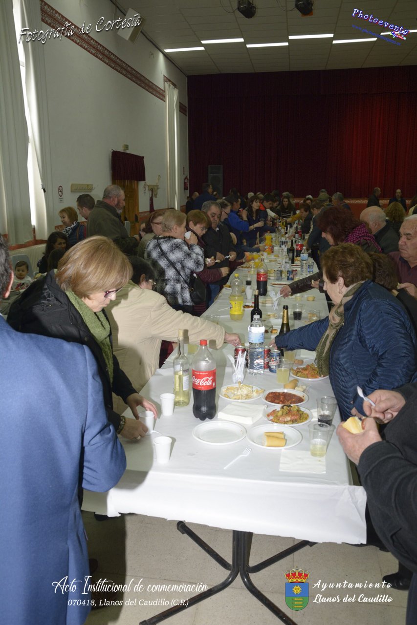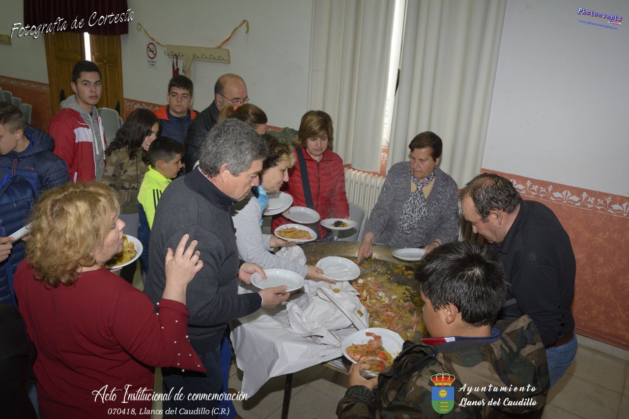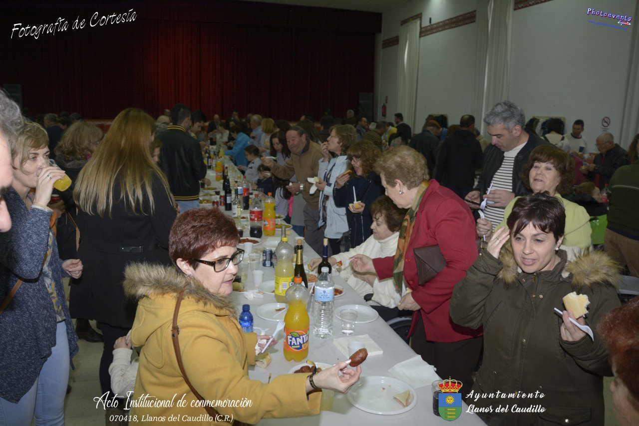 Fotografías realizadas con motivo de la celebración del XIX aniversario de Constitución del Municipio de Llanos del Caudillo, donde se ha reconocido a Vicenta Gonzalez Velez por su colaboración activa con la localidad mediante sus poesías, tambien se ha homenajeado a las distintas personas que durante el 2017 cumplieron los 65 años en el municipio. Posteriormente dijo unas palabras D. Carlos Martín de la Leona (Diputado Provincial), cerrando el acto institucional D. Andres A. Arroyo (Alcalde de Llanos), posteriormente se pudo degustar zurra, paella, caldereta de cordero y mucho mas.