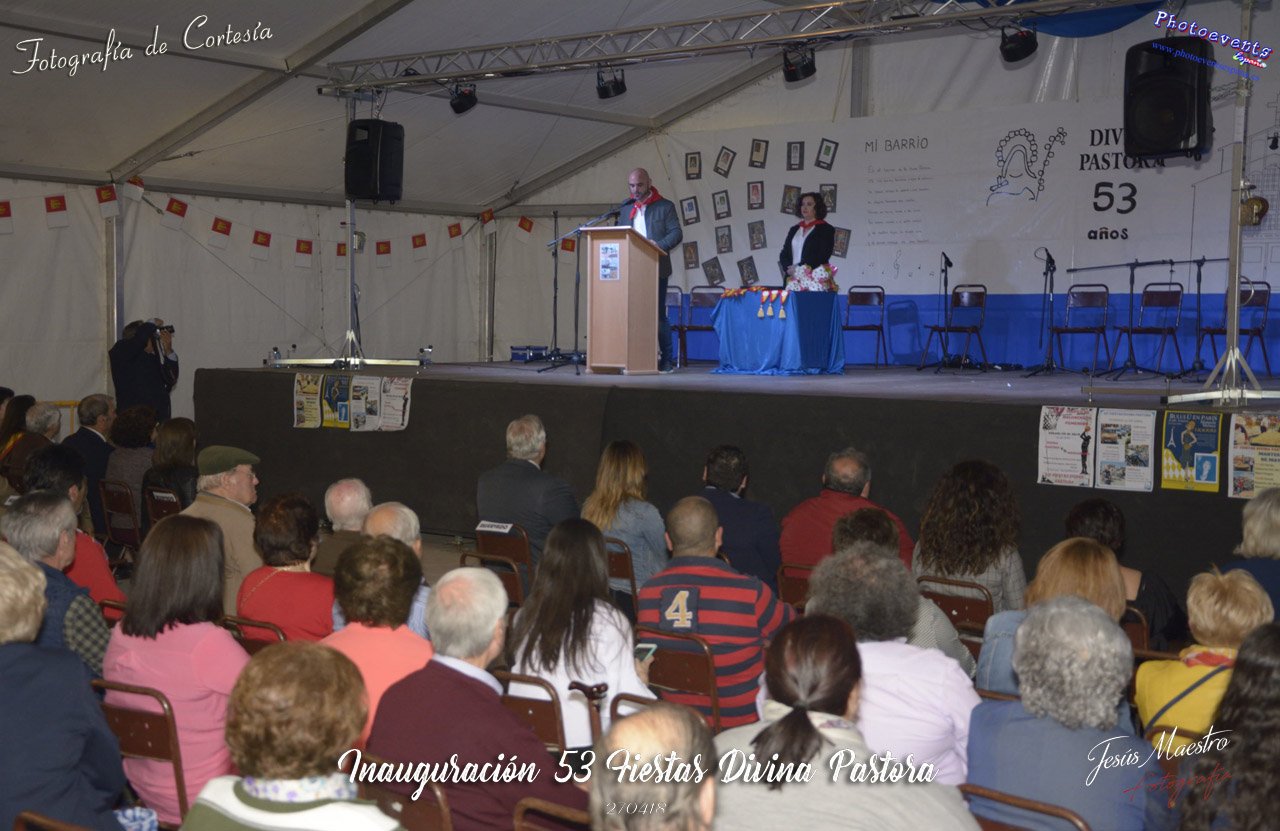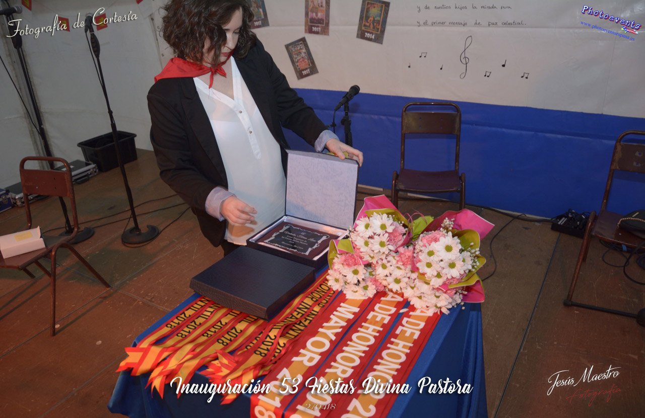 Fotografías realizadas durante el acto de inauguración de las 53 edición de las Fiestas Divina Pastora, siendo encargada de dar el pregón este año Dña. Virtudes Torres, escritora y vecina del barrio. Una vez terminado este se procedio con la entrega de placas y reconocimientos a empresas y personas del barrio, pasando despues al nombramiento de los nuevos pastorcillos, pastorcillas y terminando con la proclamación de la Pastora Mayor. Dicho acto tenía lugar la tarde del pasado día 27 de Abril en la plaza de la Divina Pastora, en la localidad de Manzanares, Ciudad Real.