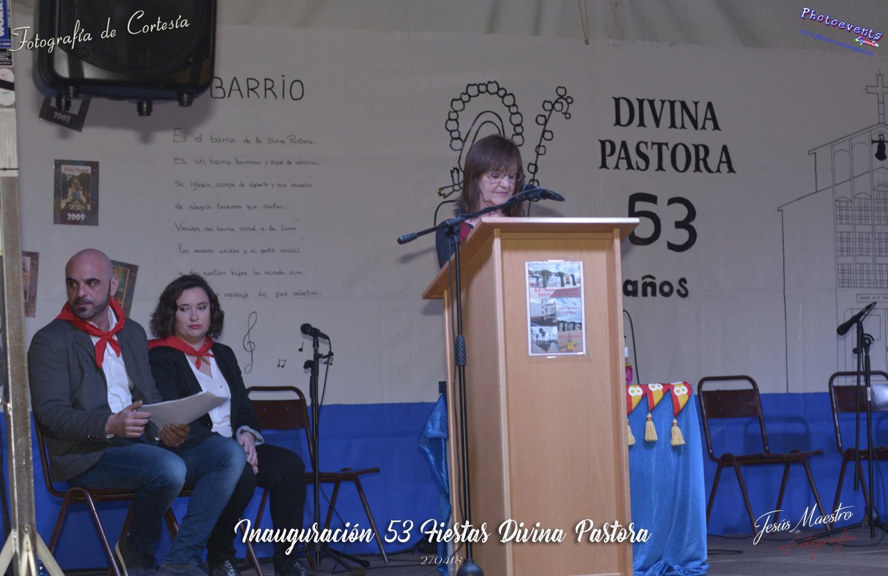Fotografías realizadas durante el acto de inauguración de las 53 edición de las Fiestas Divina Pastora, siendo encargada de dar el pregón este año Dña. Virtudes Torres, escritora y vecina del barrio. Una vez terminado este se procedio con la entrega de placas y reconocimientos a empresas y personas del barrio, pasando despues al nombramiento de los nuevos pastorcillos, pastorcillas y terminando con la proclamación de la Pastora Mayor. Dicho acto tenía lugar la tarde del pasado día 27 de Abril en la plaza de la Divina Pastora, en la localidad de Manzanares, Ciudad Real.