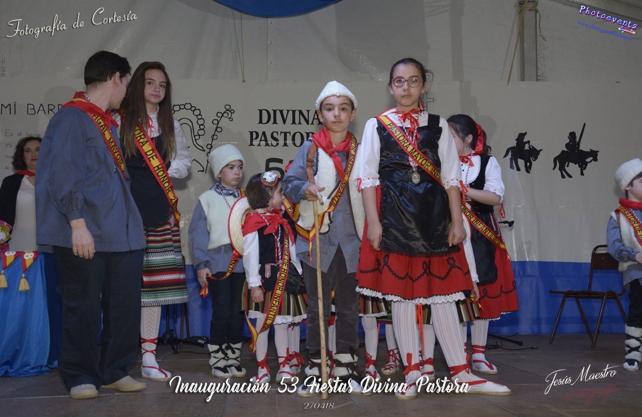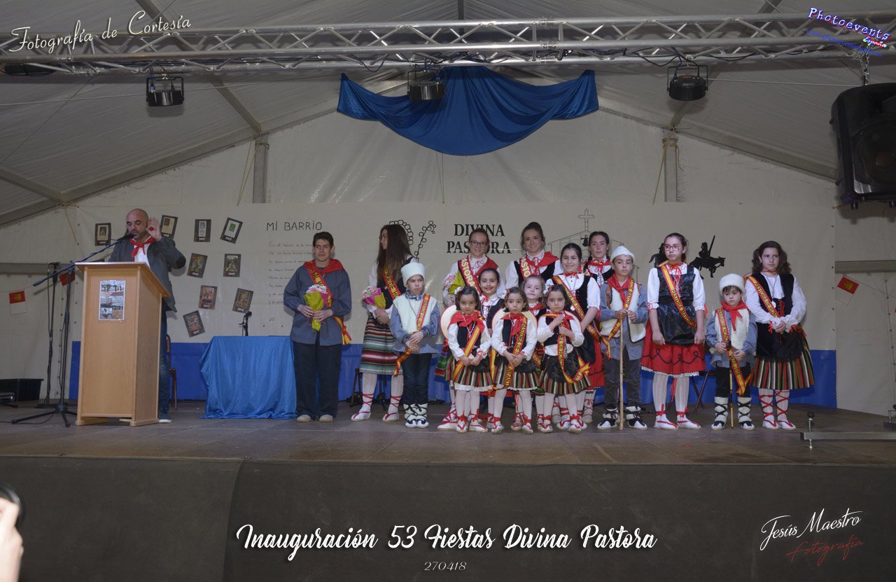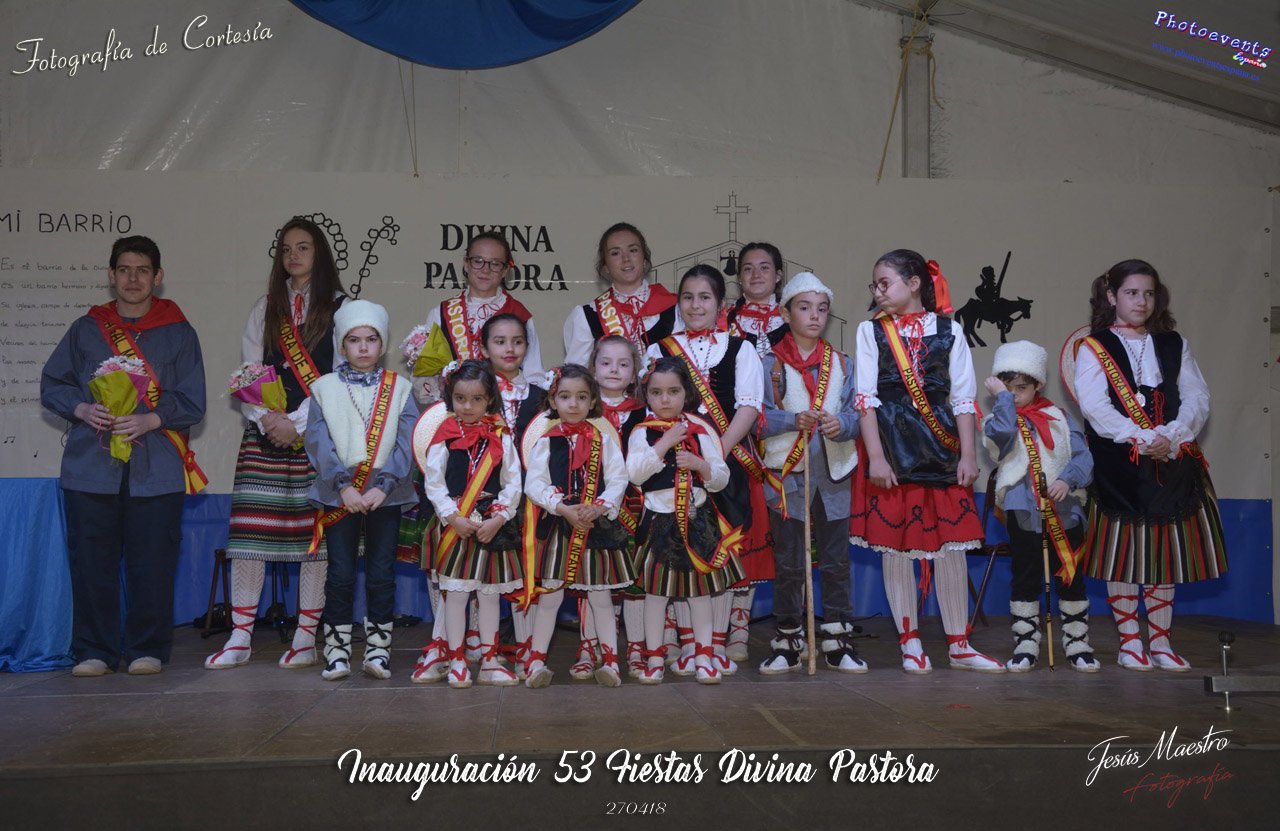 Fotografías realizadas durante el acto de inauguración de las 53 edición de las Fiestas Divina Pastora, siendo encargada de dar el pregón este año Dña. Virtudes Torres, escritora y vecina del barrio. Una vez terminado este se procedio con la entrega de placas y reconocimientos a empresas y personas del barrio, pasando despues al nombramiento de los nuevos pastorcillos, pastorcillas y terminando con la proclamación de la Pastora Mayor. Dicho acto tenía lugar la tarde del pasado día 27 de Abril en la plaza de la Divina Pastora, en la localidad de Manzanares, Ciudad Real.