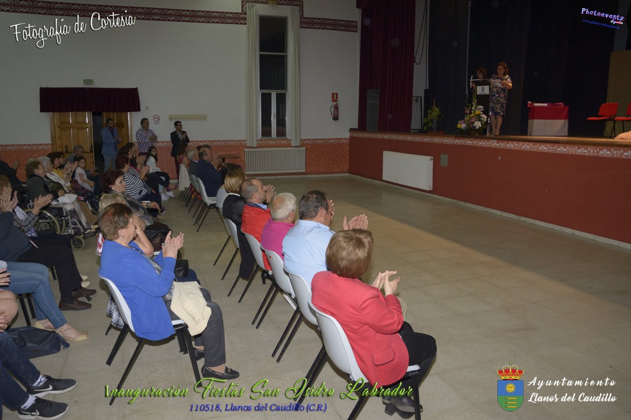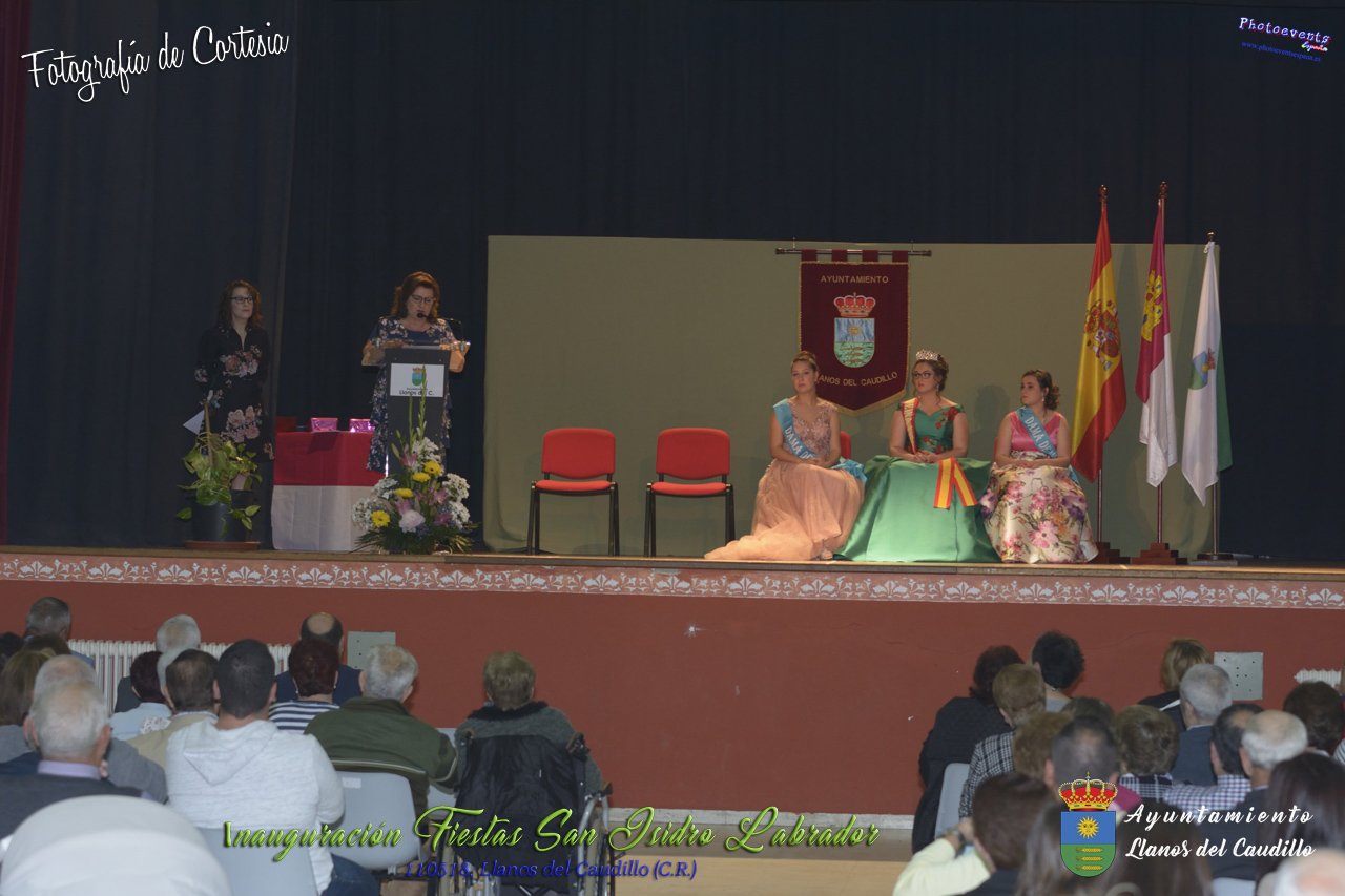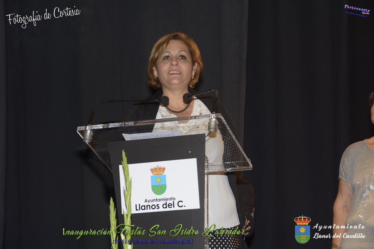 Fotografías realizadas durante el acto institucional de inauguración de las Fiestas de San Isidro Labrador 2018 , se realizo la imposición de bandas por la Reina y Damas de honor salientes a las nuevas Damas de honor y coronación de la nueva Reina de Las Fiestas. Continuando con la entrega de los premios del concurso fotográfico y dar paso al pregón de fiestas, que este año a recaido en Victoria González Almarcha (expresidenta de las Amas de Casa). El acto tenía lugar el pasado 11 de Mayo, estando enmarcado dentro del programa de fiestas con motivo de San Isidro Labrador en Llanos del Caudillo, Ciudad Real.