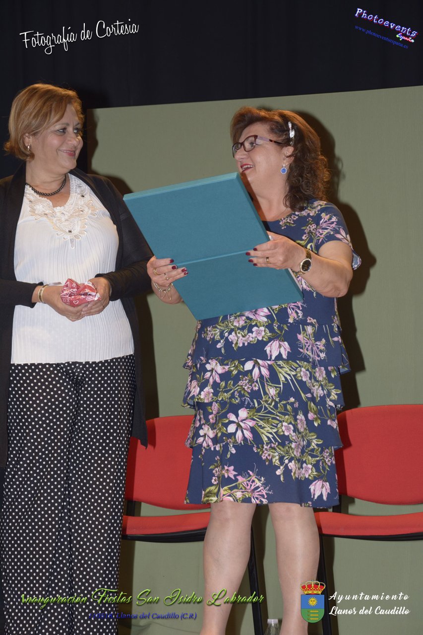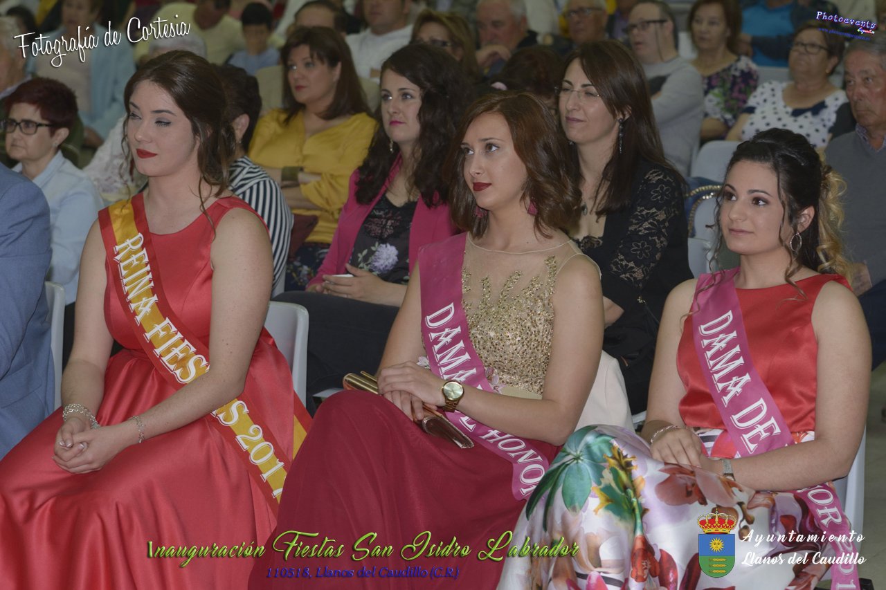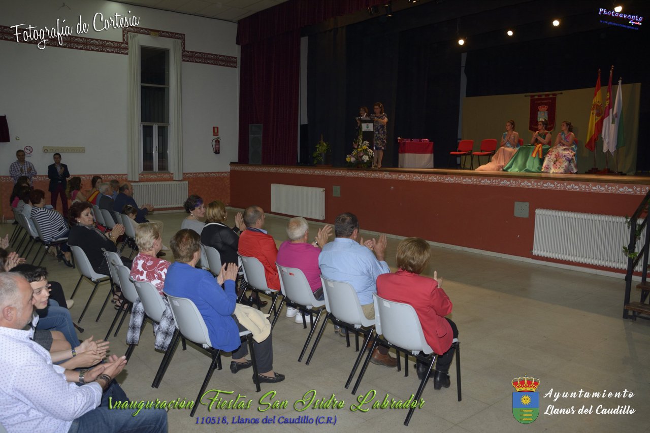 Fotografías realizadas durante el acto institucional de inauguración de las Fiestas de San Isidro Labrador 2018 , se realizo la imposición de bandas por la Reina y Damas de honor salientes a las nuevas Damas de honor y coronación de la nueva Reina de Las Fiestas. Continuando con la entrega de los premios del concurso fotográfico y dar paso al pregón de fiestas, que este año a recaido en Victoria González Almarcha (expresidenta de las Amas de Casa). El acto tenía lugar el pasado 11 de Mayo, estando enmarcado dentro del programa de fiestas con motivo de San Isidro Labrador en Llanos del Caudillo, Ciudad Real.