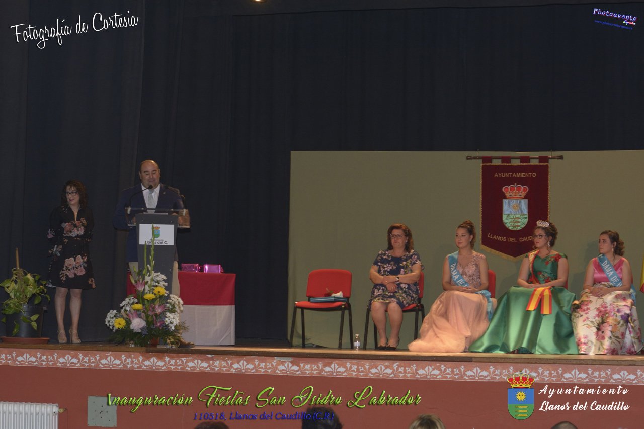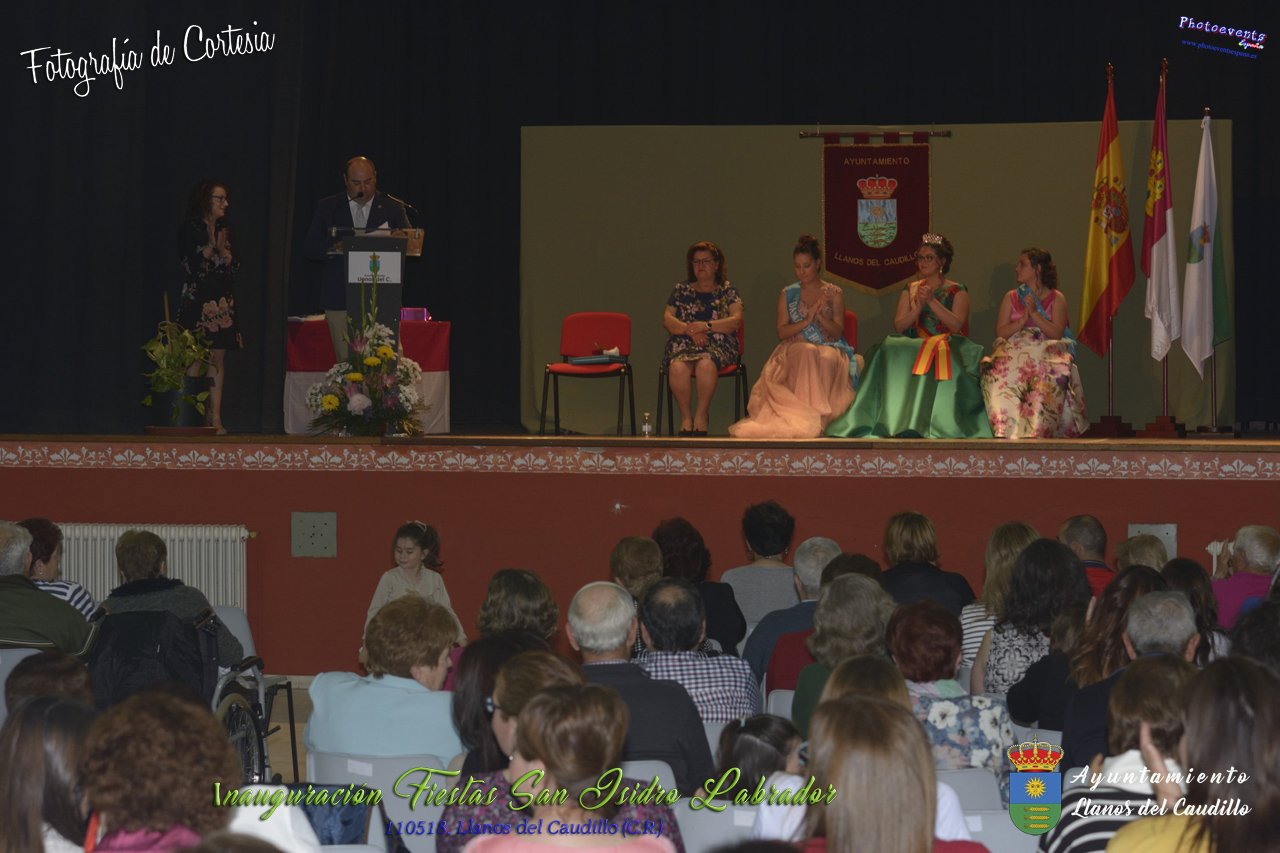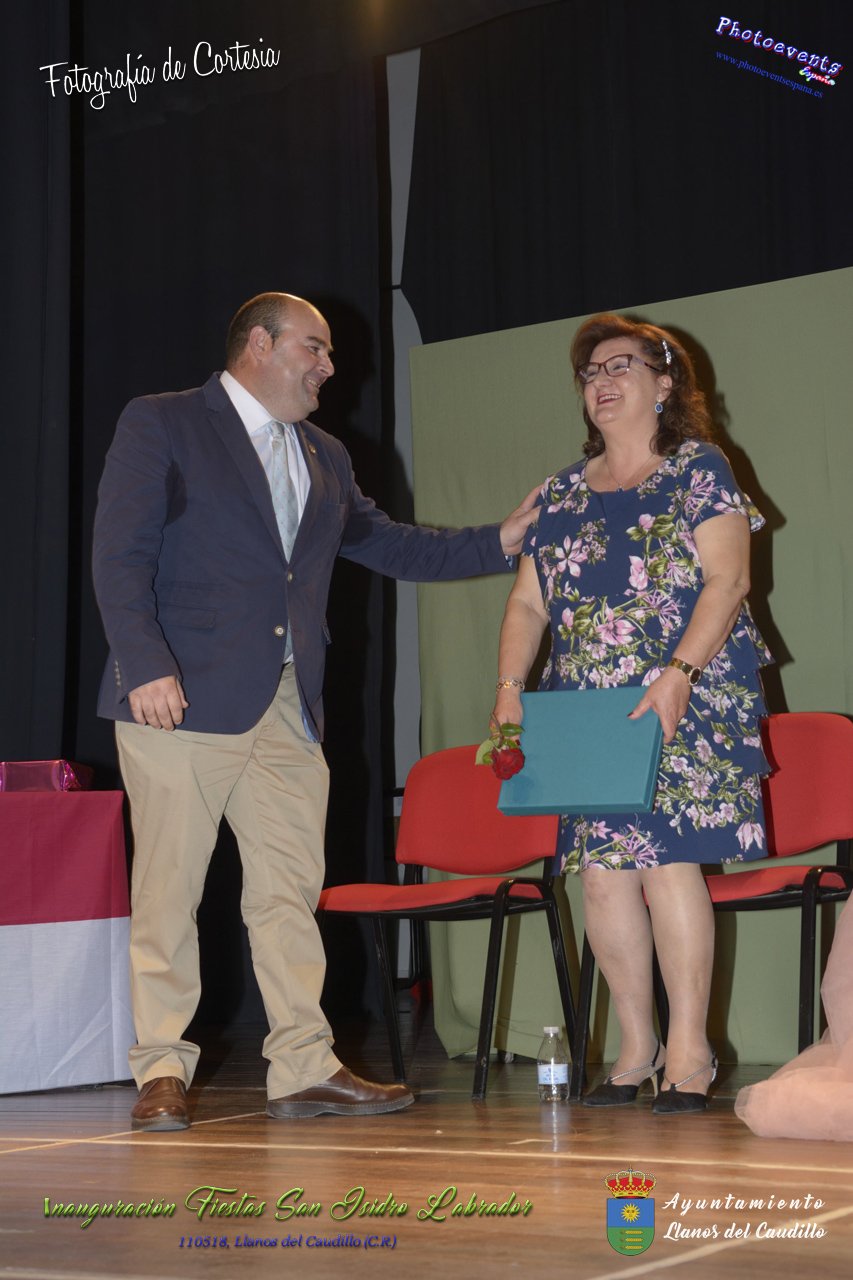 Fotografías realizadas durante el acto institucional de inauguración de las Fiestas de San Isidro Labrador 2018 , se realizo la imposición de bandas por la Reina y Damas de honor salientes a las nuevas Damas de honor y coronación de la nueva Reina de Las Fiestas. Continuando con la entrega de los premios del concurso fotográfico y dar paso al pregón de fiestas, que este año a recaido en Victoria González Almarcha (expresidenta de las Amas de Casa). El acto tenía lugar el pasado 11 de Mayo, estando enmarcado dentro del programa de fiestas con motivo de San Isidro Labrador en Llanos del Caudillo, Ciudad Real.