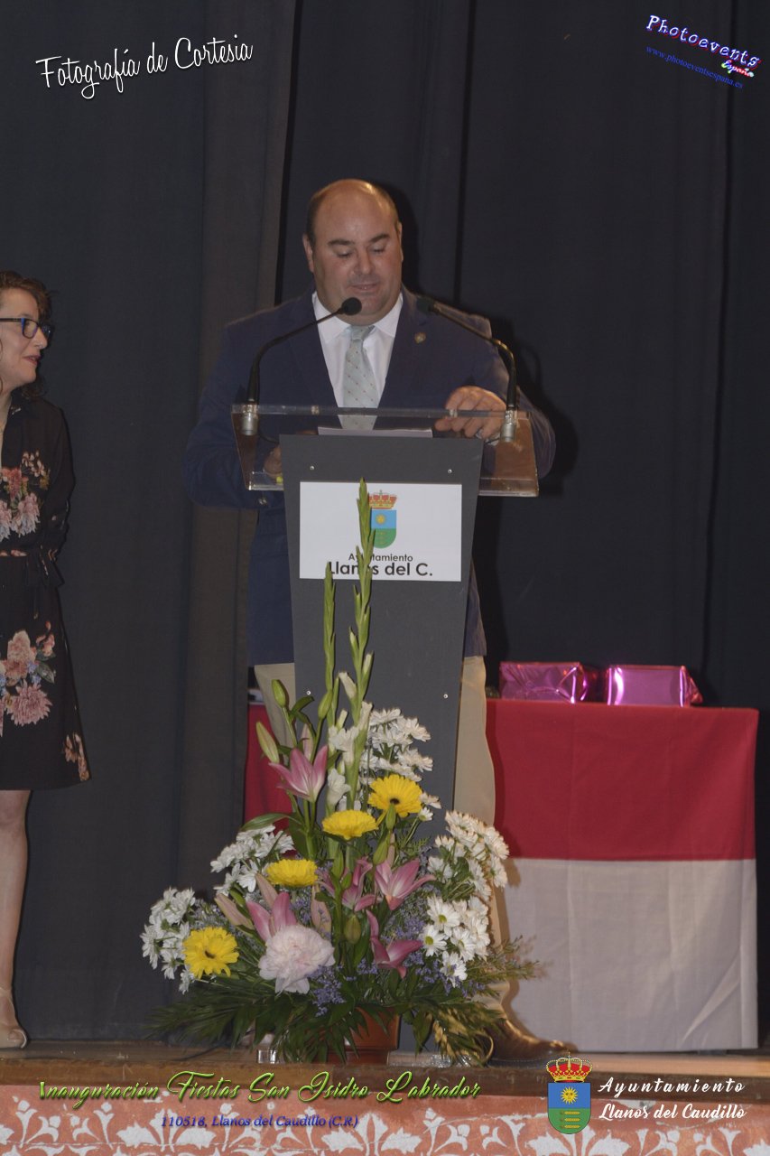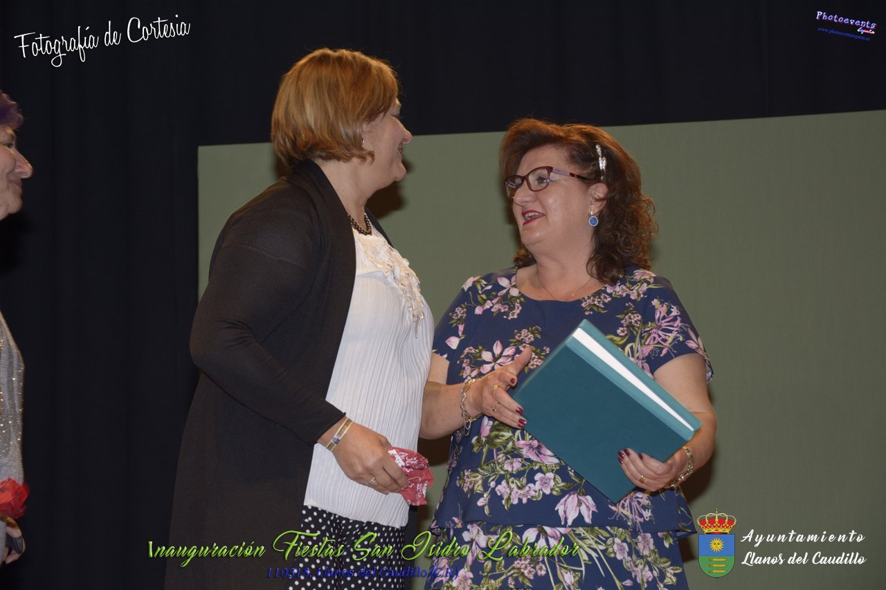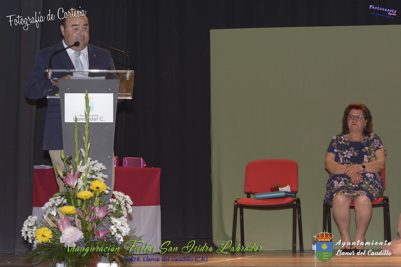 Fotografías realizadas durante el acto institucional de inauguración de las Fiestas de San Isidro Labrador 2018 , se realizo la imposición de bandas por la Reina y Damas de honor salientes a las nuevas Damas de honor y coronación de la nueva Reina de Las Fiestas. Continuando con la entrega de los premios del concurso fotográfico y dar paso al pregón de fiestas, que este año a recaido en Victoria González Almarcha (expresidenta de las Amas de Casa). El acto tenía lugar el pasado 11 de Mayo, estando enmarcado dentro del programa de fiestas con motivo de San Isidro Labrador en Llanos del Caudillo, Ciudad Real.
