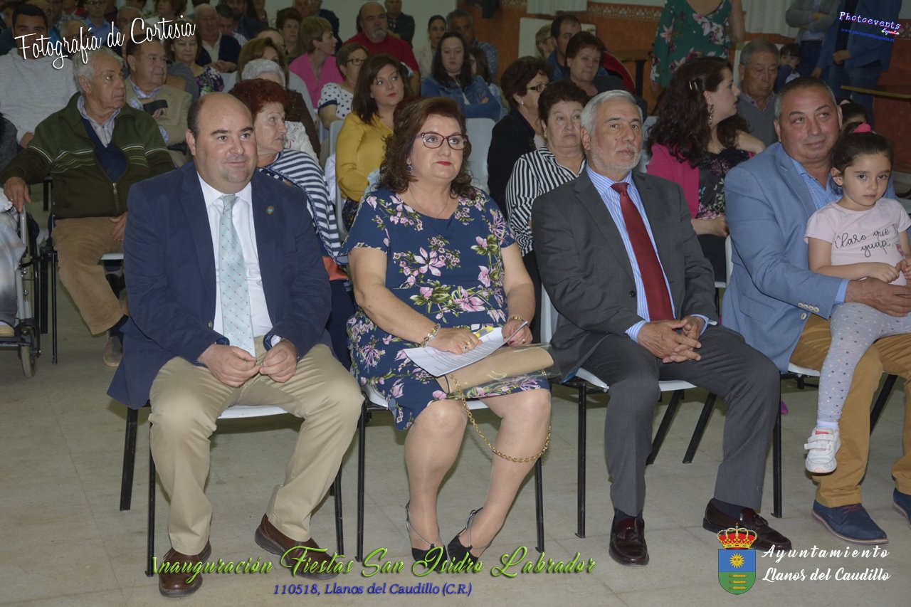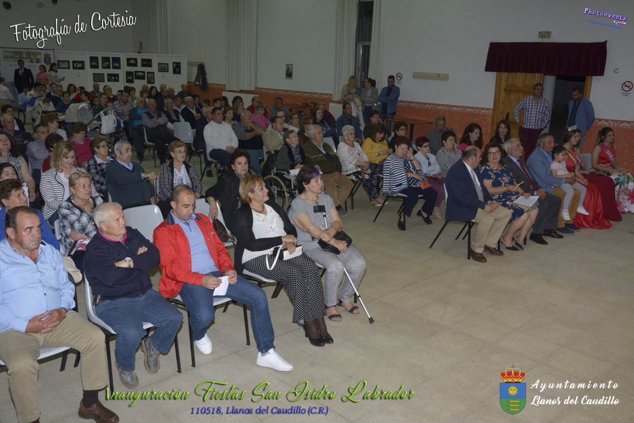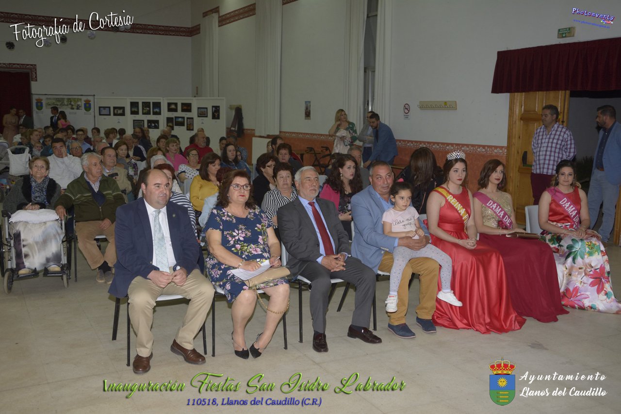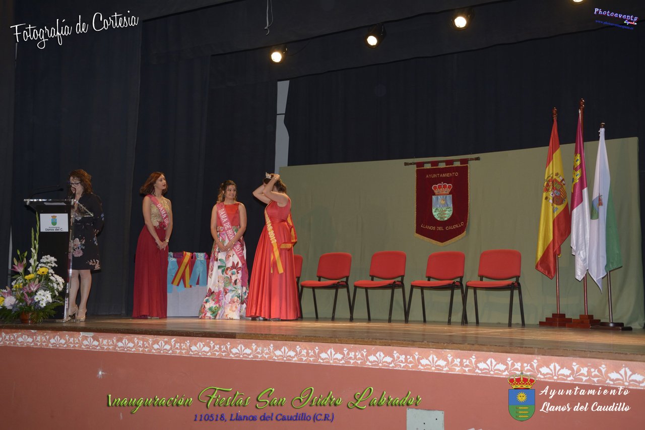 Fotografías realizadas durante el acto institucional de inauguración de las Fiestas de San Isidro Labrador 2018 , se realizo la imposición de bandas por la Reina y Damas de honor salientes a las nuevas Damas de honor y coronación de la nueva Reina de Las Fiestas. Continuando con la entrega de los premios del concurso fotográfico y dar paso al pregón de fiestas, que este año a recaido en Victoria González Almarcha (expresidenta de las Amas de Casa). El acto tenía lugar el pasado 11 de Mayo, estando enmarcado dentro del programa de fiestas con motivo de San Isidro Labrador en Llanos del Caudillo, Ciudad Real.