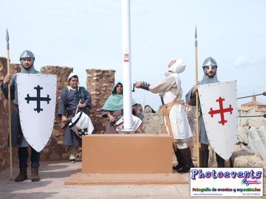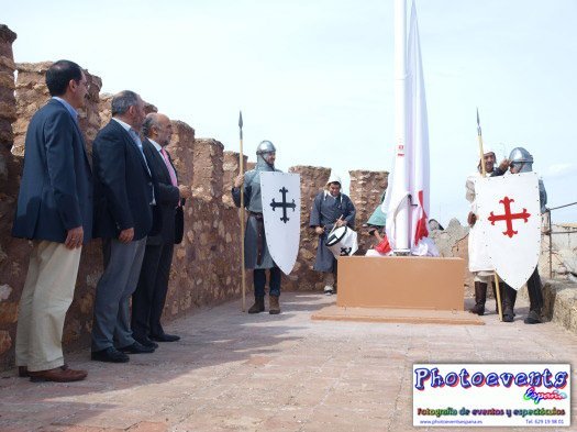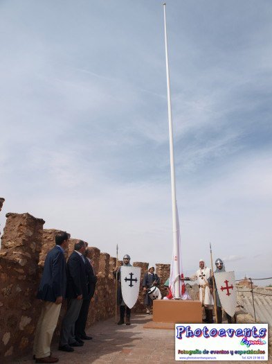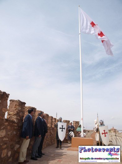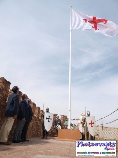 Fotografías realizadas el pasado día 280913 durante la izada de bandera con el escudo de la Orden de Calatrava en el Castillo Pilas Bonas, con motivo de las Jornadas Medievales que comienzan en Manzanares, Ciudad Real, España.